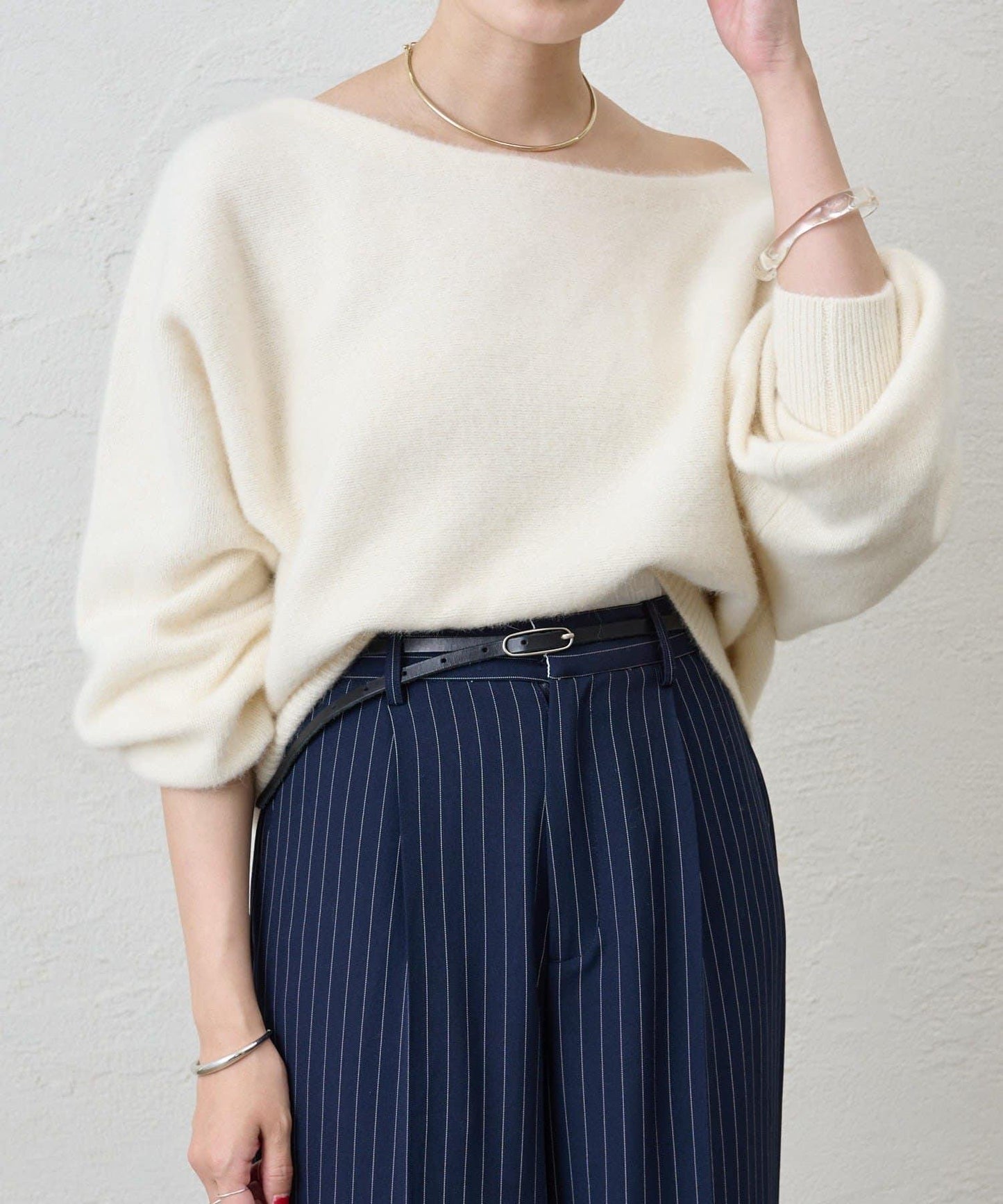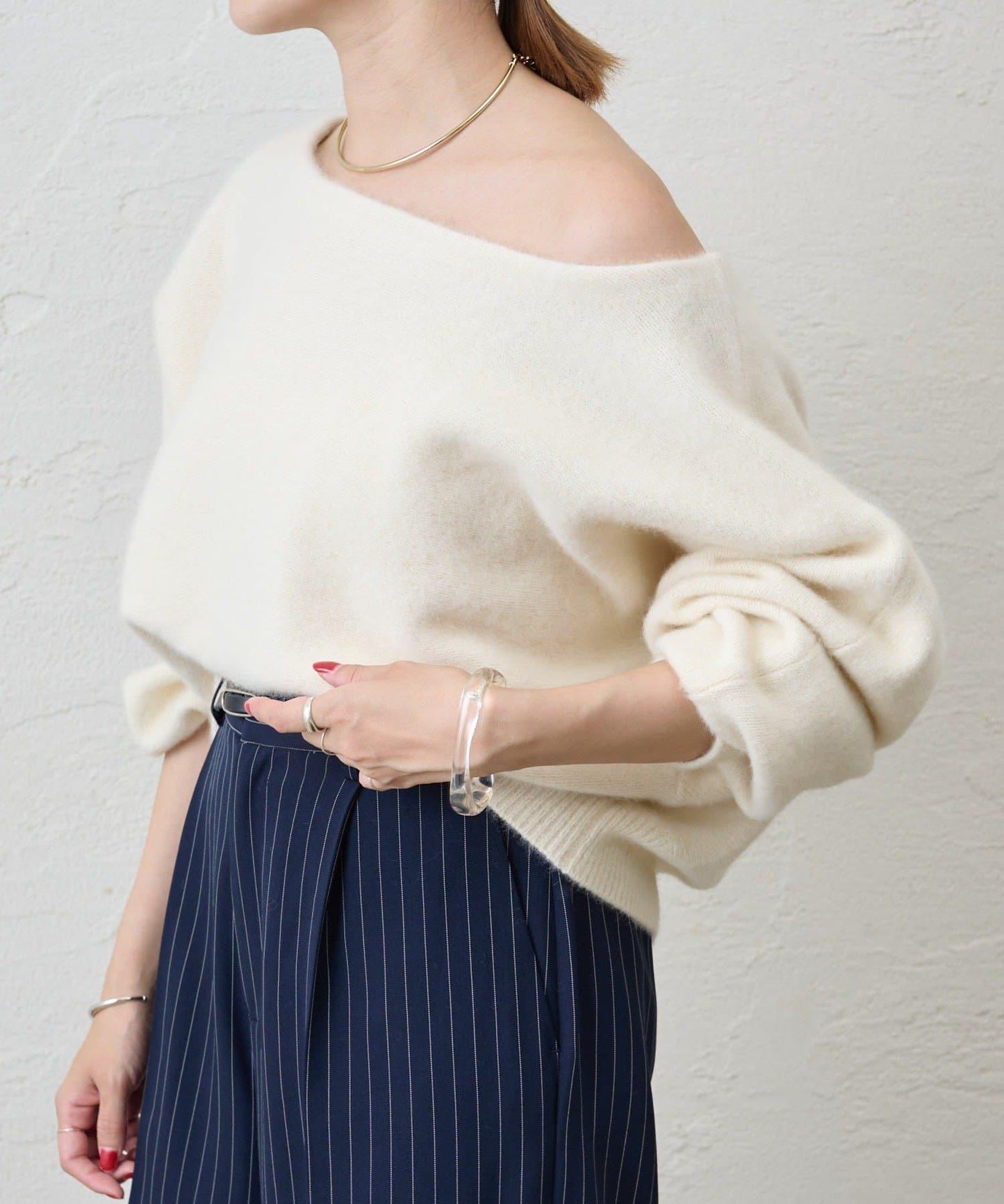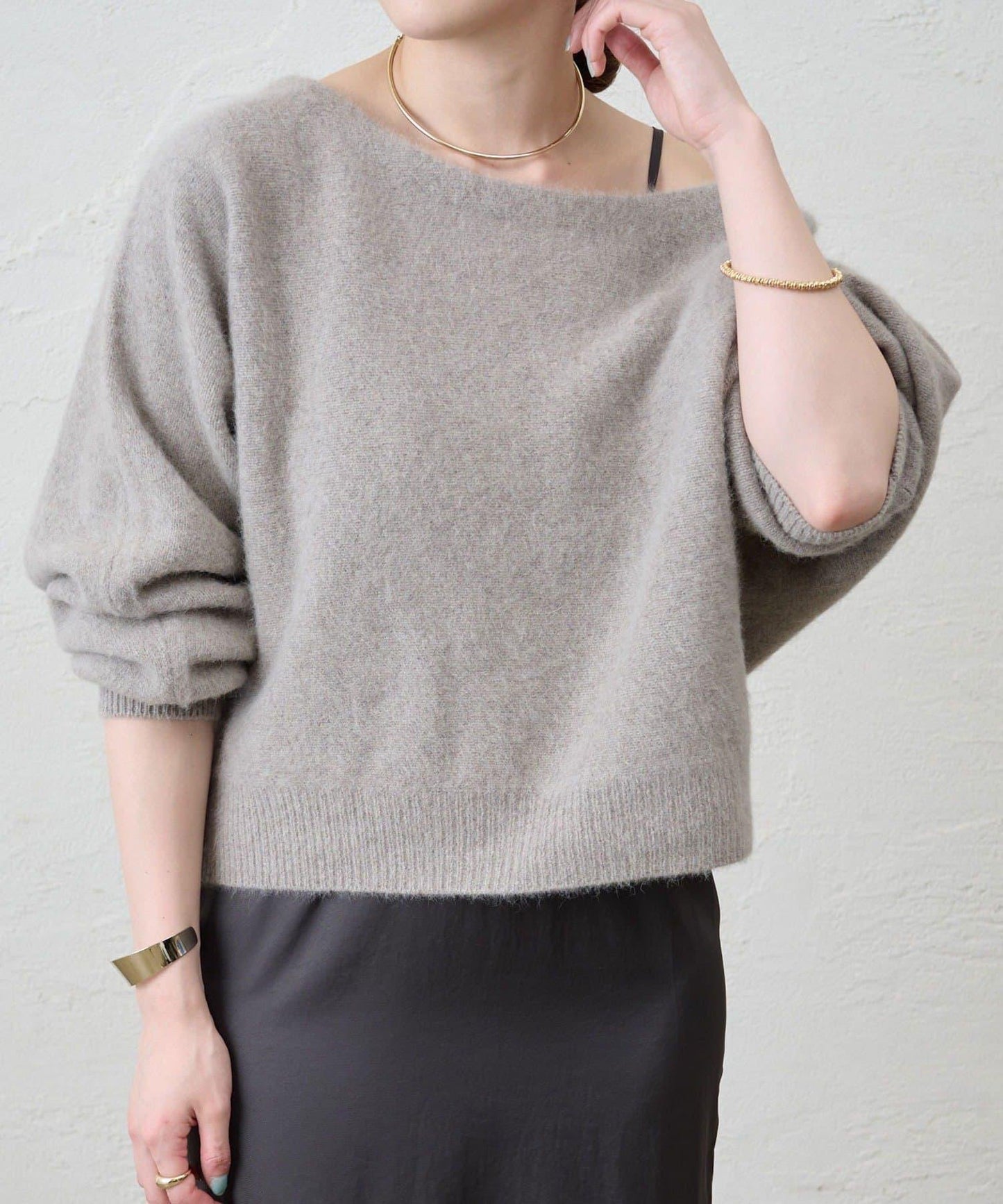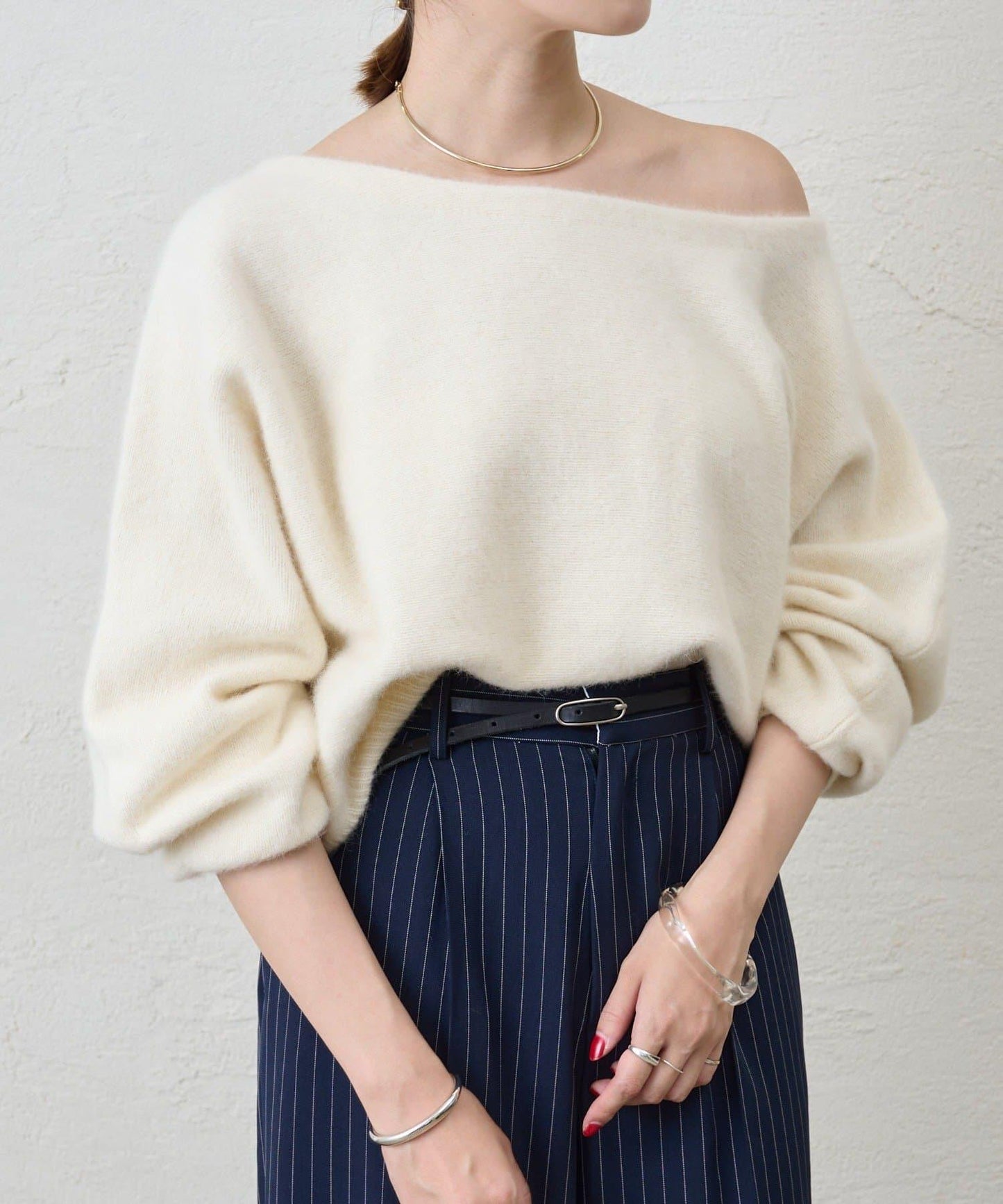 優雅的露肩針織衫,既能展示肌膚,又能寬鬆穿著。