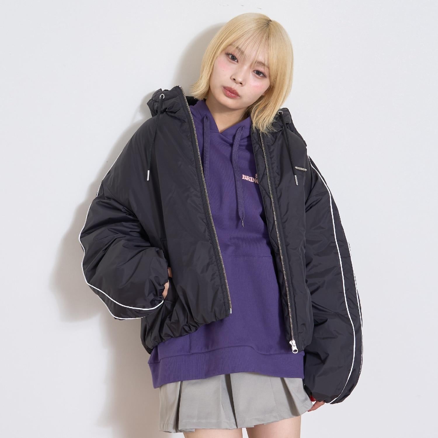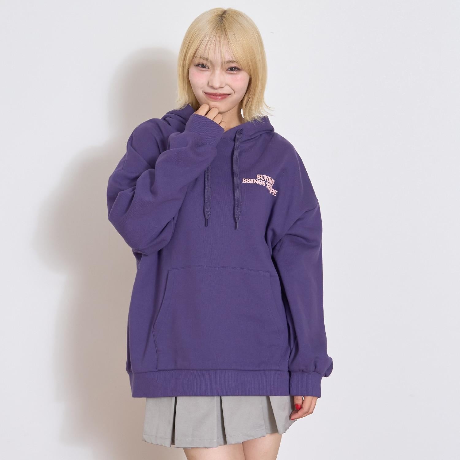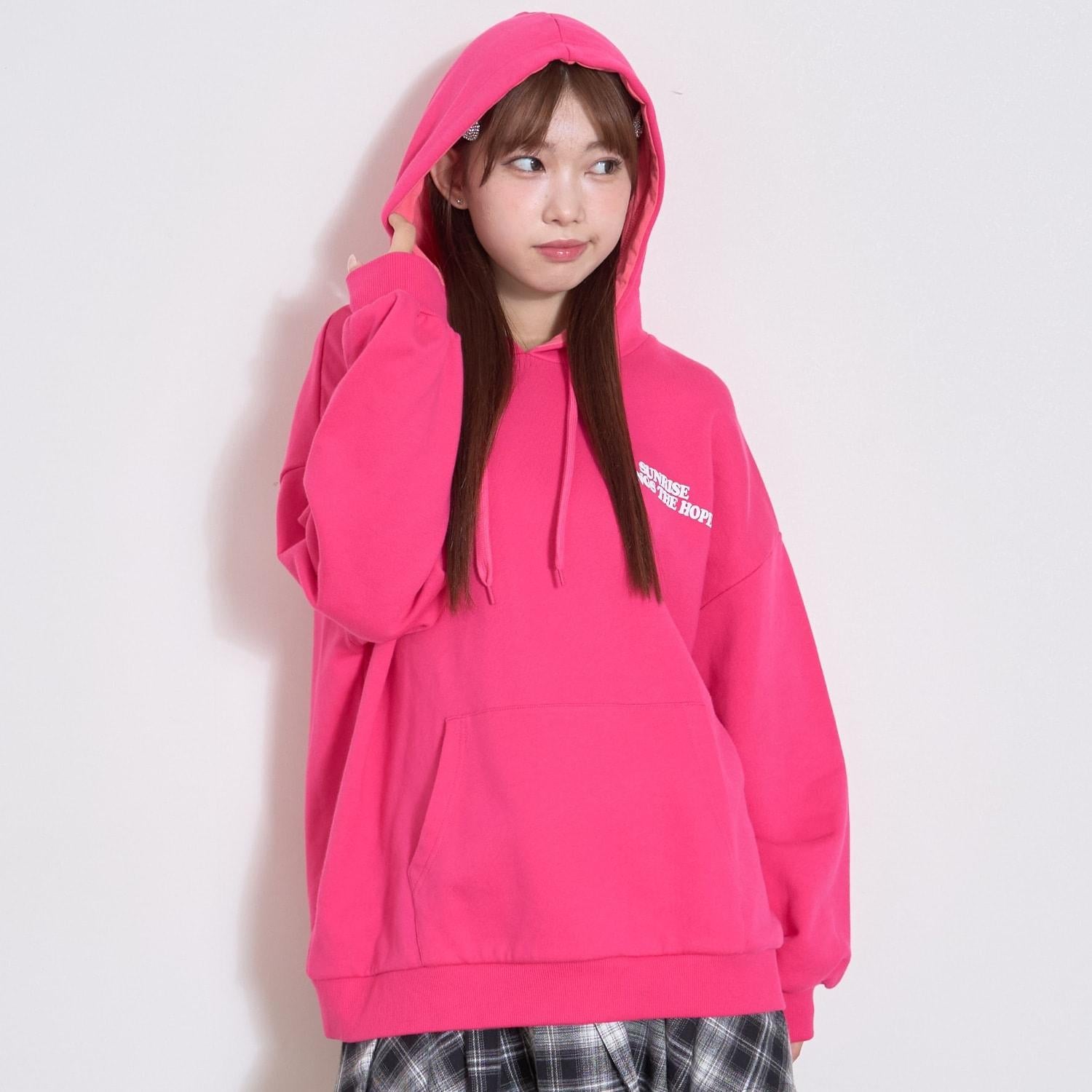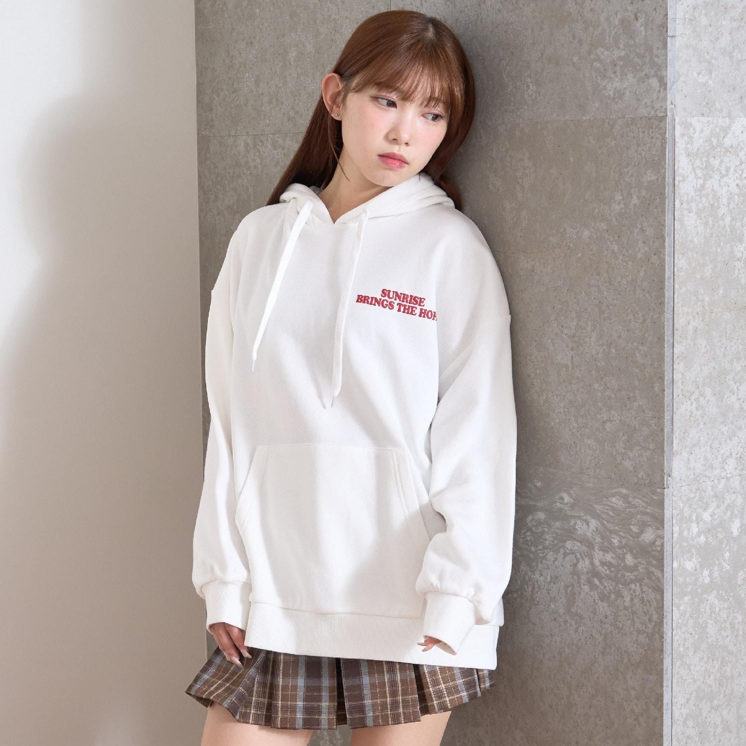 寬鬆連帽衫,落肩適中。