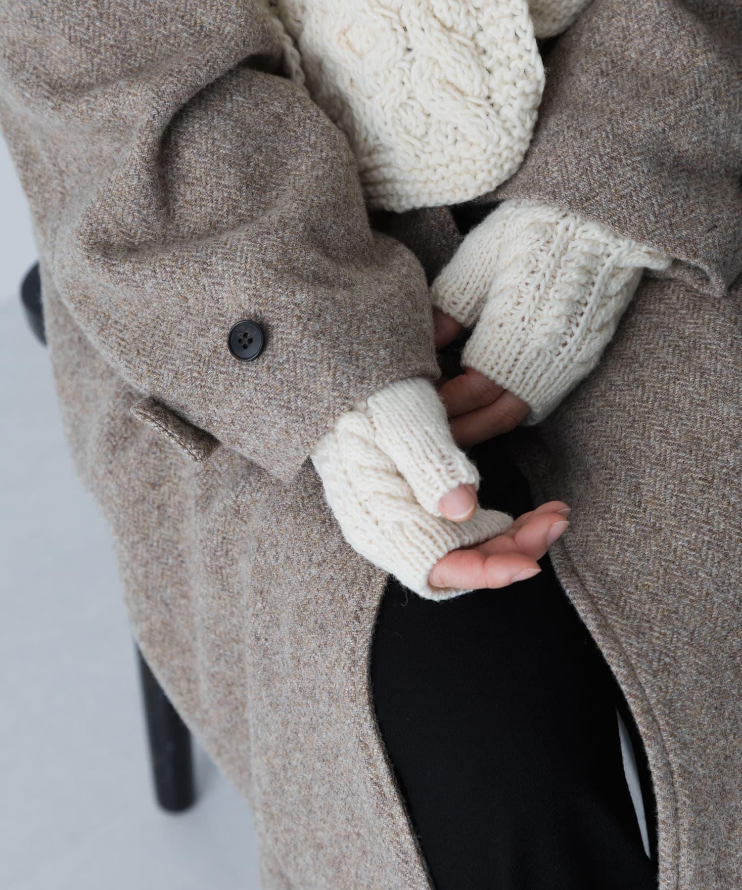 由秘魯的的喀喀湖附近的編織者精心製作。採用粗獷的阿蘭圖案,質感令人賞心悅目。指尖是開放式的,方便使用。小巧的尺寸也是一大亮點,既能保溫,又便於在日常生活中使用。還可提供該系列的其他產品。