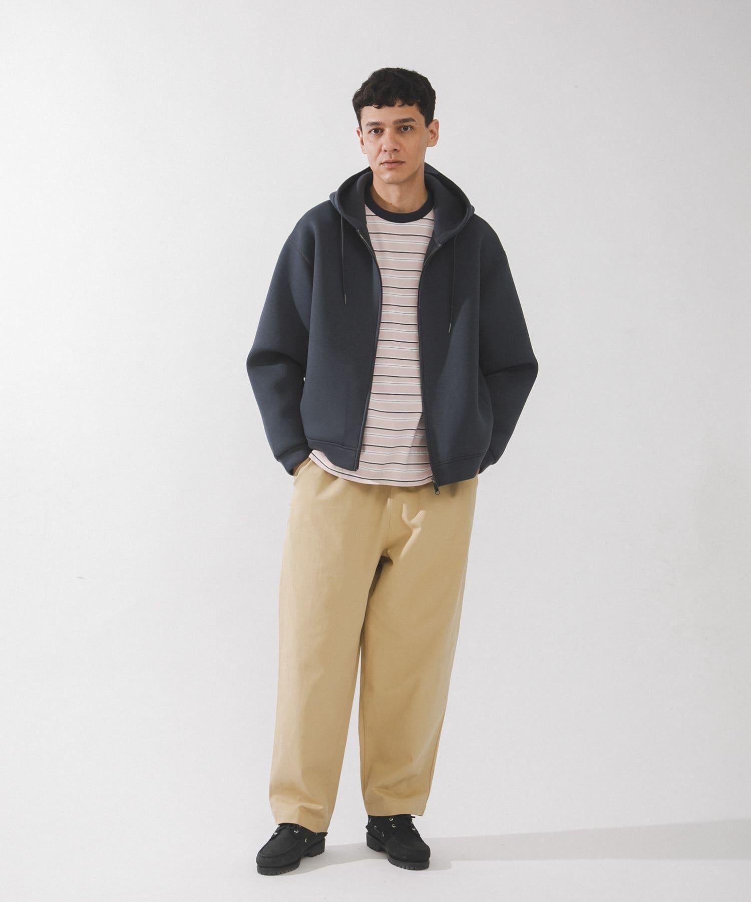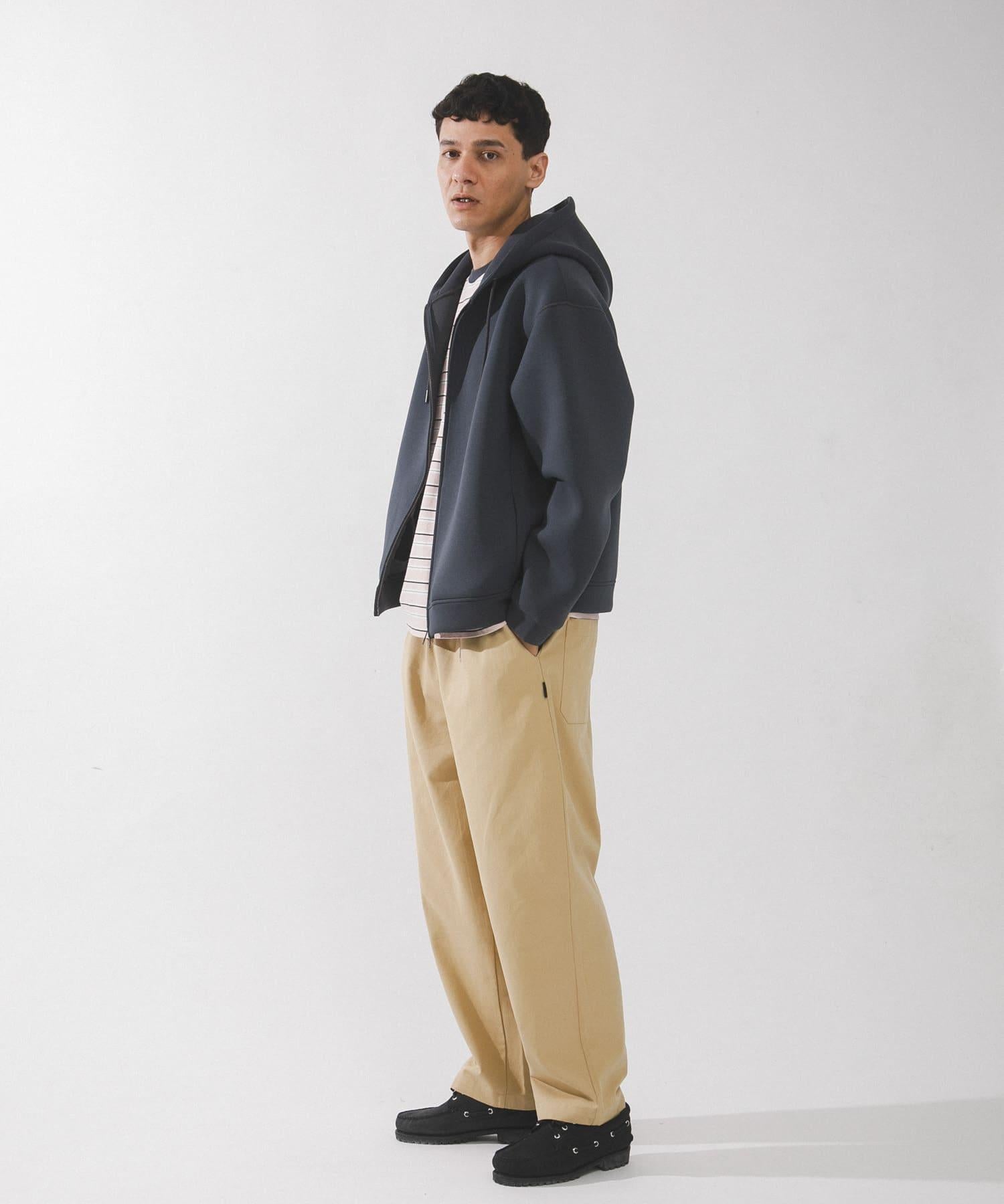 硬紙板針織面料質地結實、表面光滑,穿上它就能塑造出優美的輪廓。前襟的拉鍊方便穿脫,兜帽的上翹度也很好,可以在頸部形成很好的點綴。