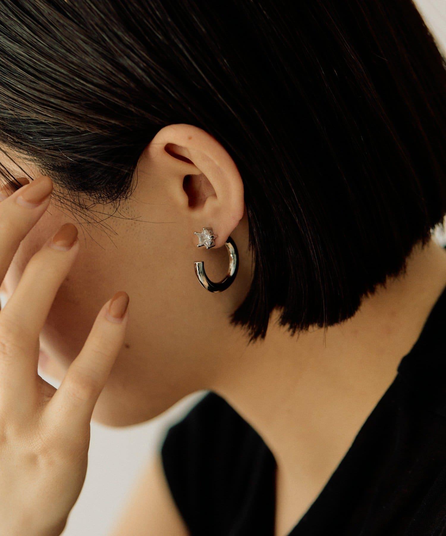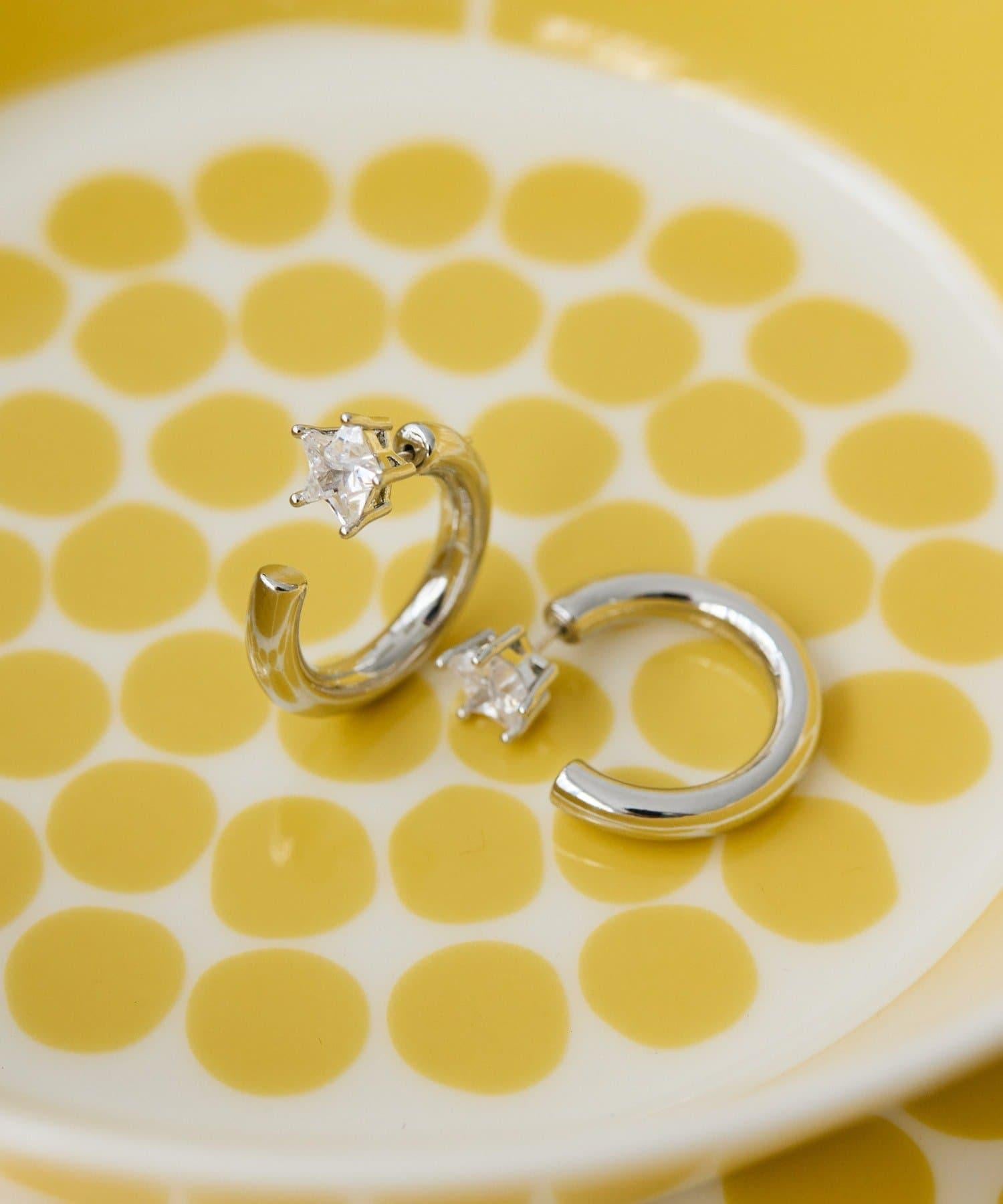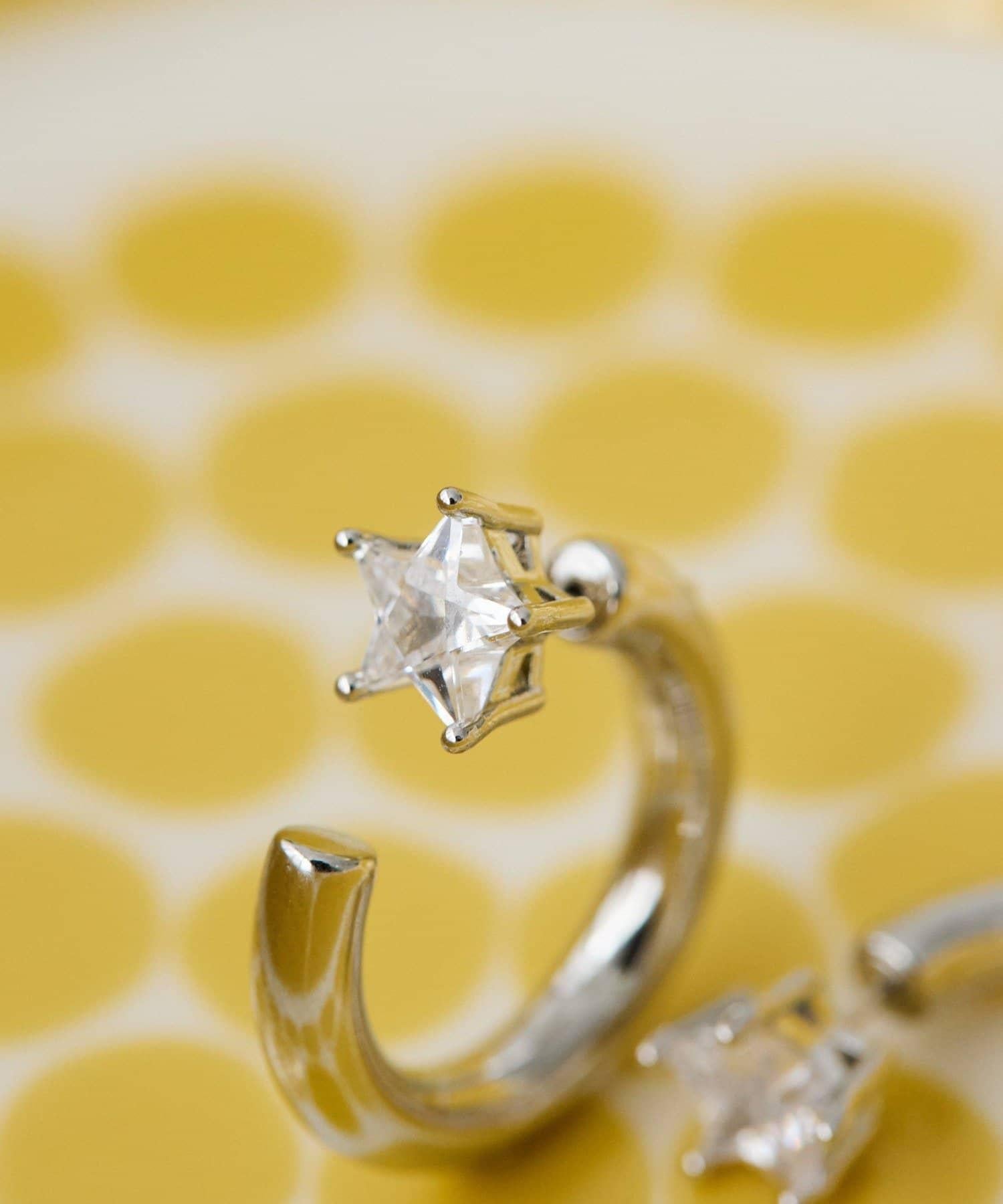 略粗且富有光澤的環形耳環與星形立方氧化鋯耳環相得益彰。