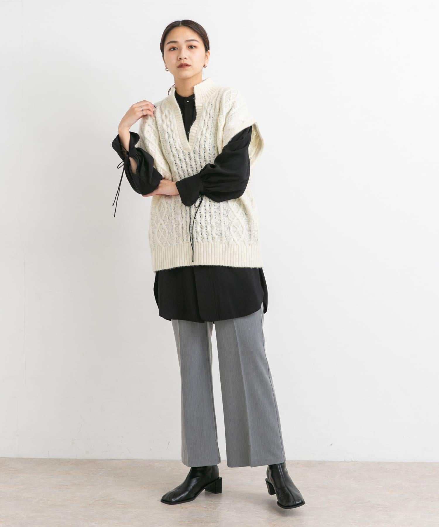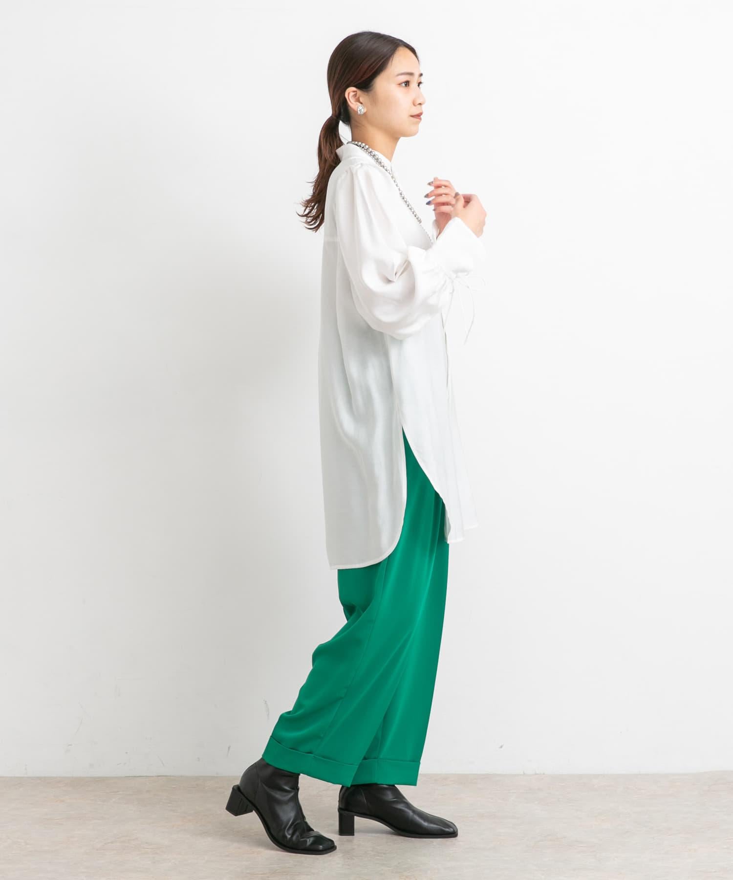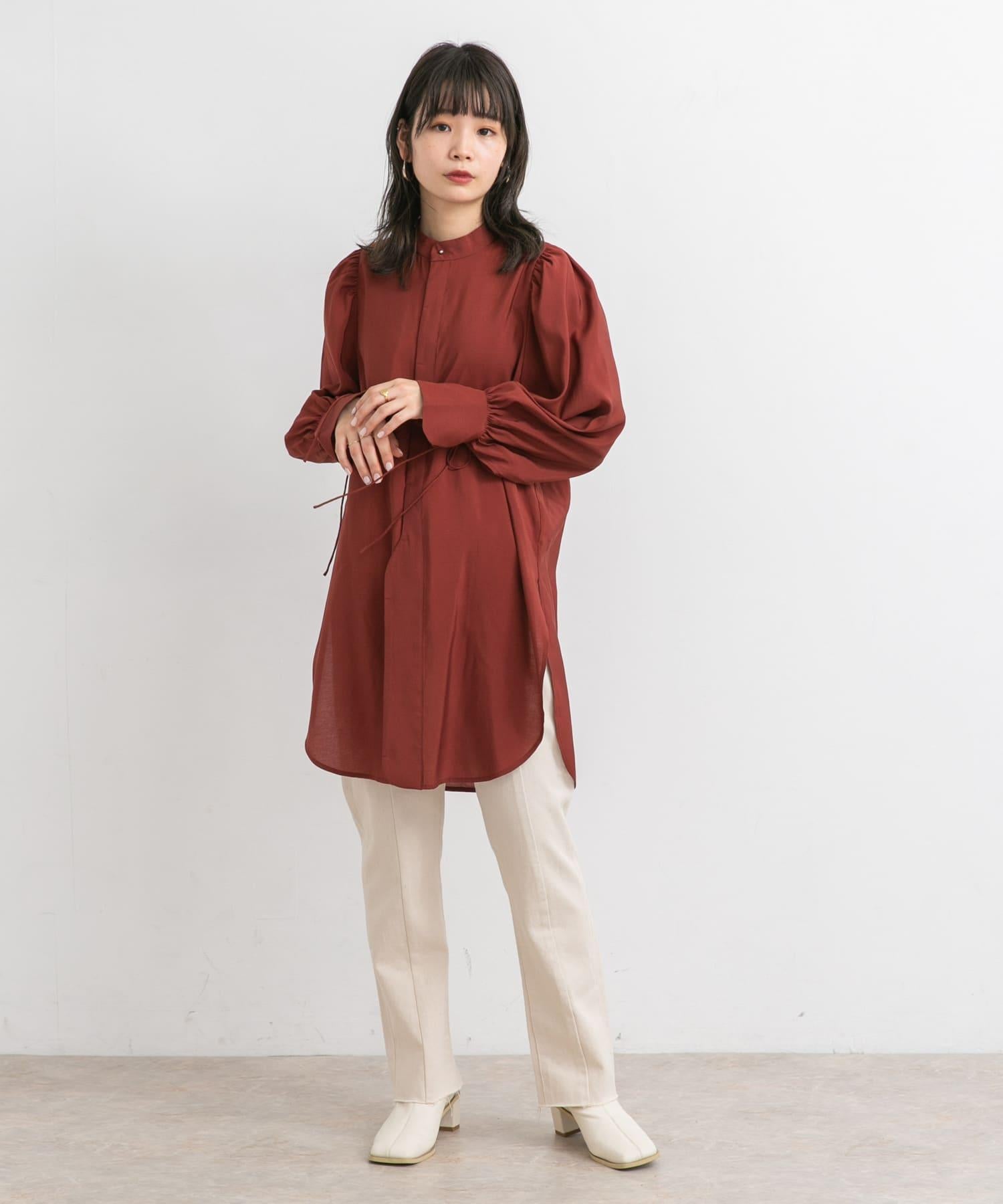 帶狀領襯衫配以女性化的蓬鬆袖子,盡顯成人風範。袖口的緞帶和圓角下襬讓這款單品在細節上更加用心。值得推薦的是沉穩的色調,只需穿上它,就能讓秋季造型更加完美。