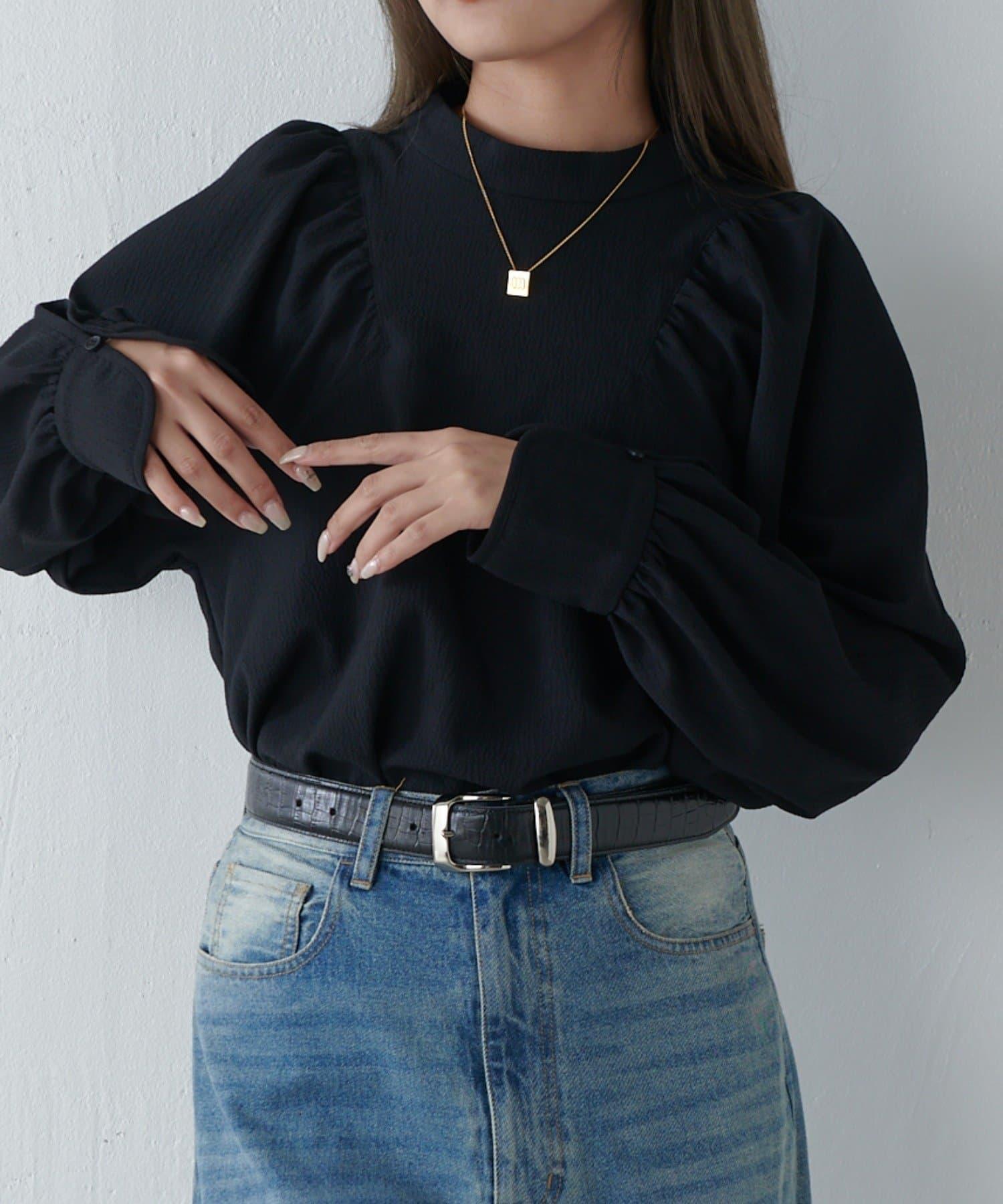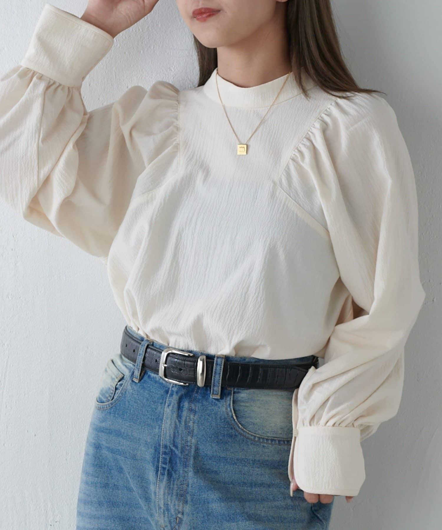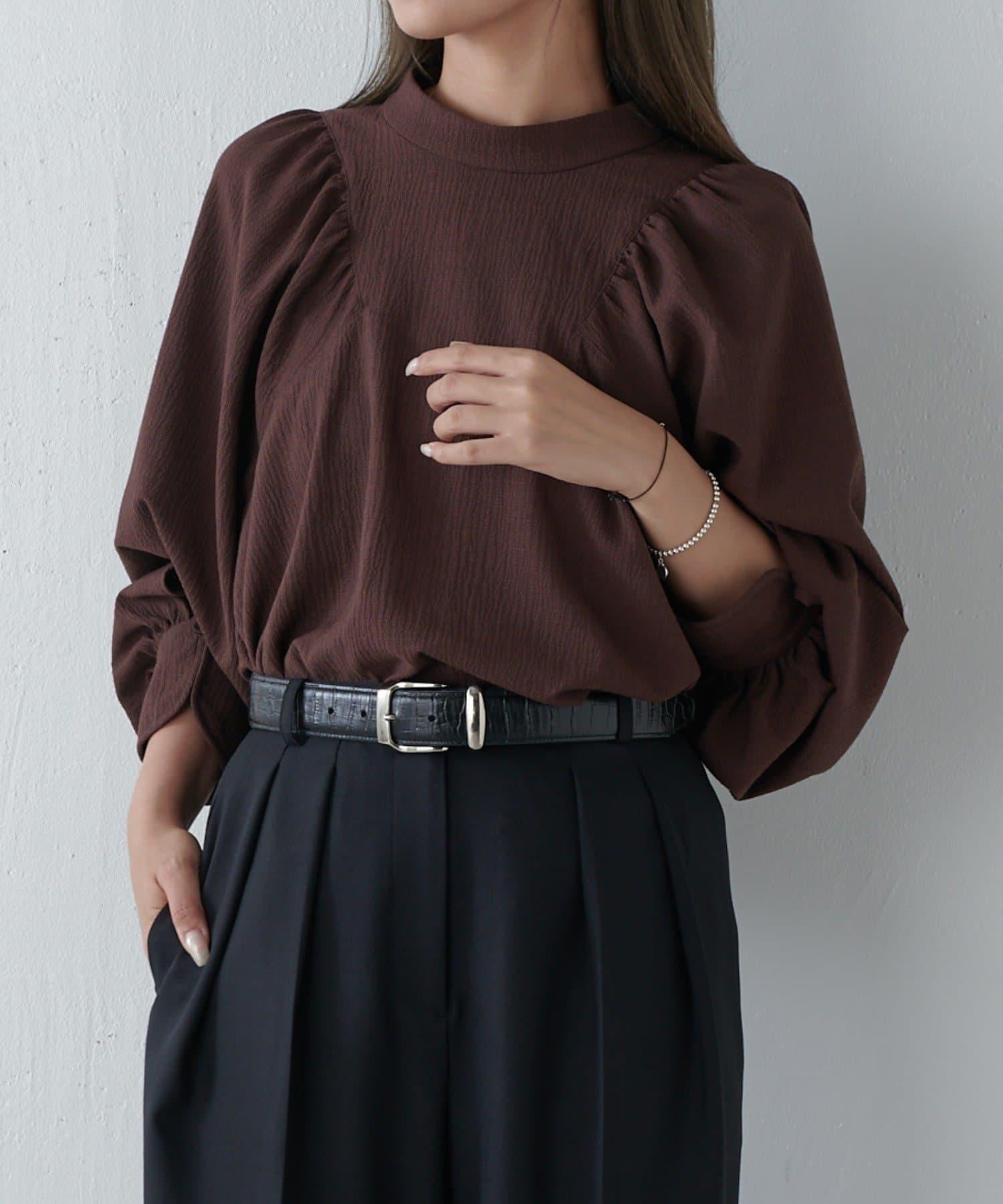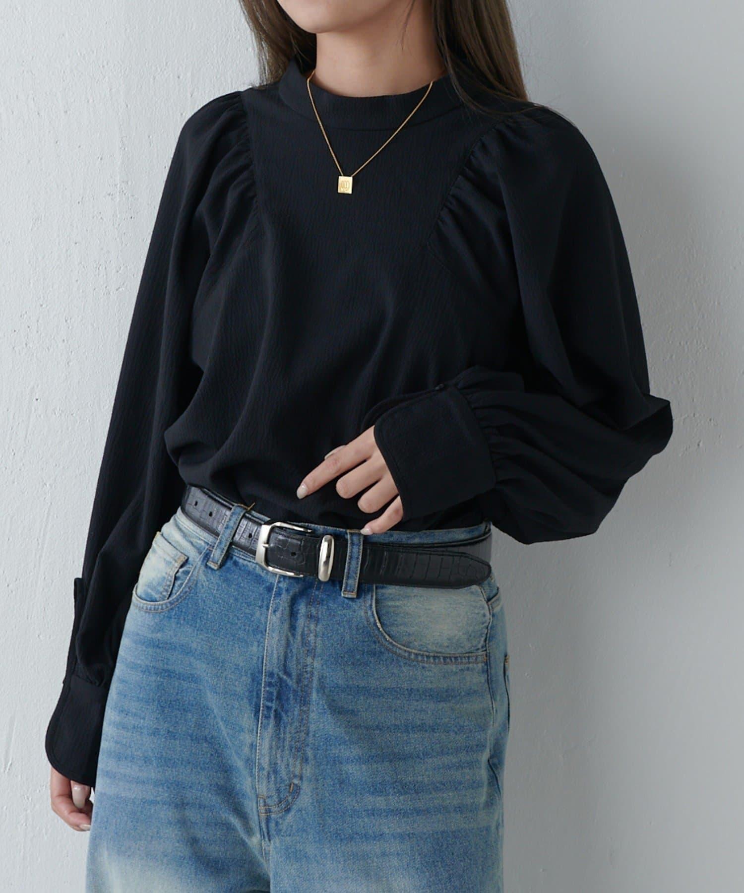 這是一款簡潔易穿的高領上衣,袖子寬大別致。