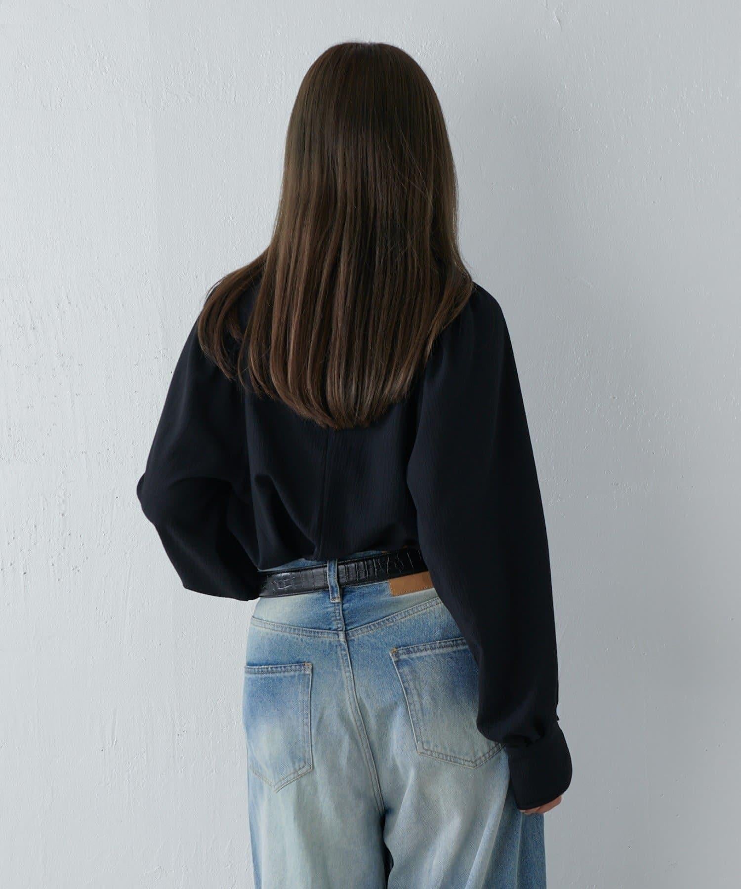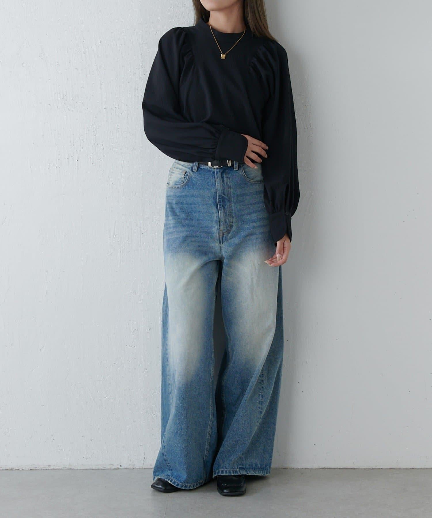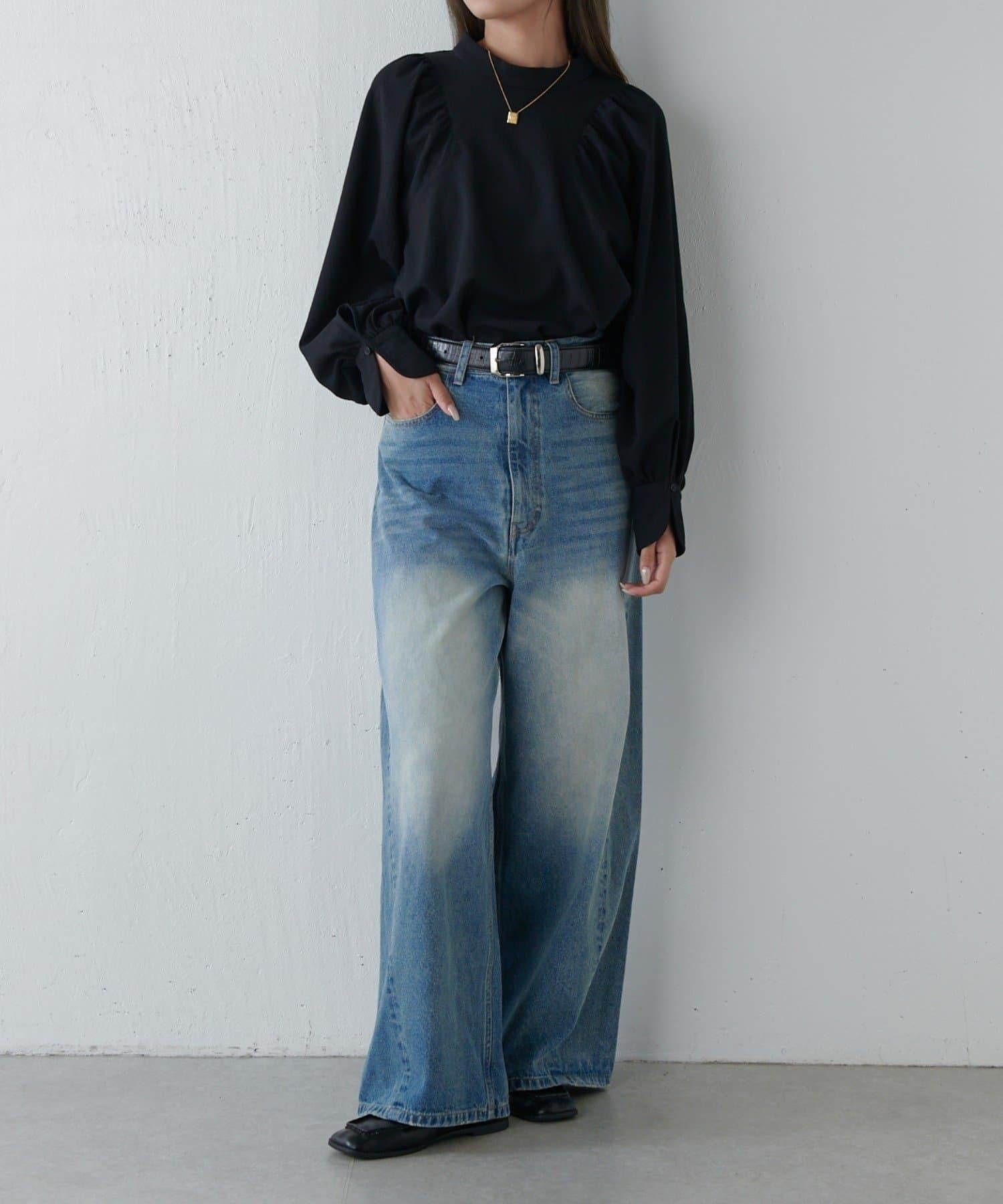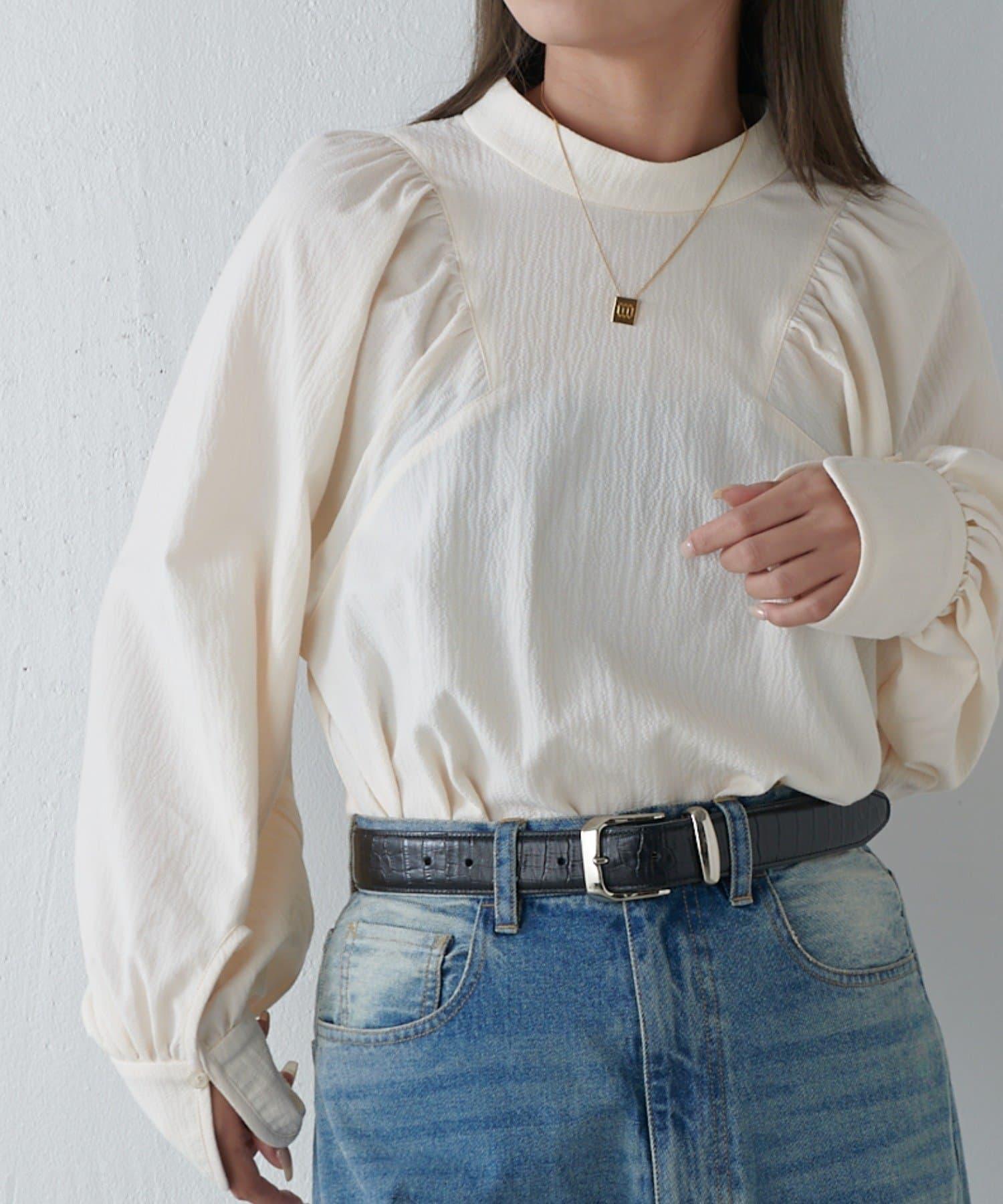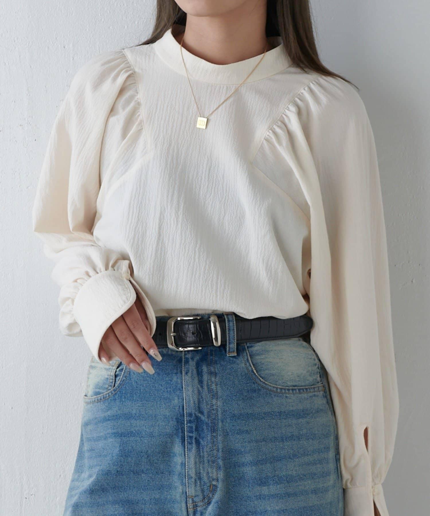這是一款簡潔易穿的高領上衣,袖子寬大別致。