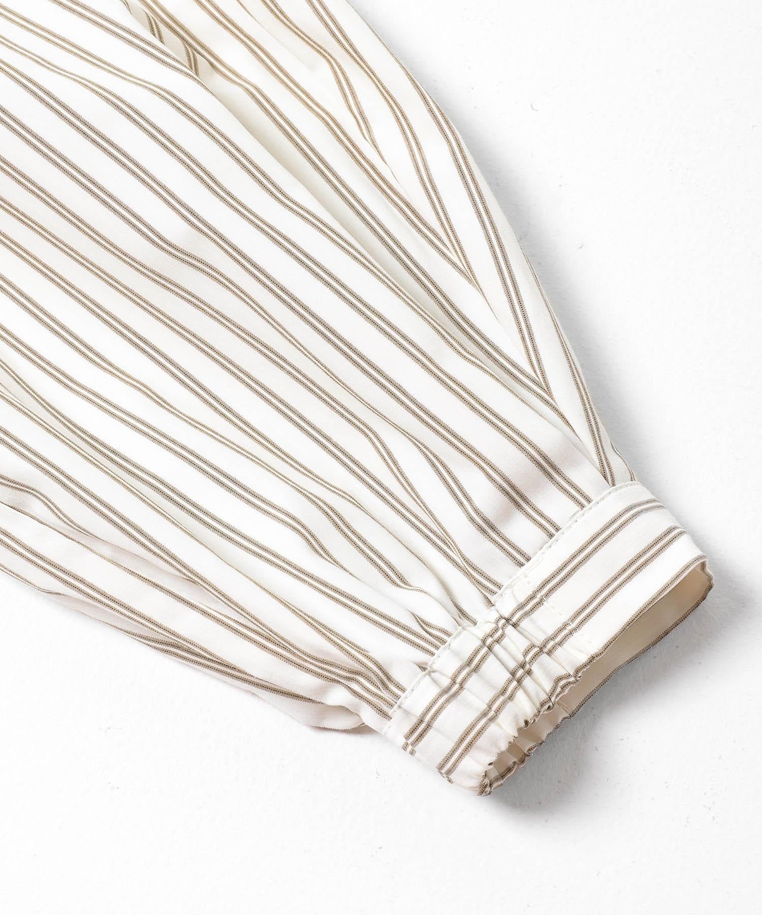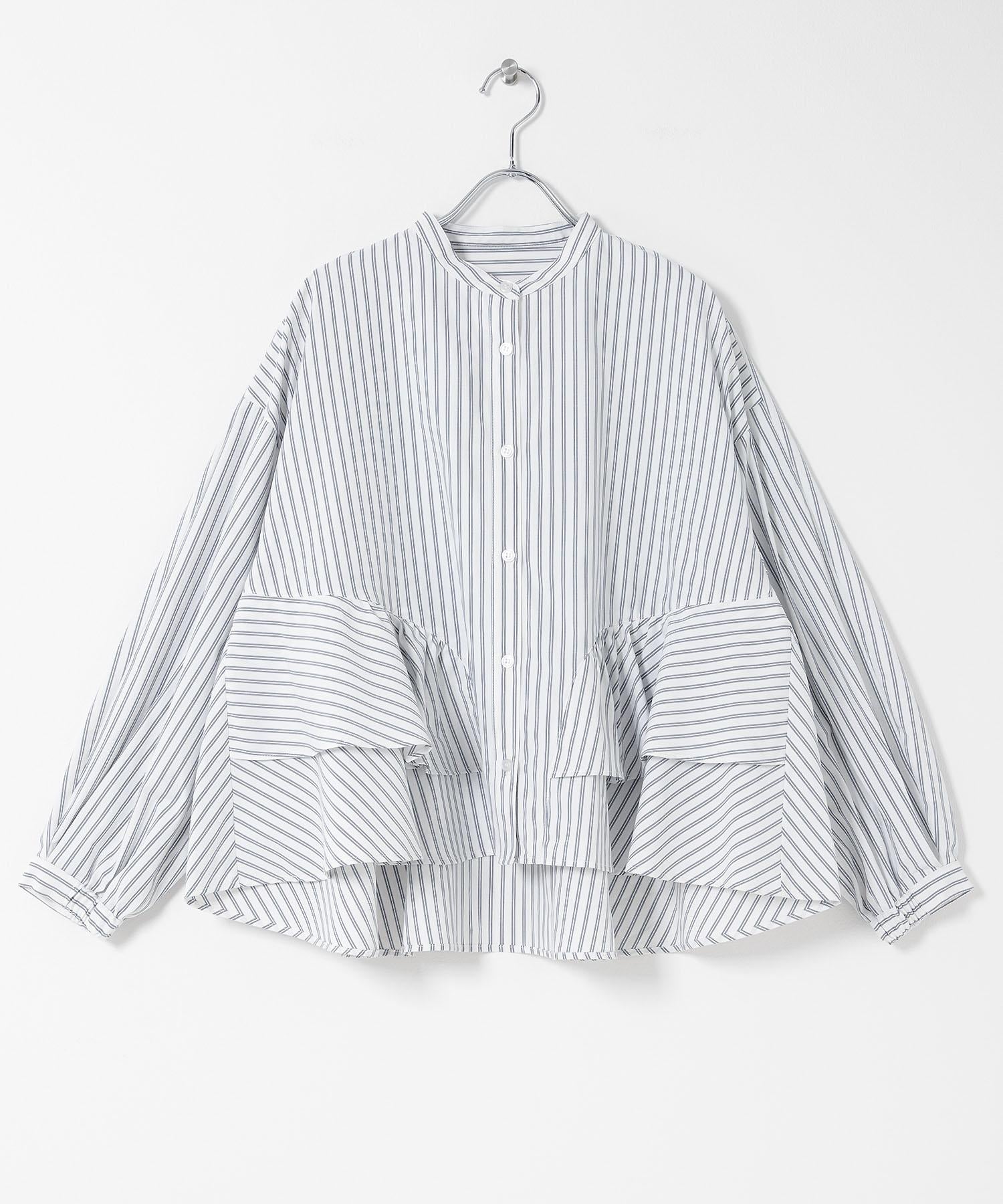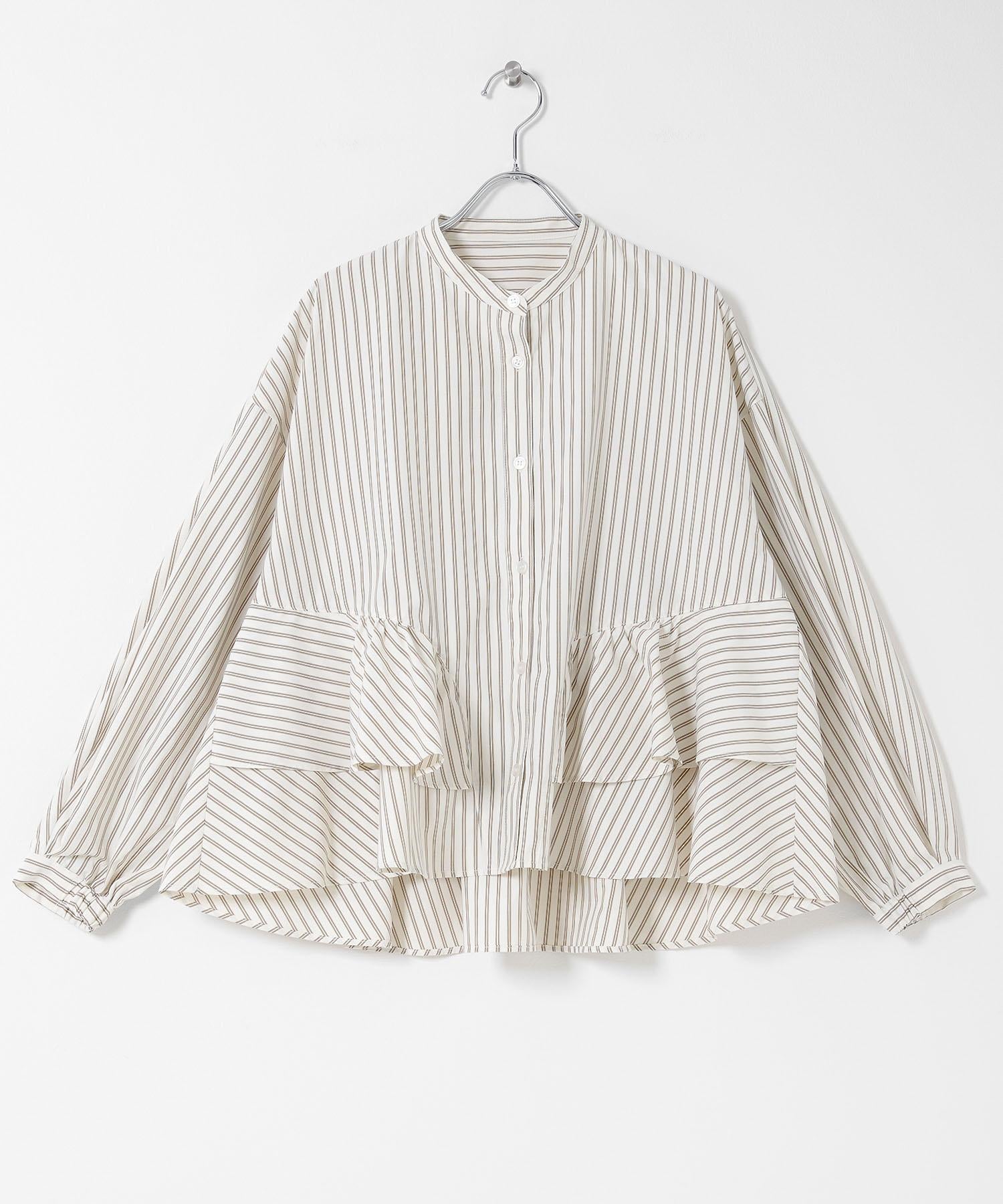 立領荷葉邊條紋襯衫