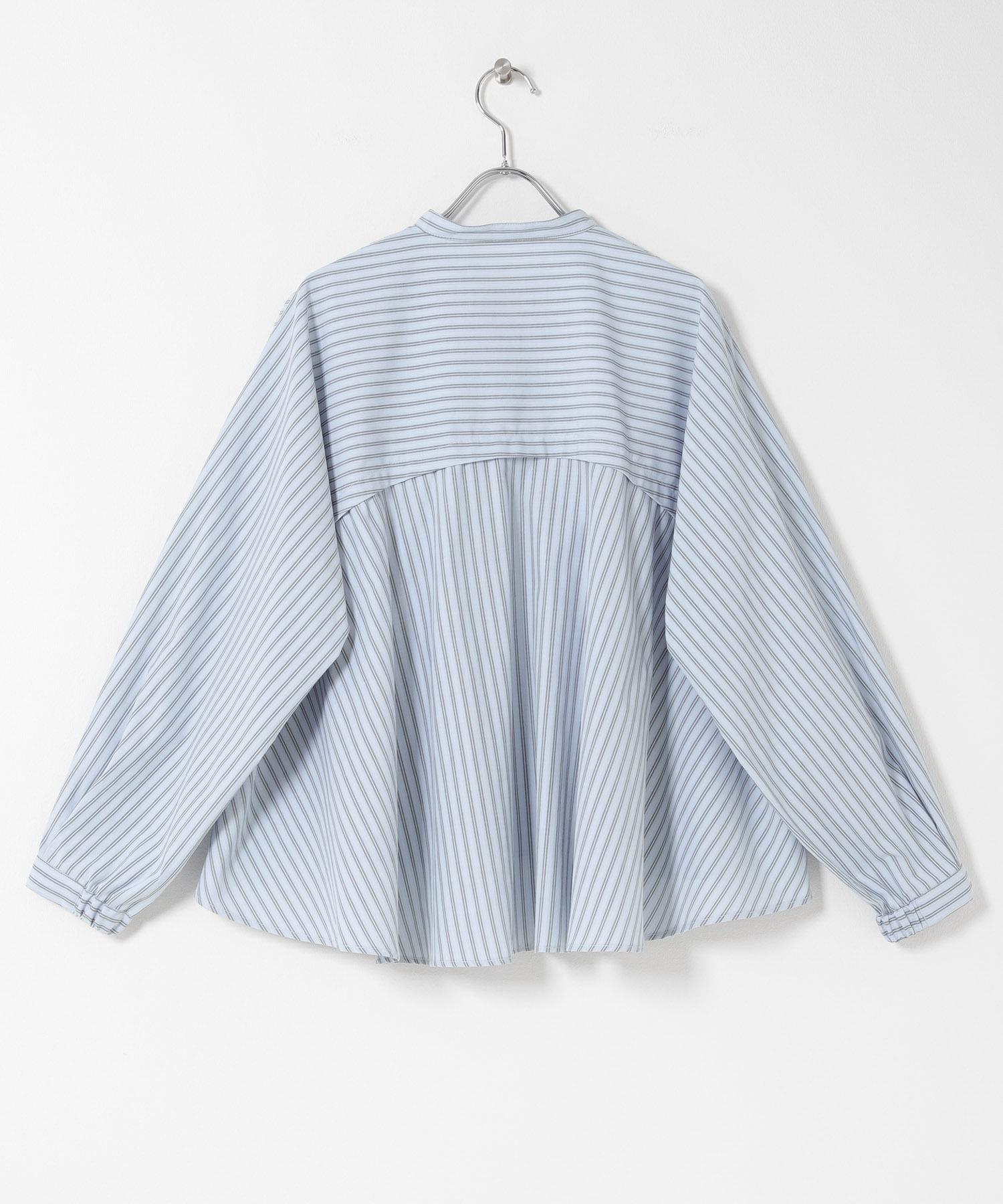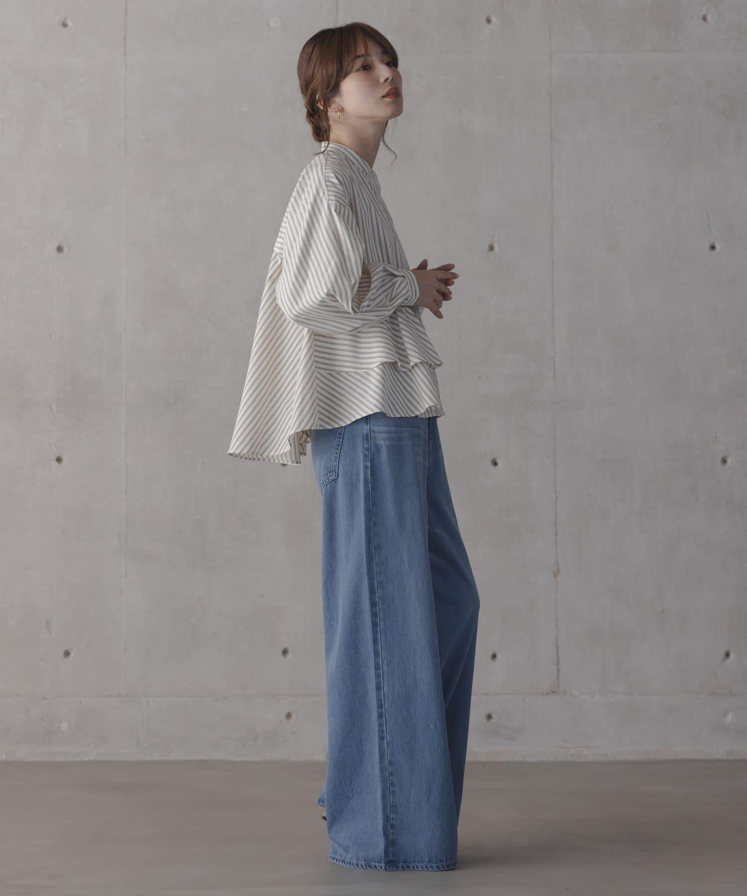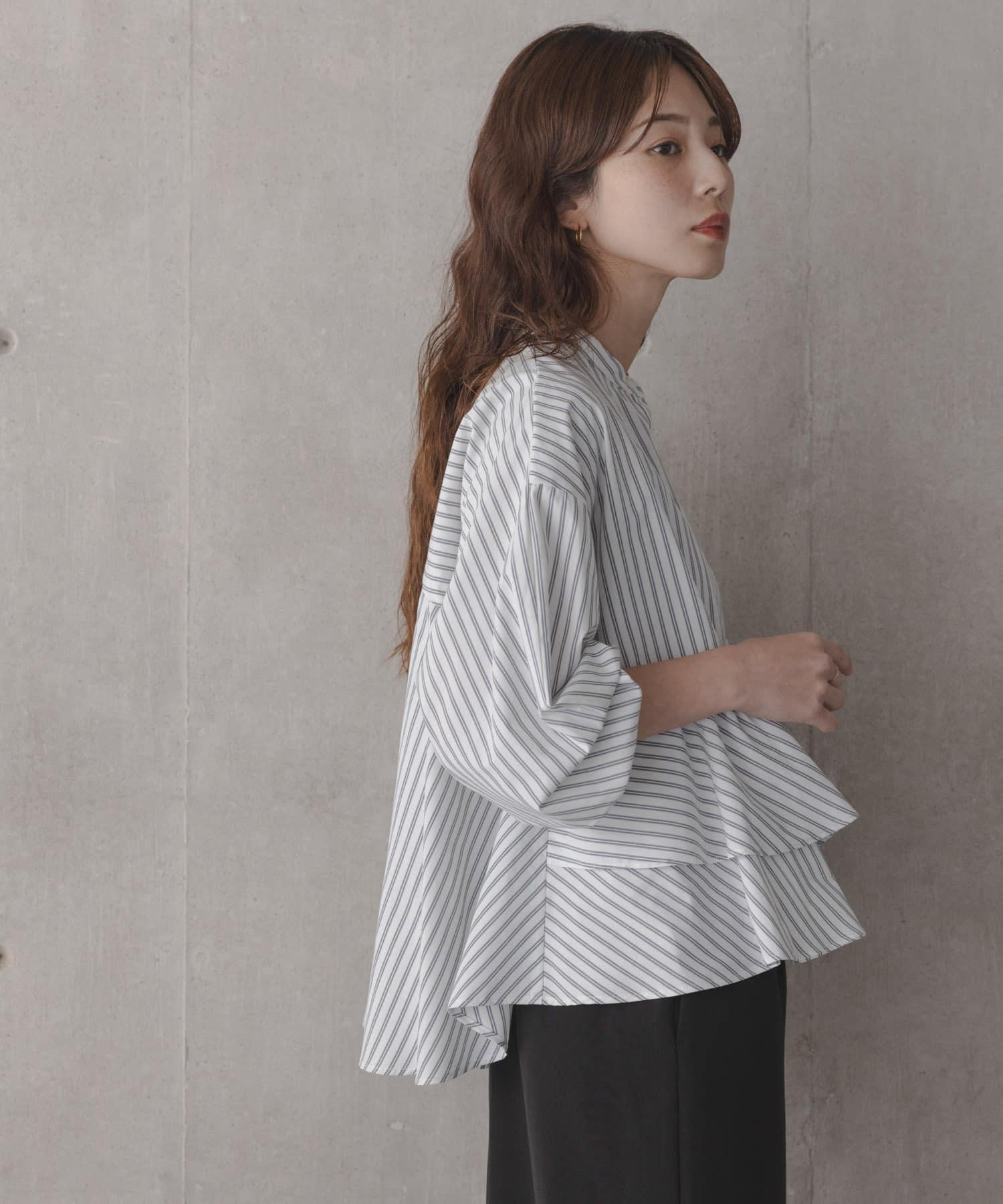 立領荷葉邊條紋襯衫