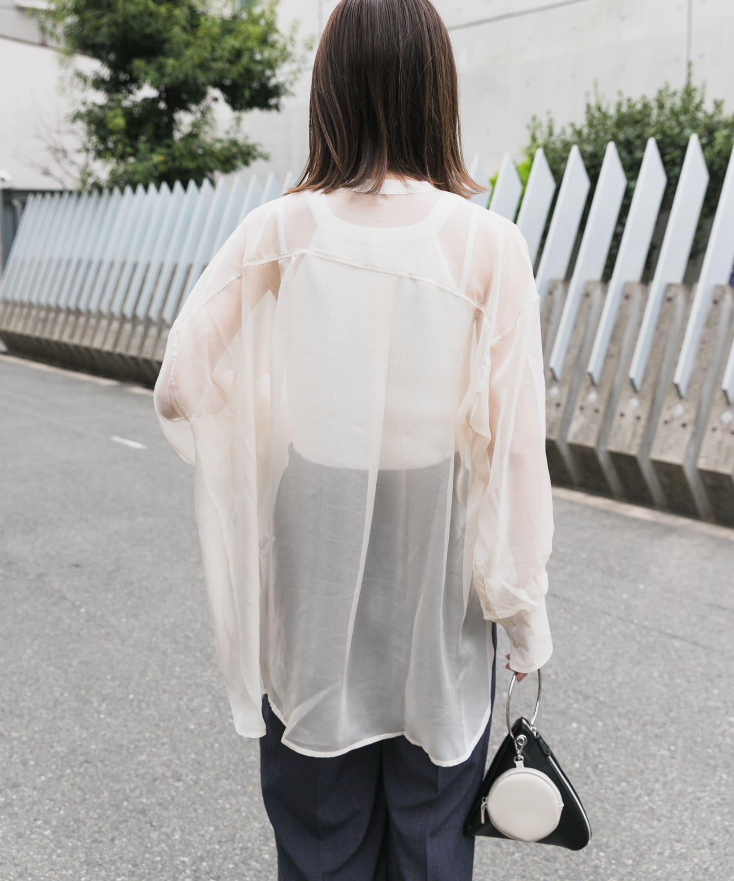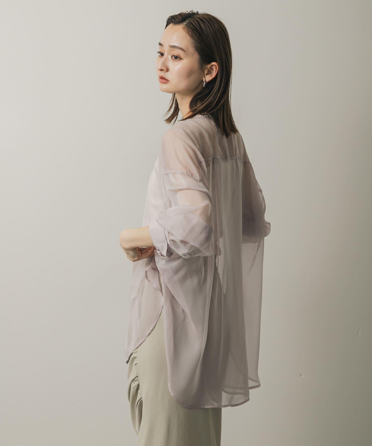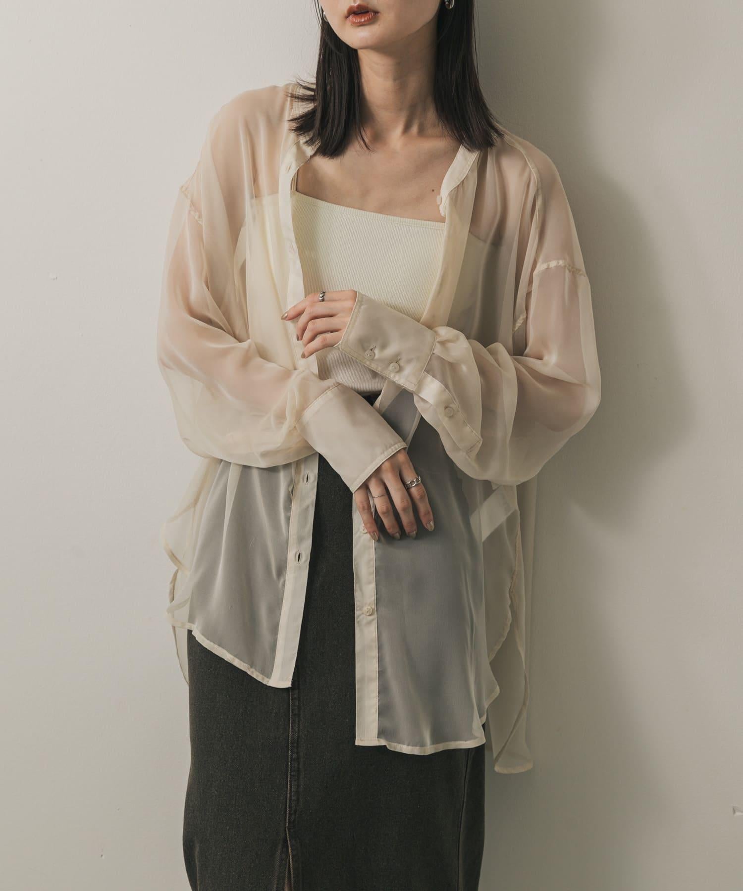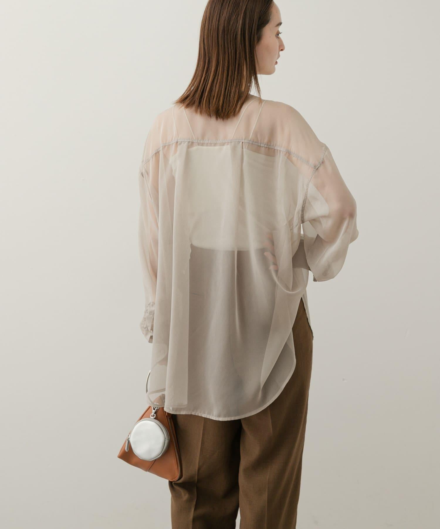 立領香檳色薄紗襯衫