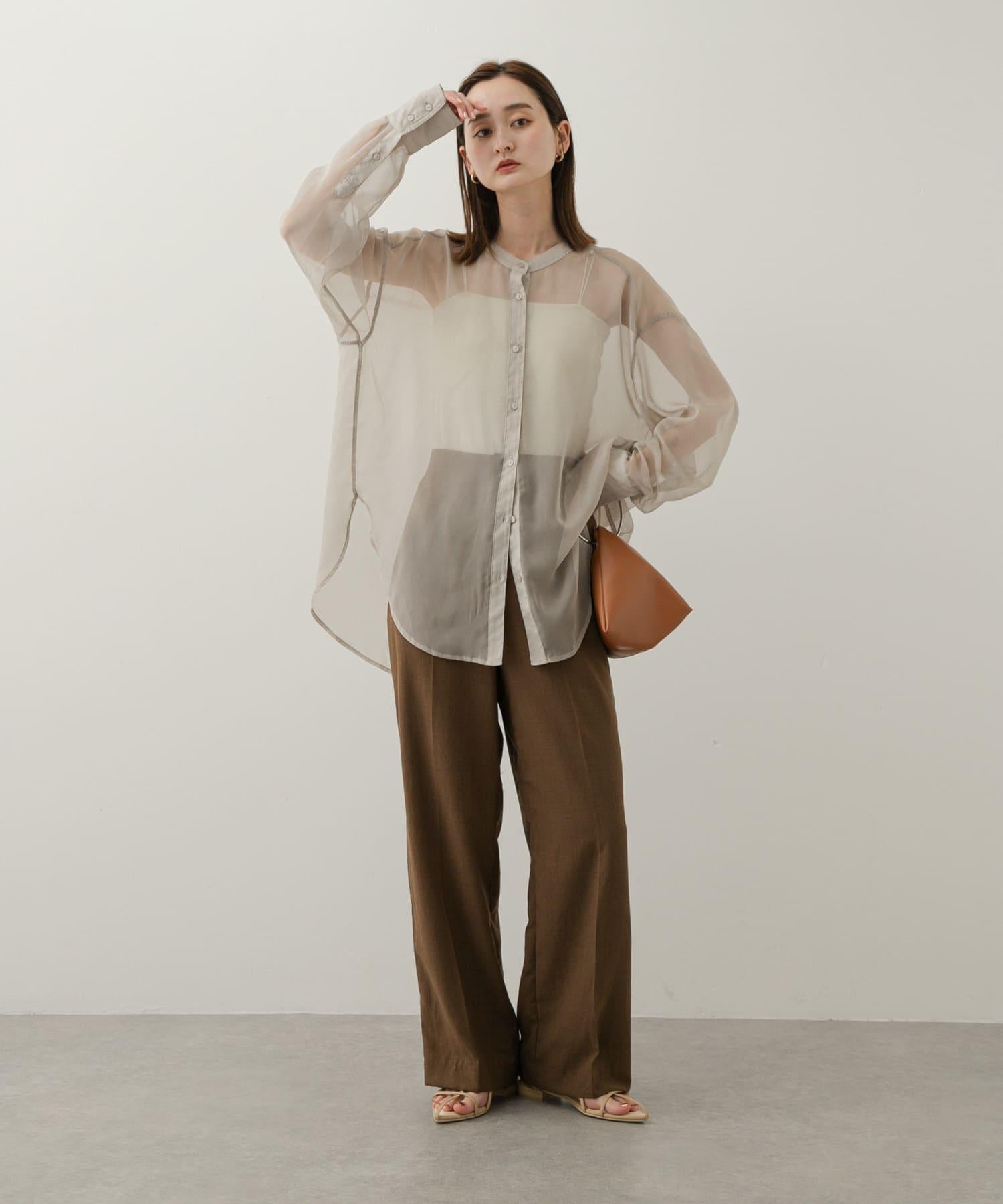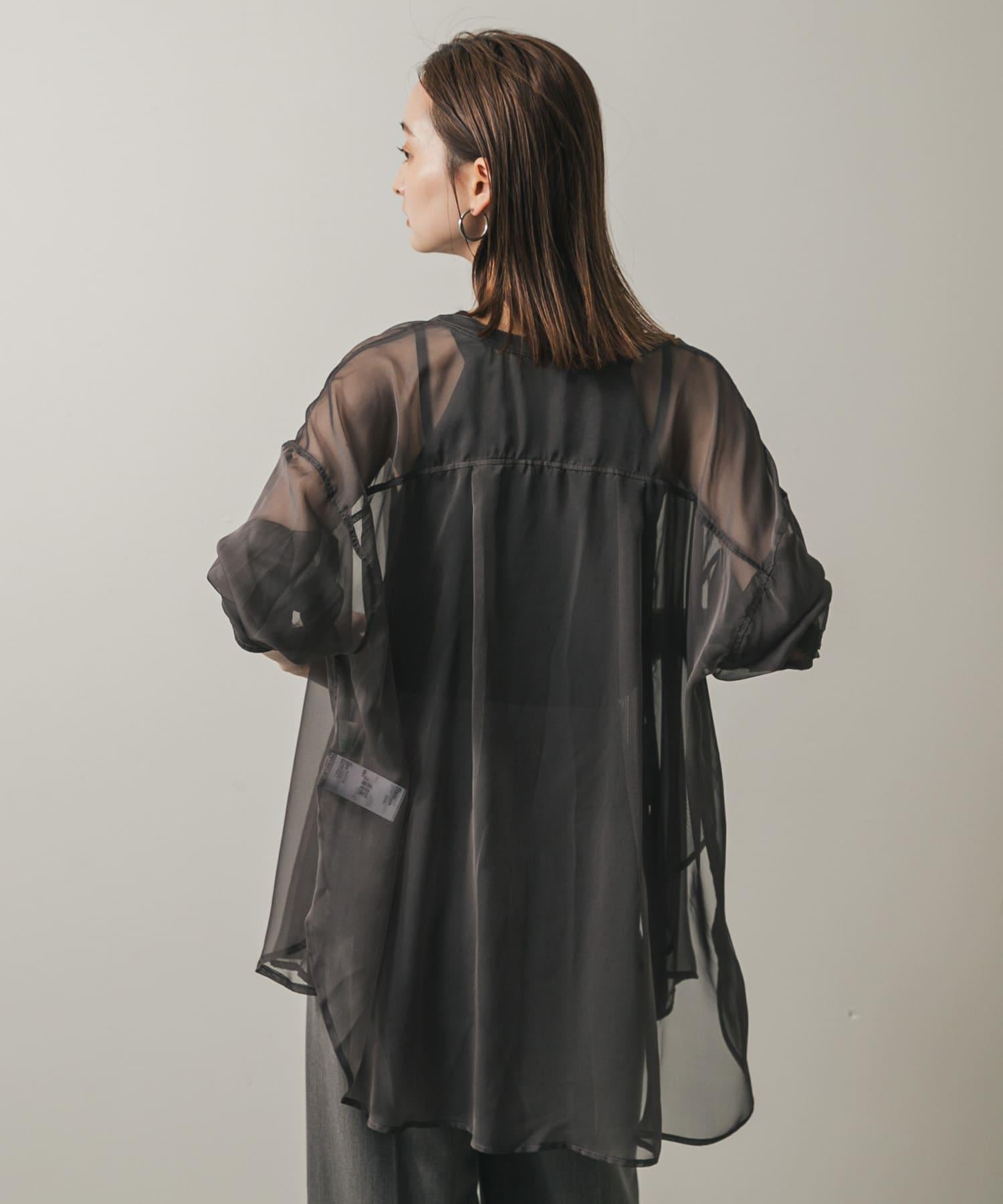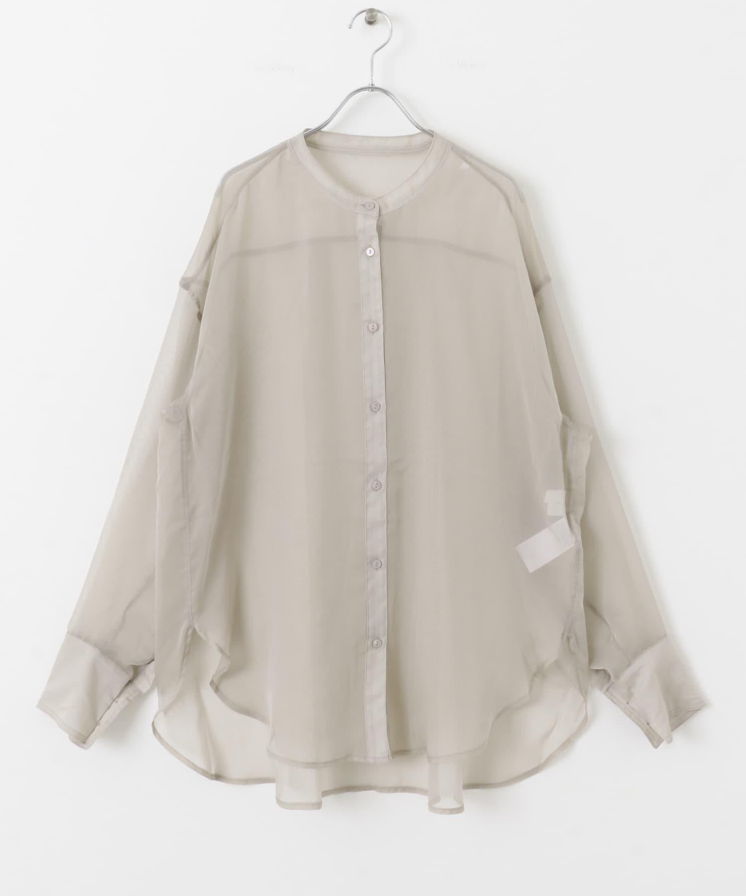 立領香檳色薄紗襯衫