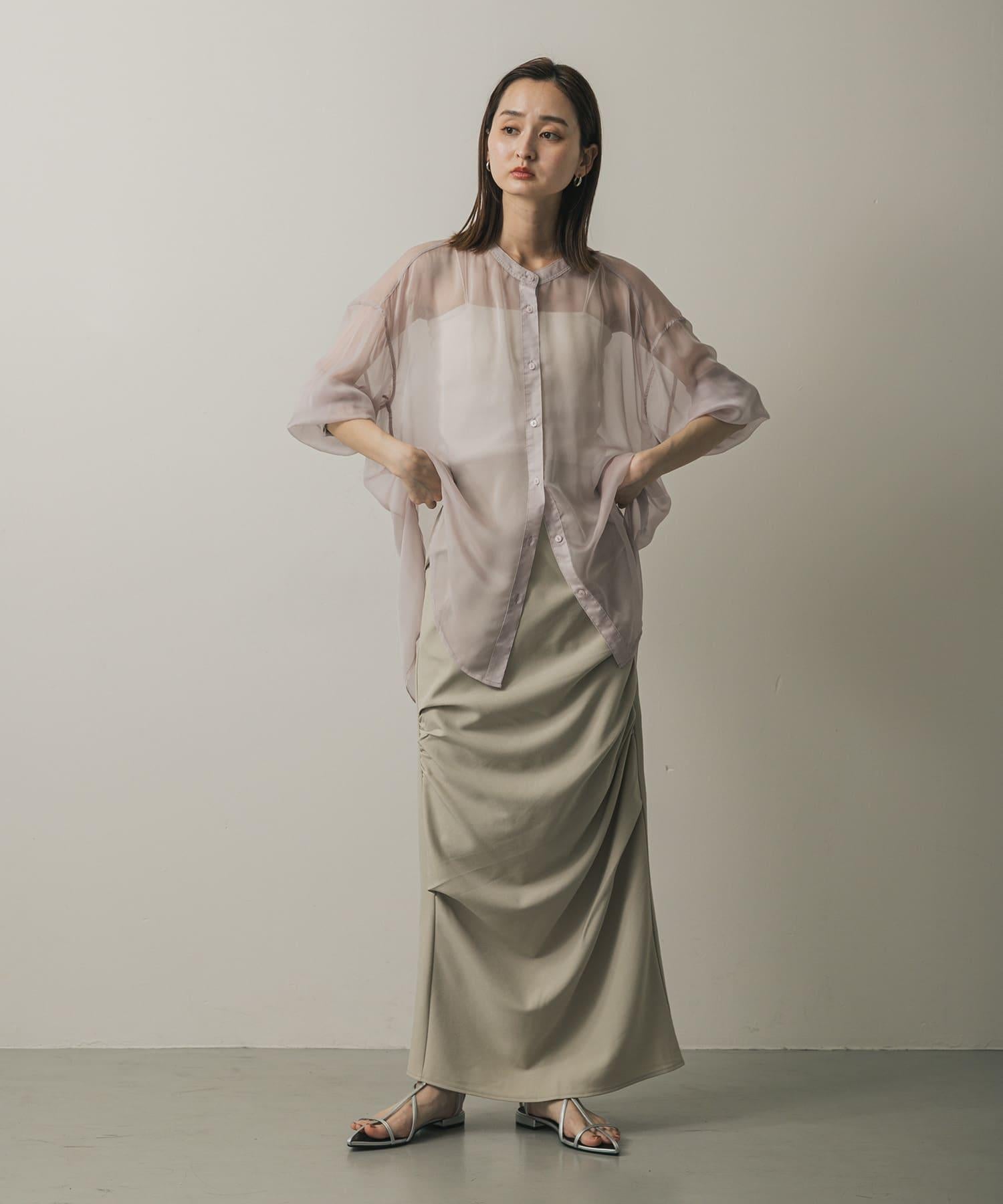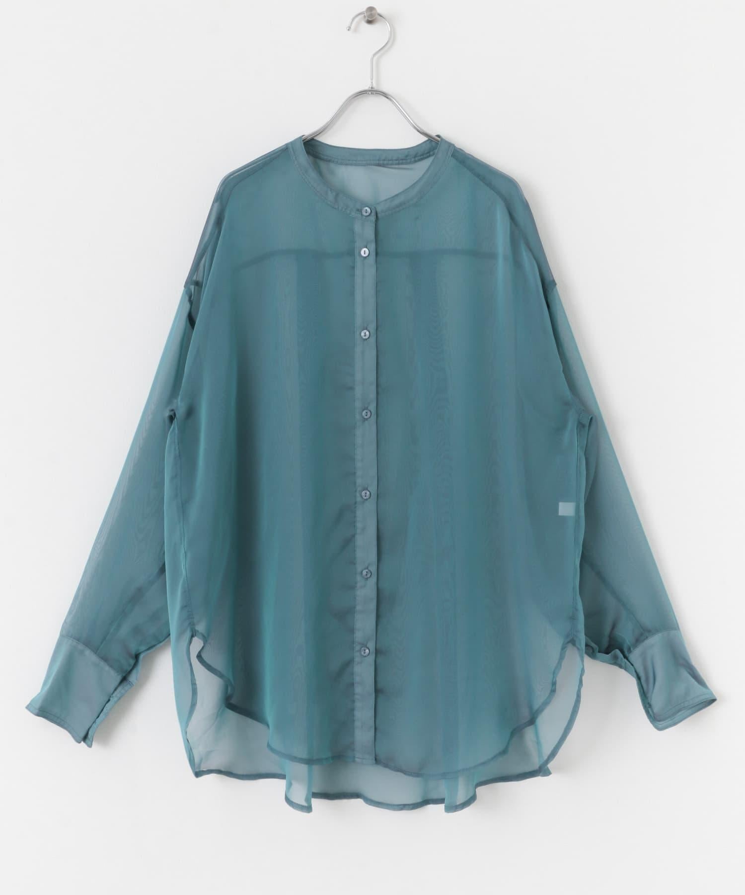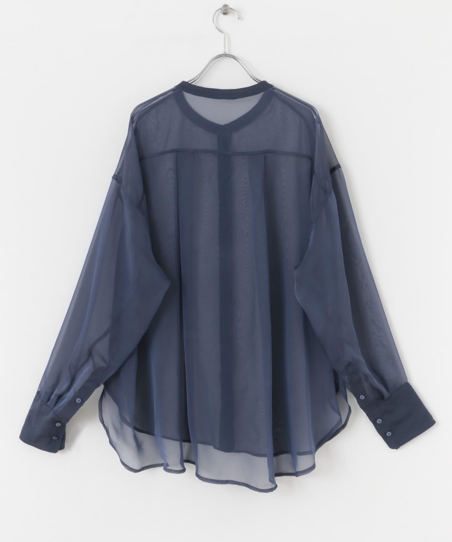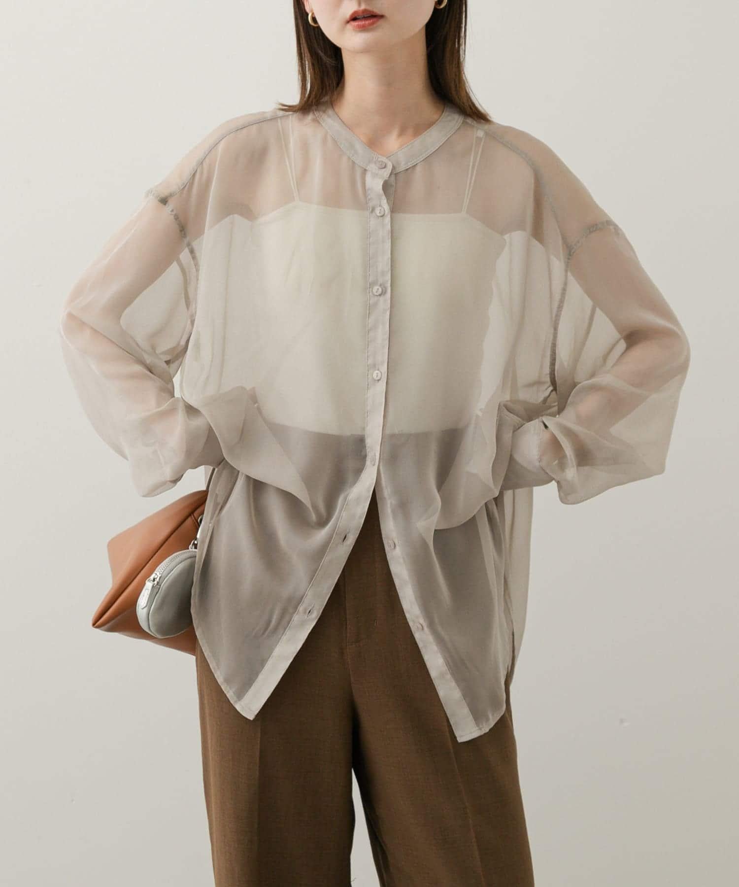 立領香檳色薄紗襯衫
