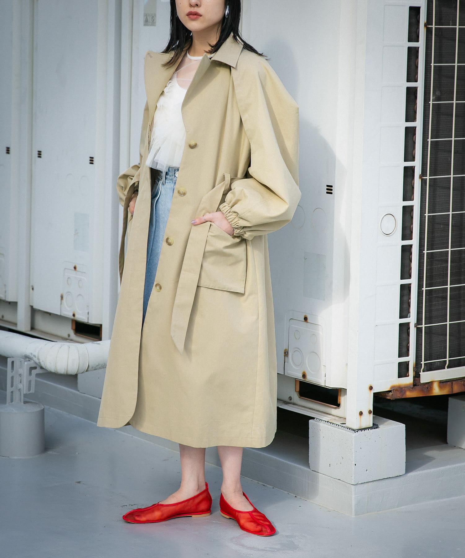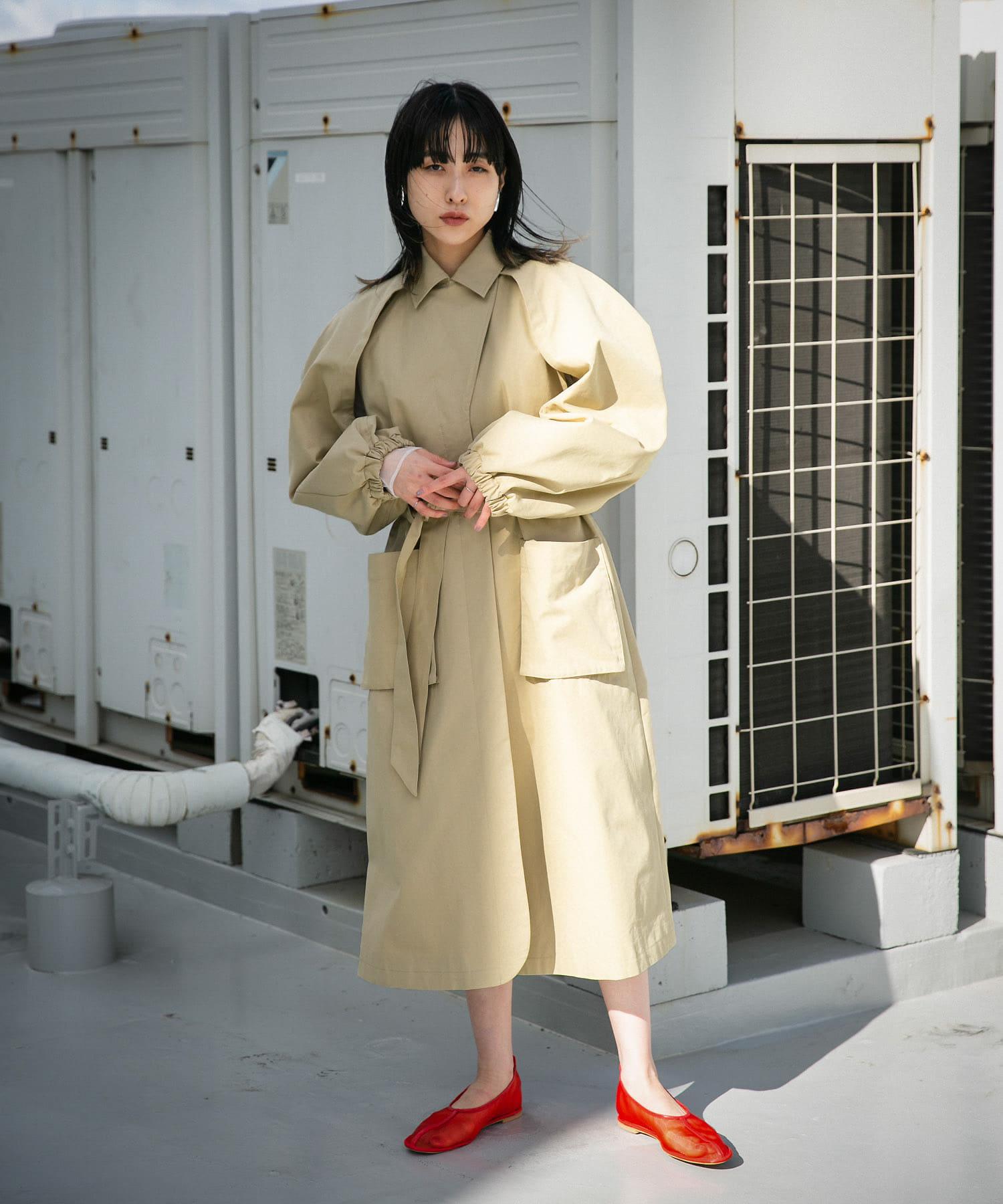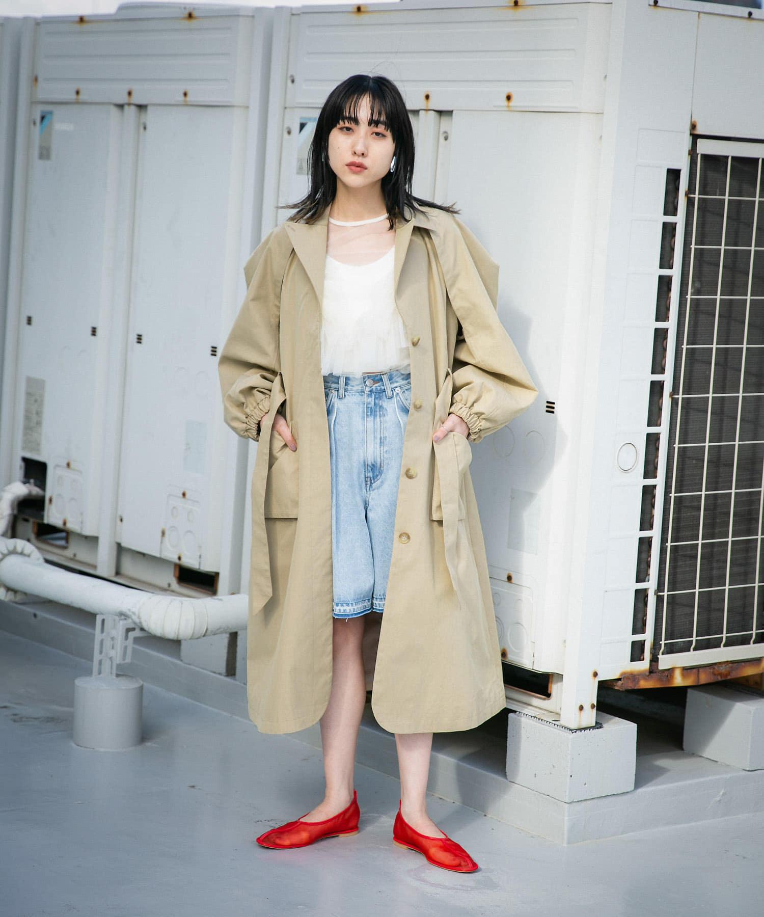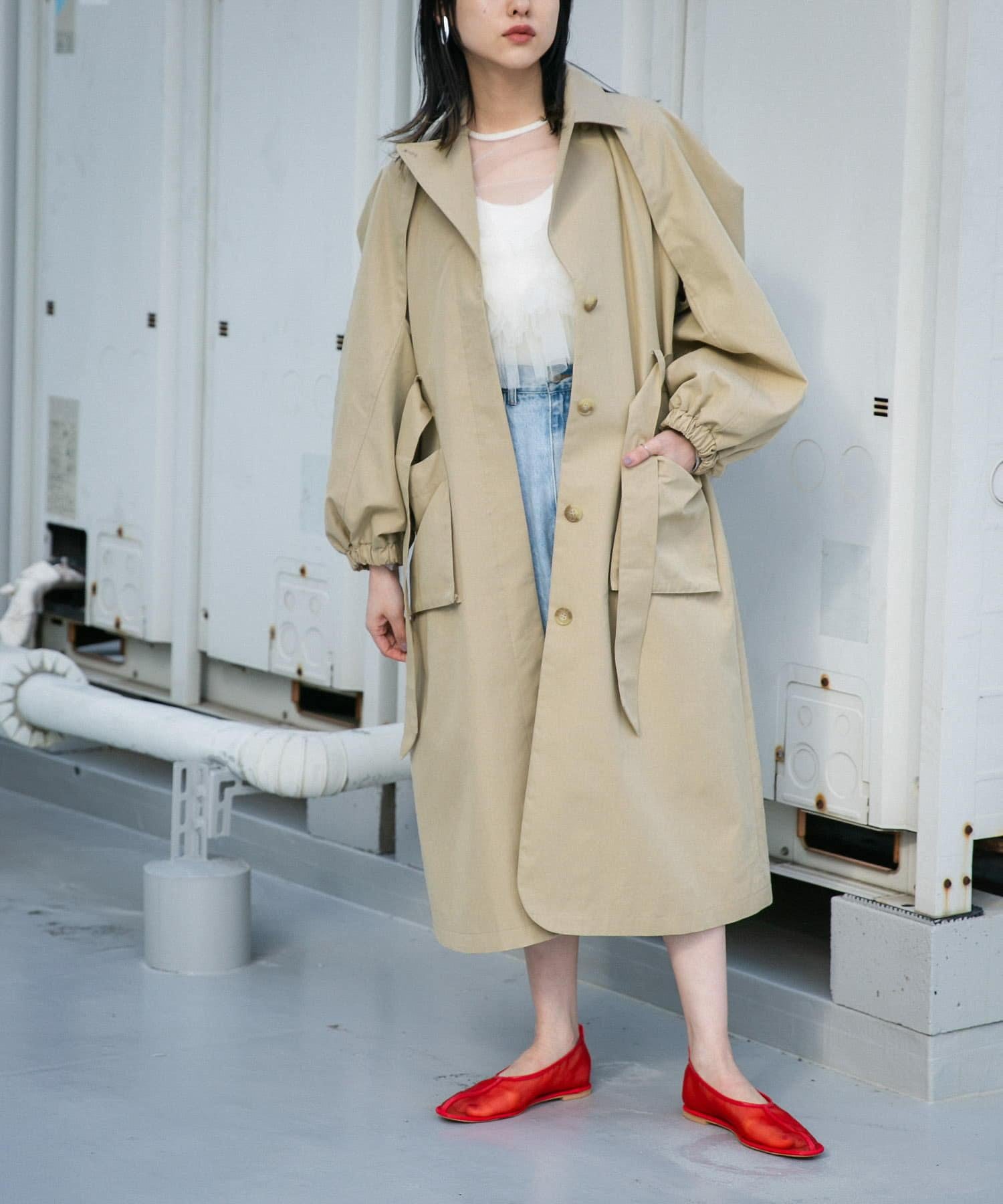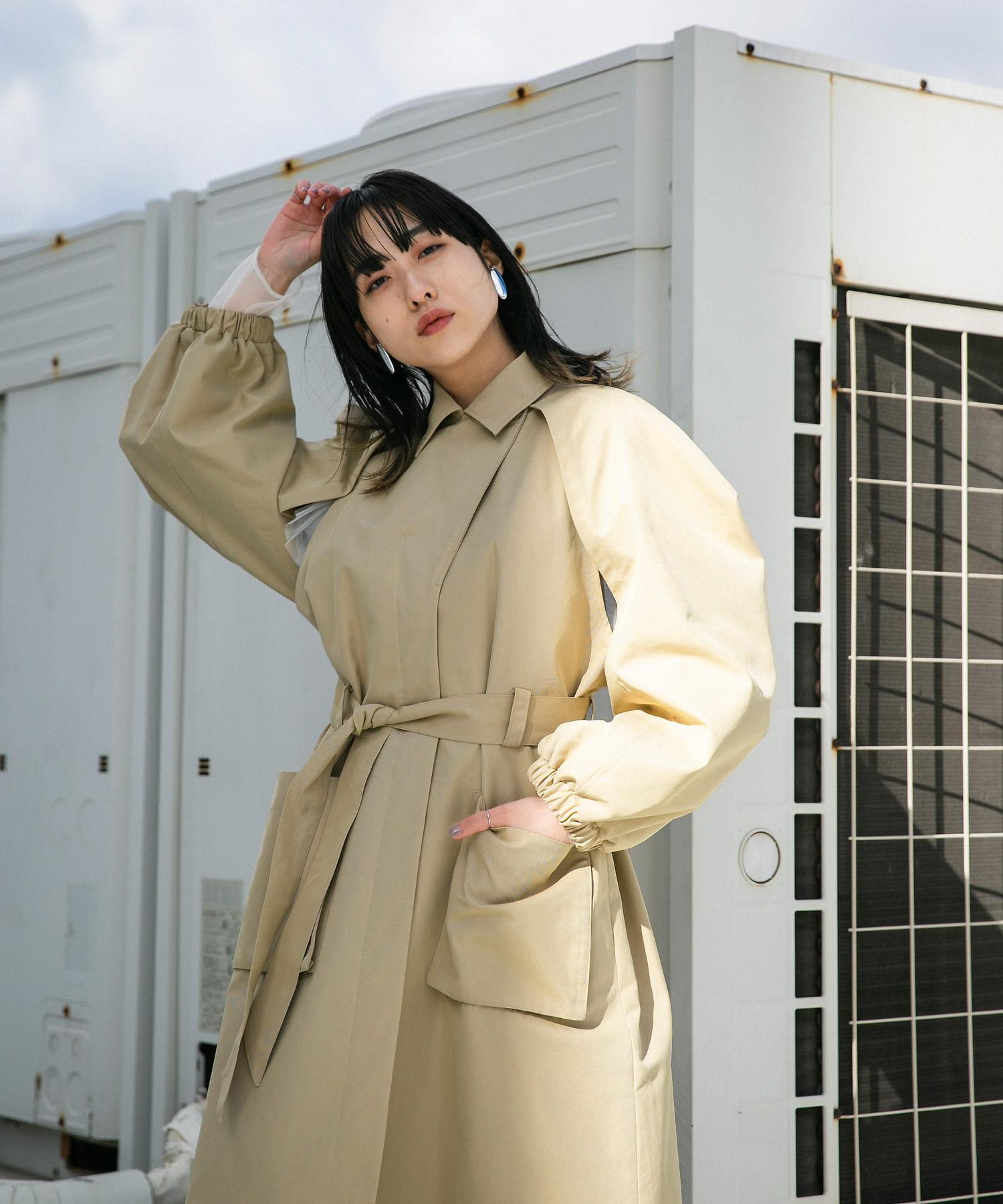 這款春季外套採用斜紋織物製成,看上去就像一件風衣。袖子的設計具有體積感,給人一種摩登的印象。袖口可以解開,露出手臂。袖口採用鬆緊設計,可以輕鬆捲起袖子,是一款實用的單品。