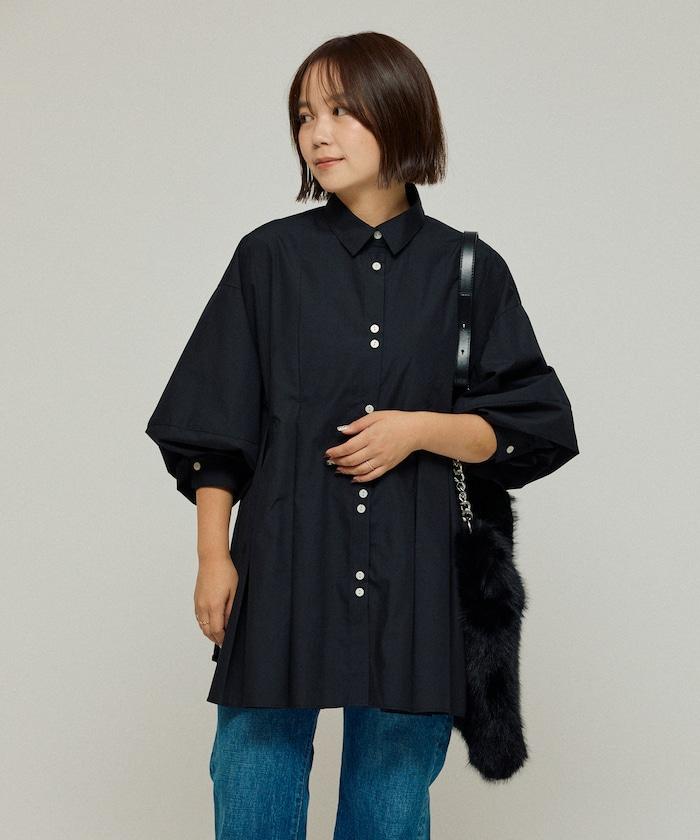 寬大的箱型袖設計使襯衫可作為單品穿著。