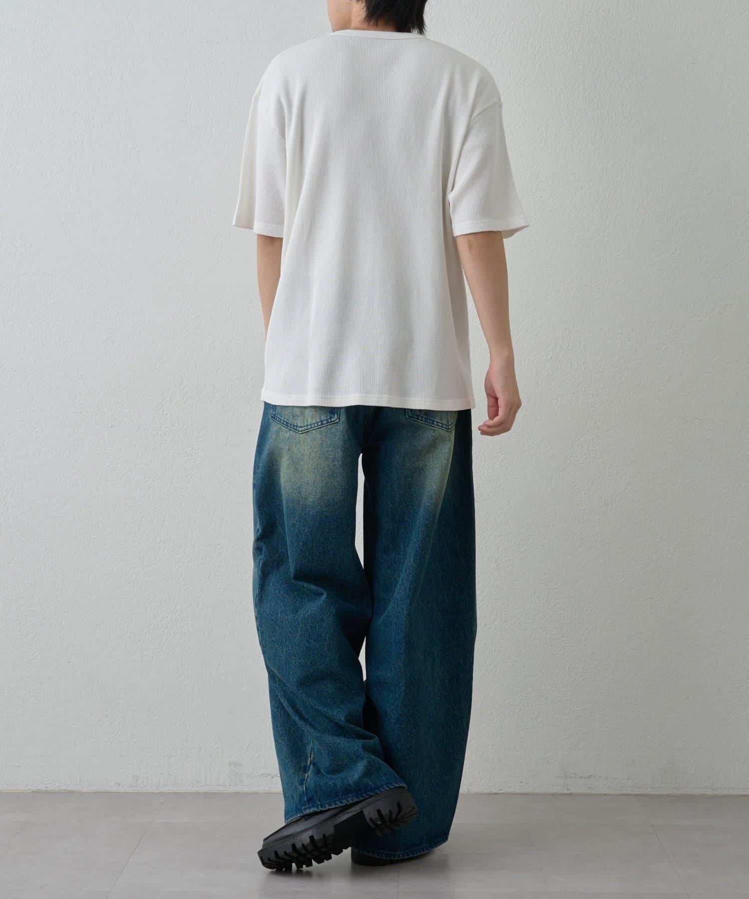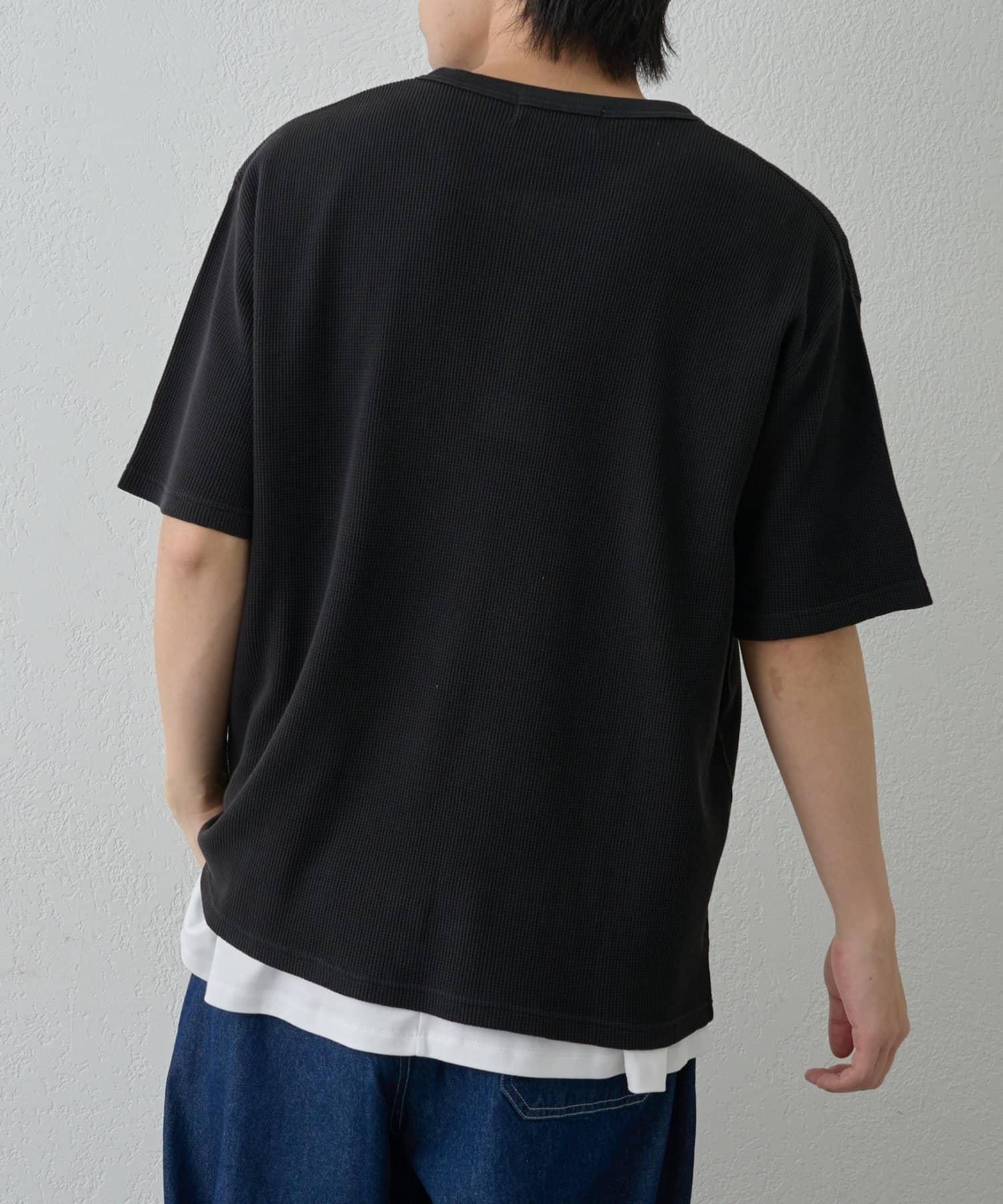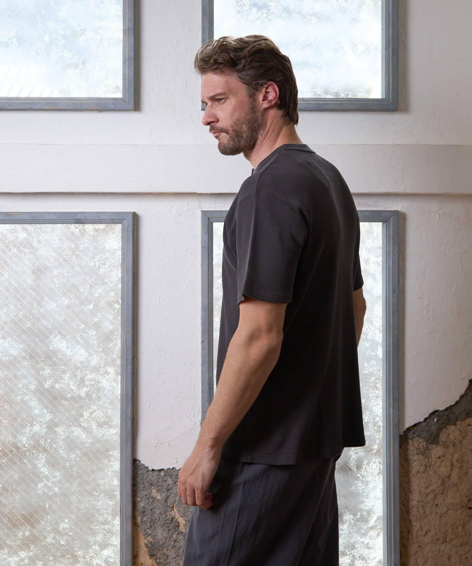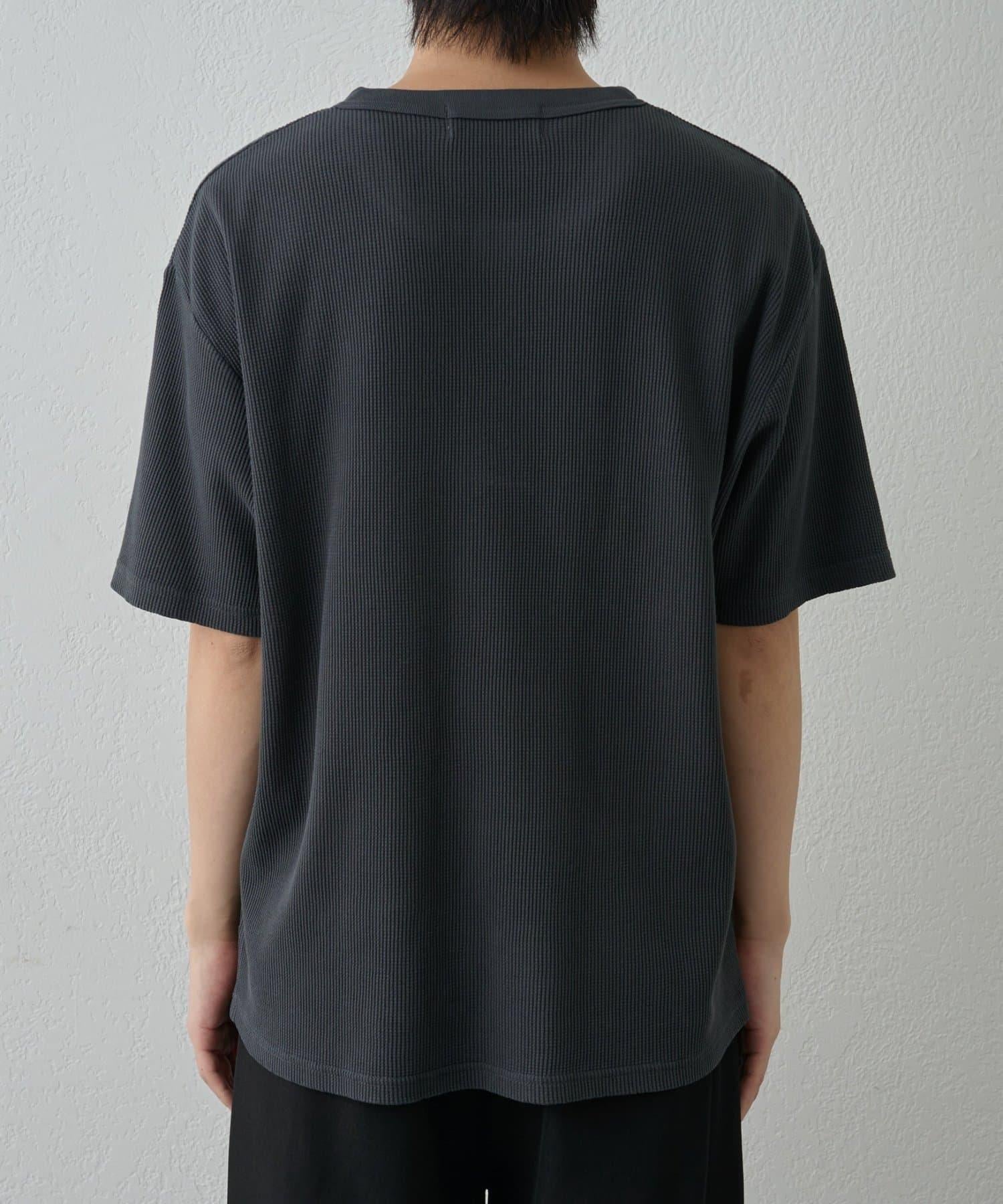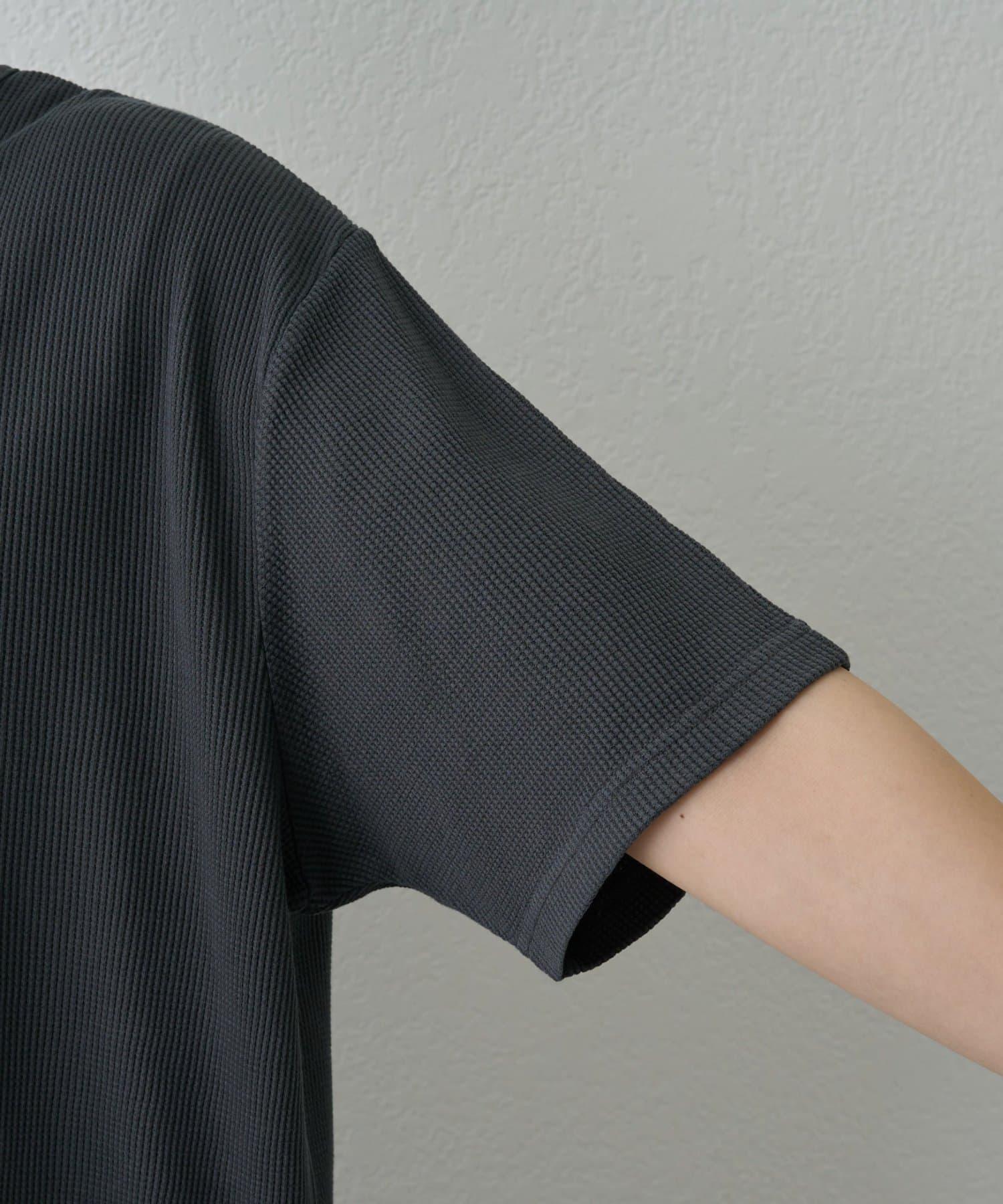 這款雞心領襯衫採用煤氣燒製的華夫格面料,領口處的紐扣簡潔而突出。