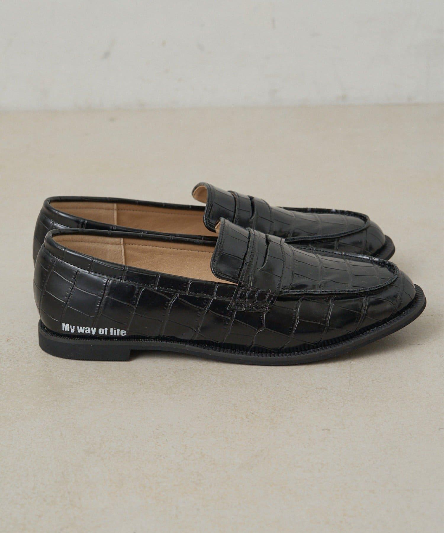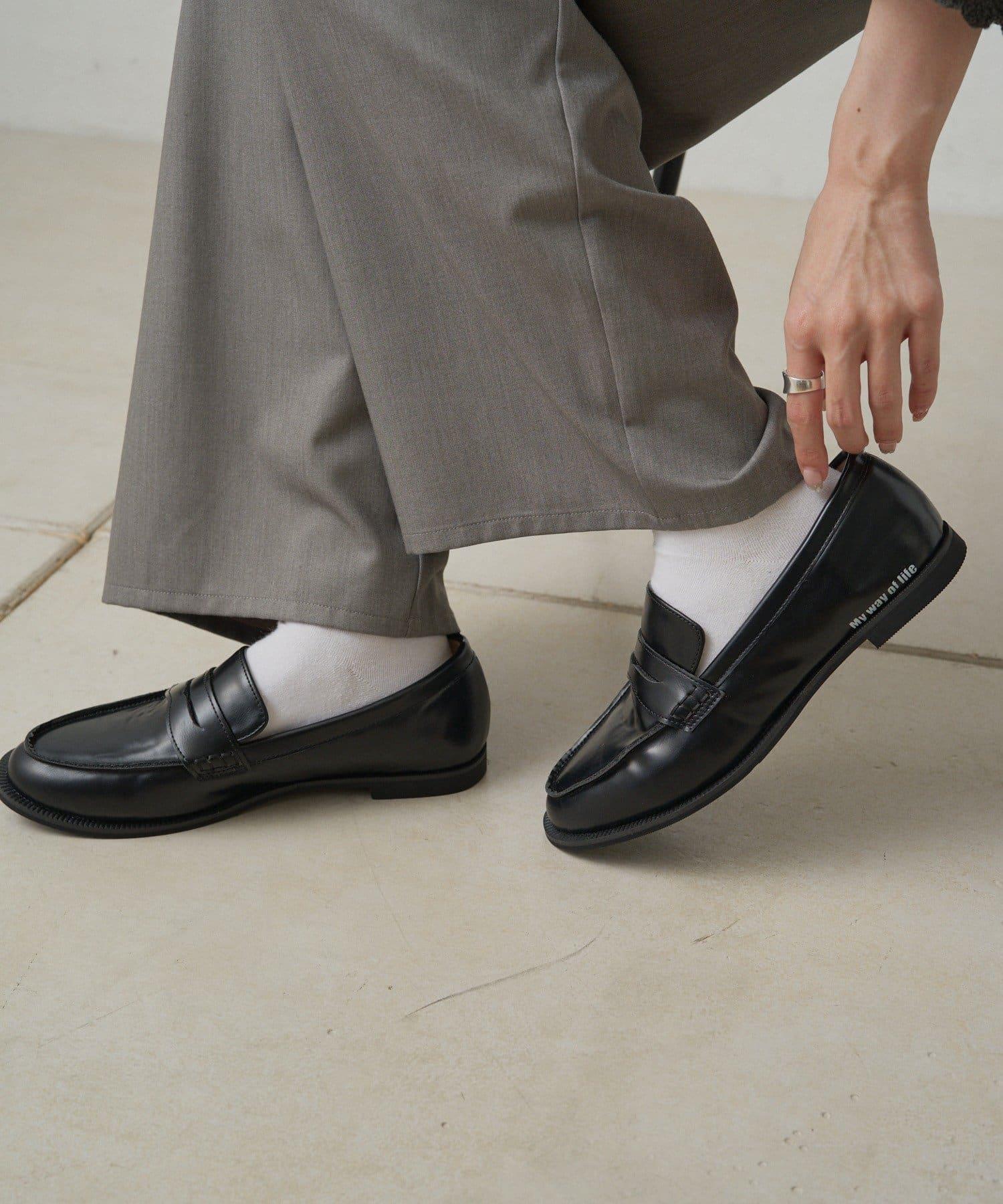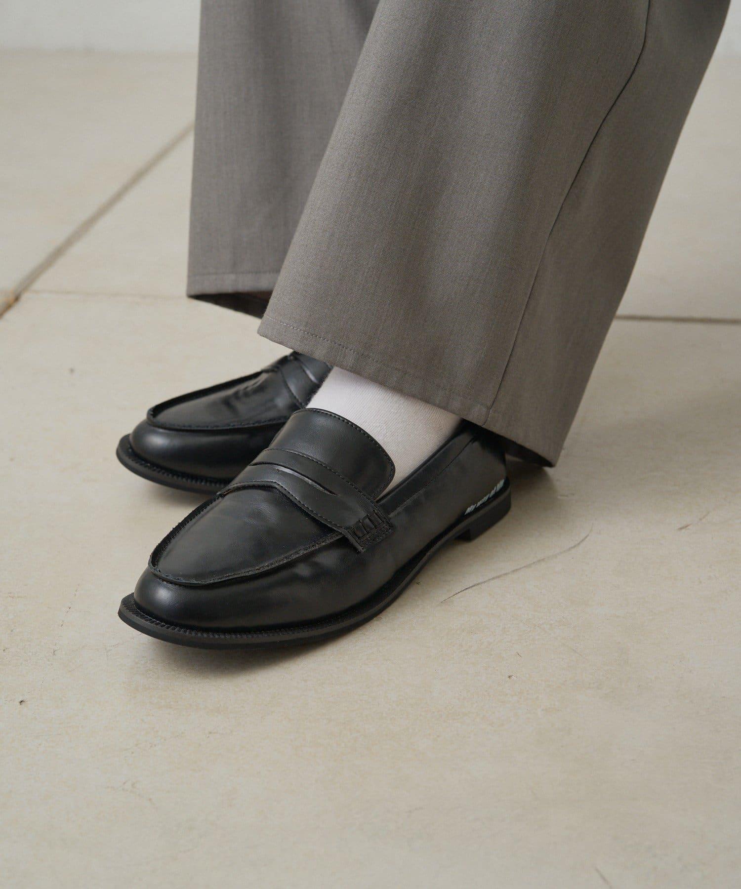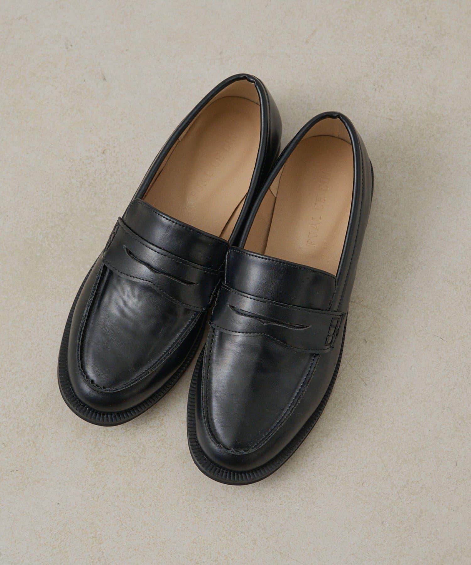 基本款式的硬幣休閒鞋,鞋跟一側印有徽標圖案。