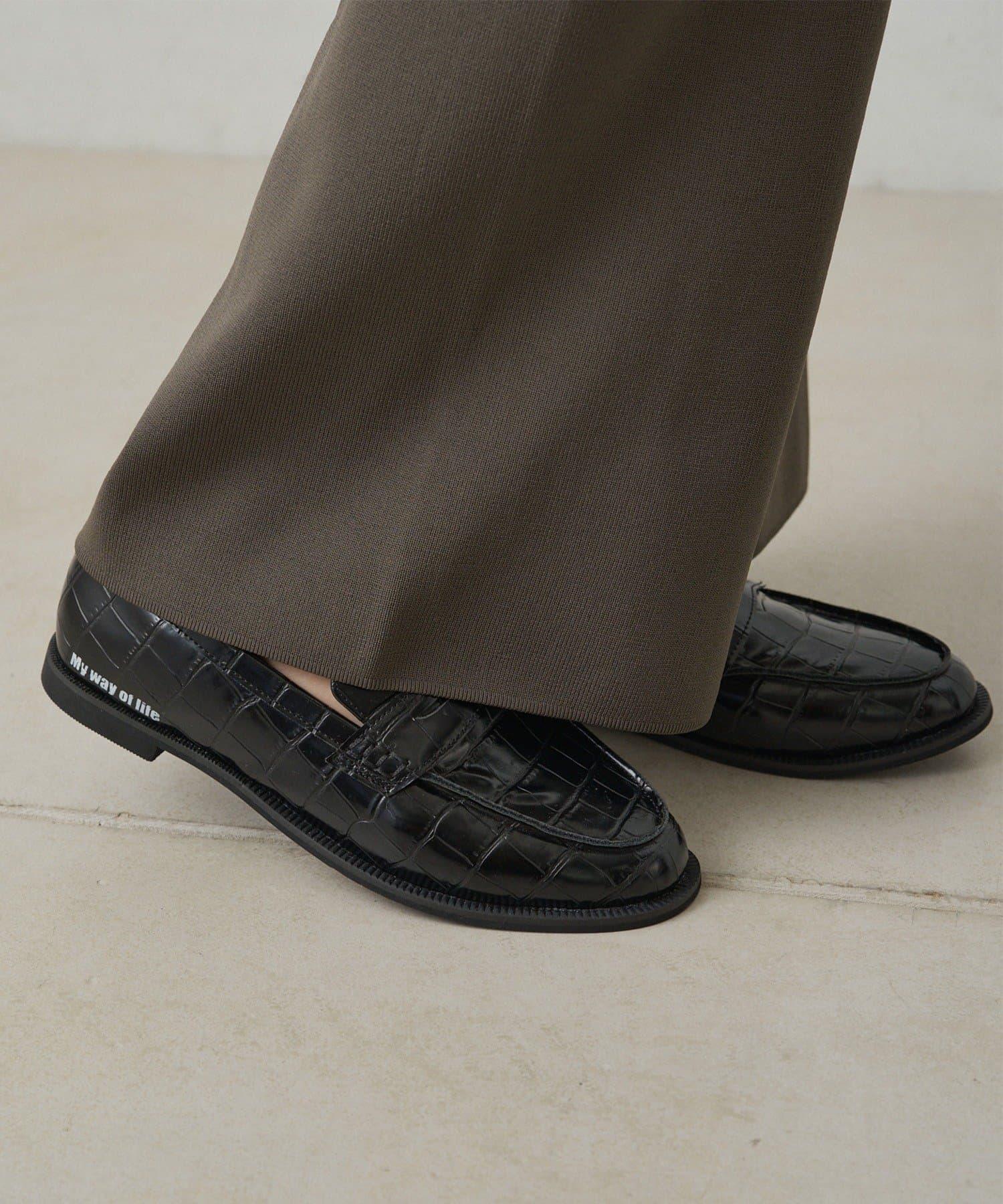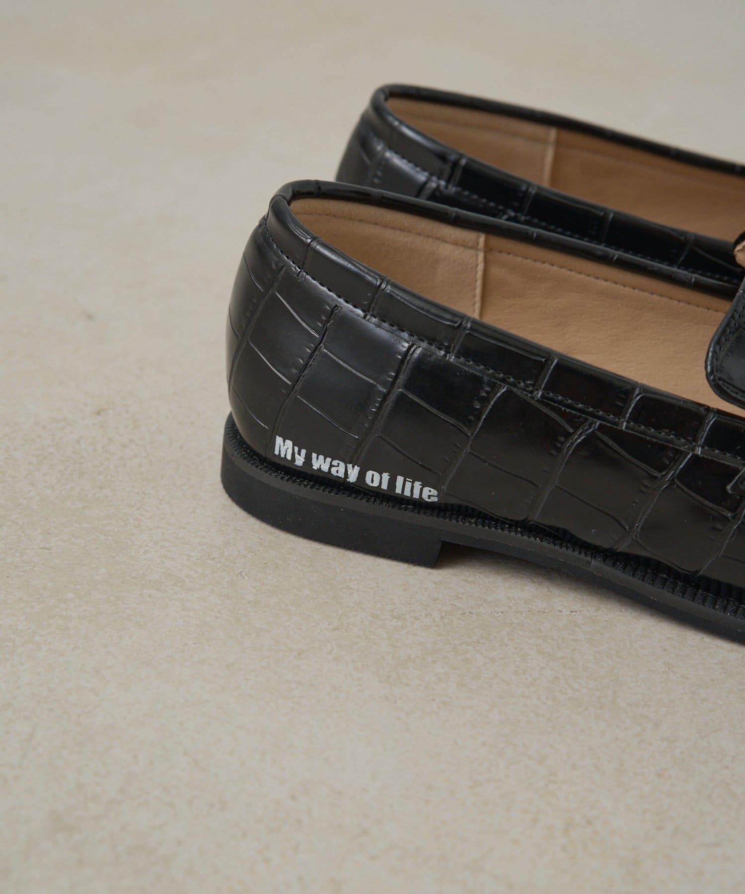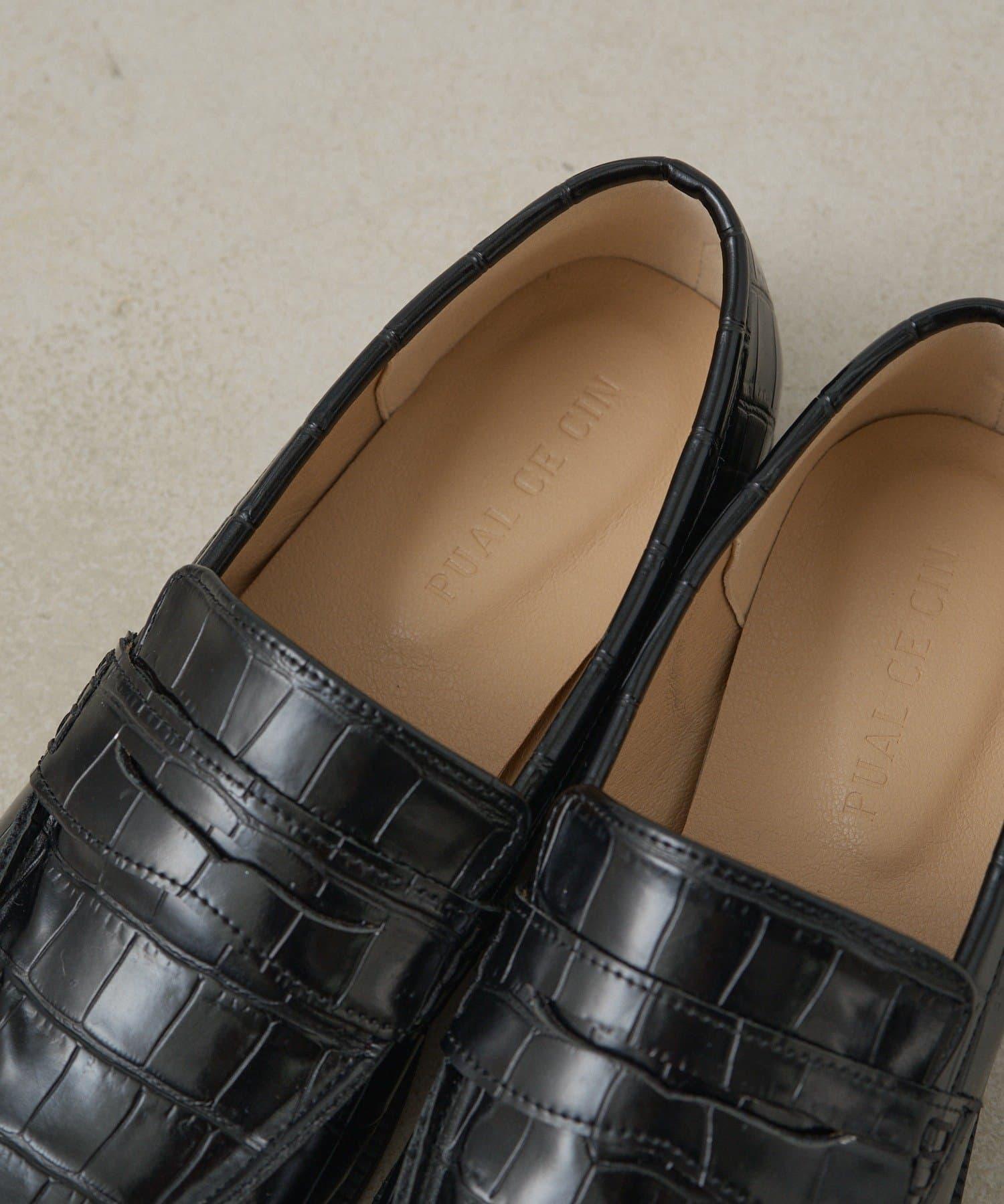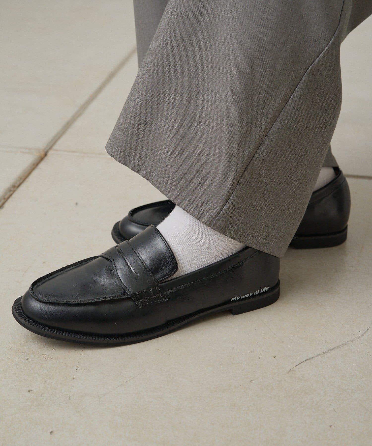 基本款式的硬幣休閒鞋,鞋跟一側印有徽標圖案。