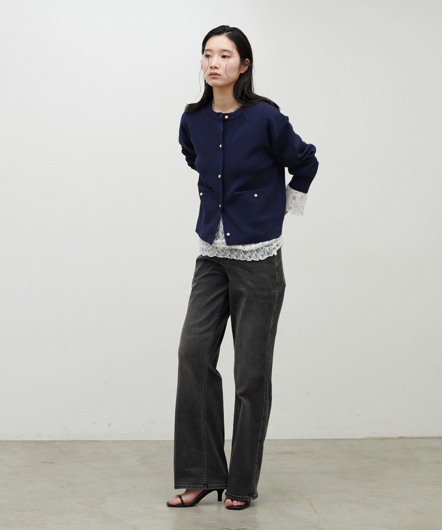 漂亮的珍珠鈕釦短款開衫吸引眼球。