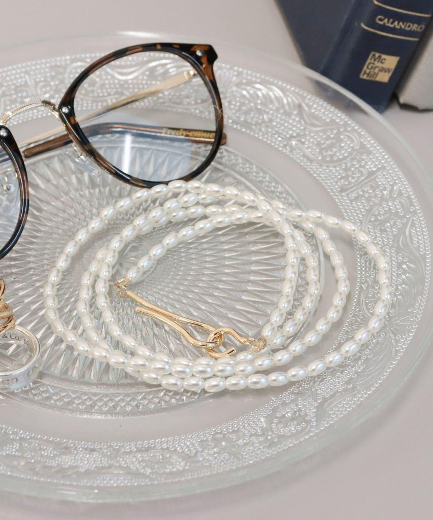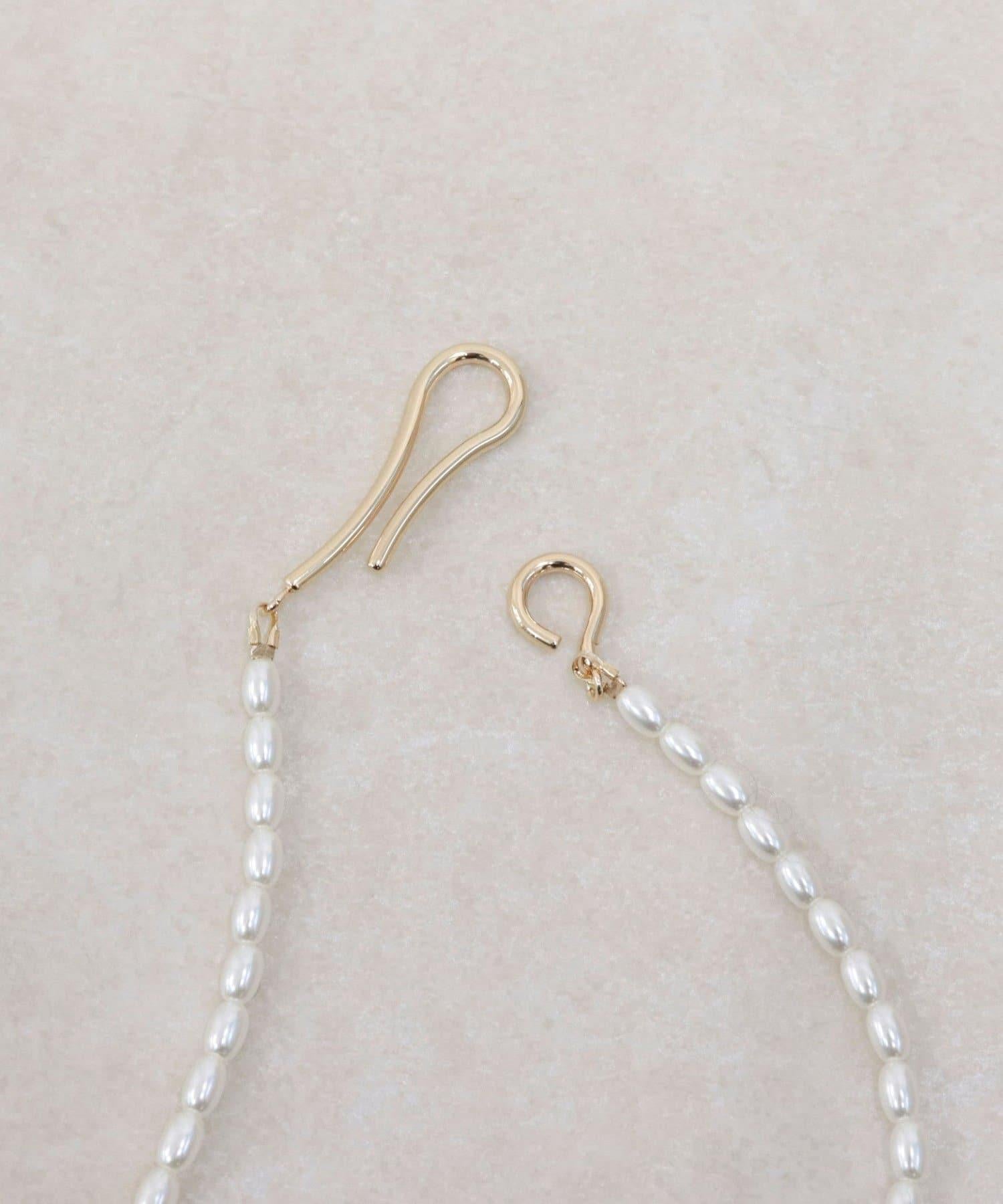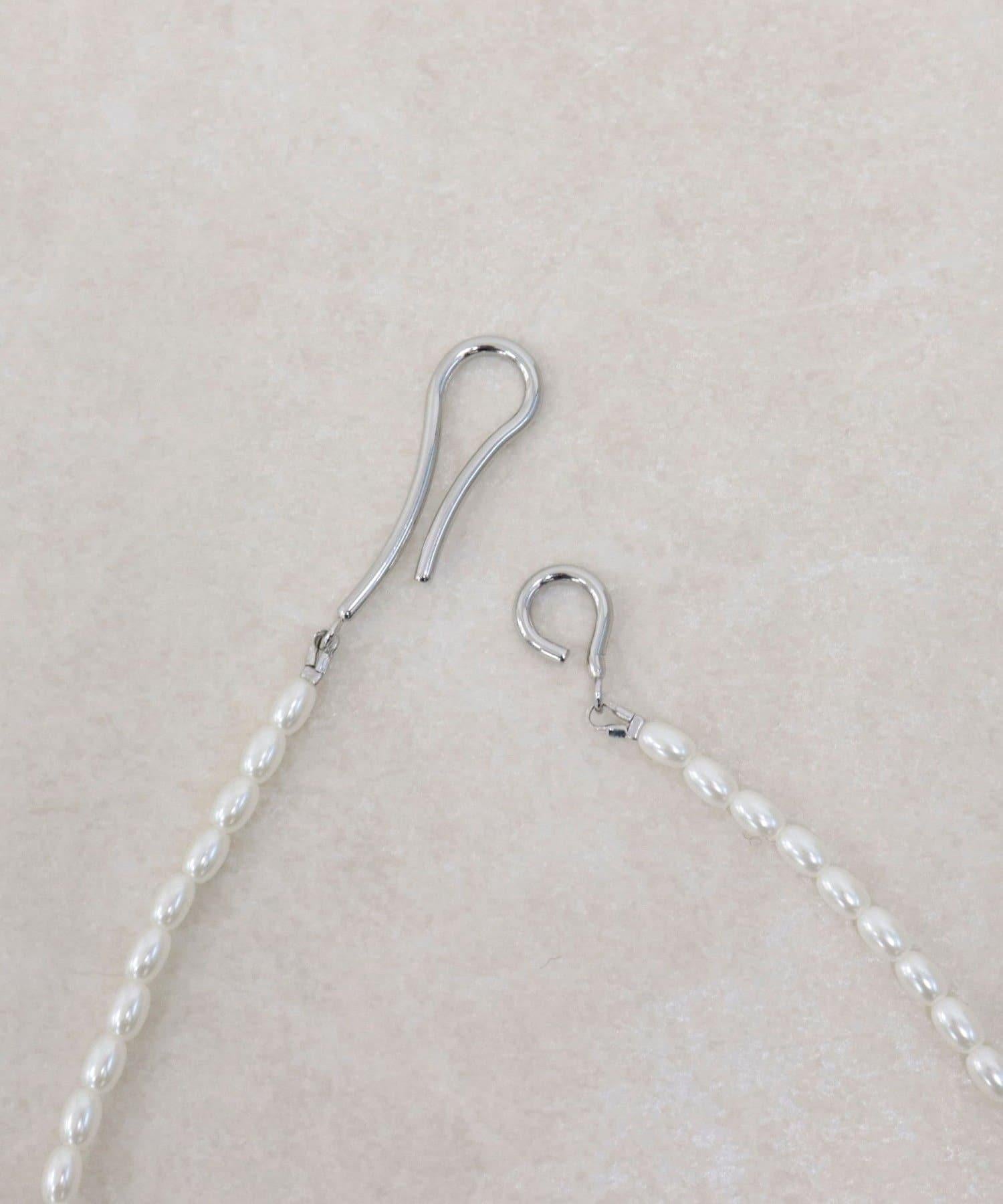 鉤型長項鍊,鑲有一系列大米珍珠。