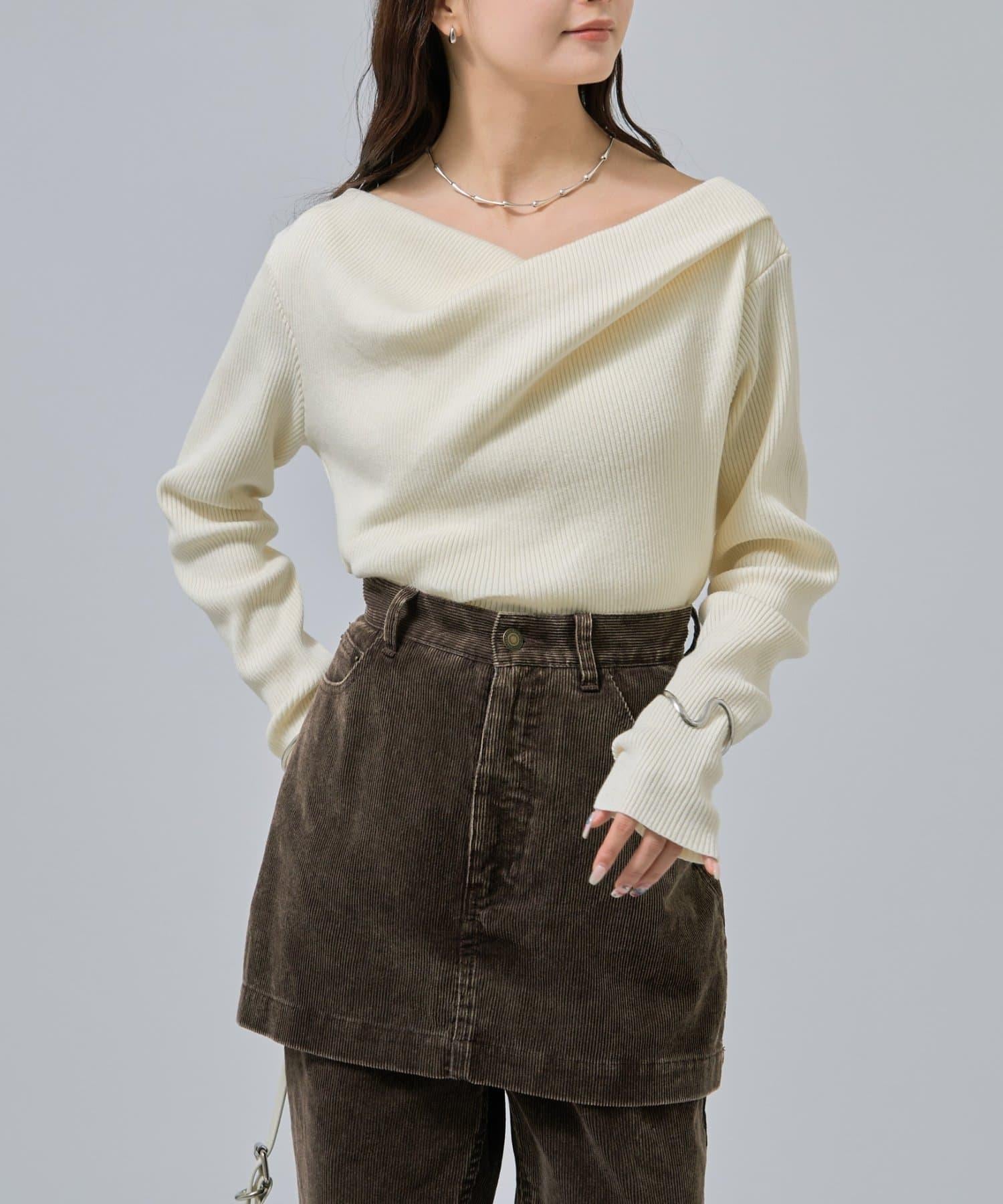 備受歡迎的露肩設計中的羅紋針織面料現已上市。讓肩部看起來美麗動人 ◎。