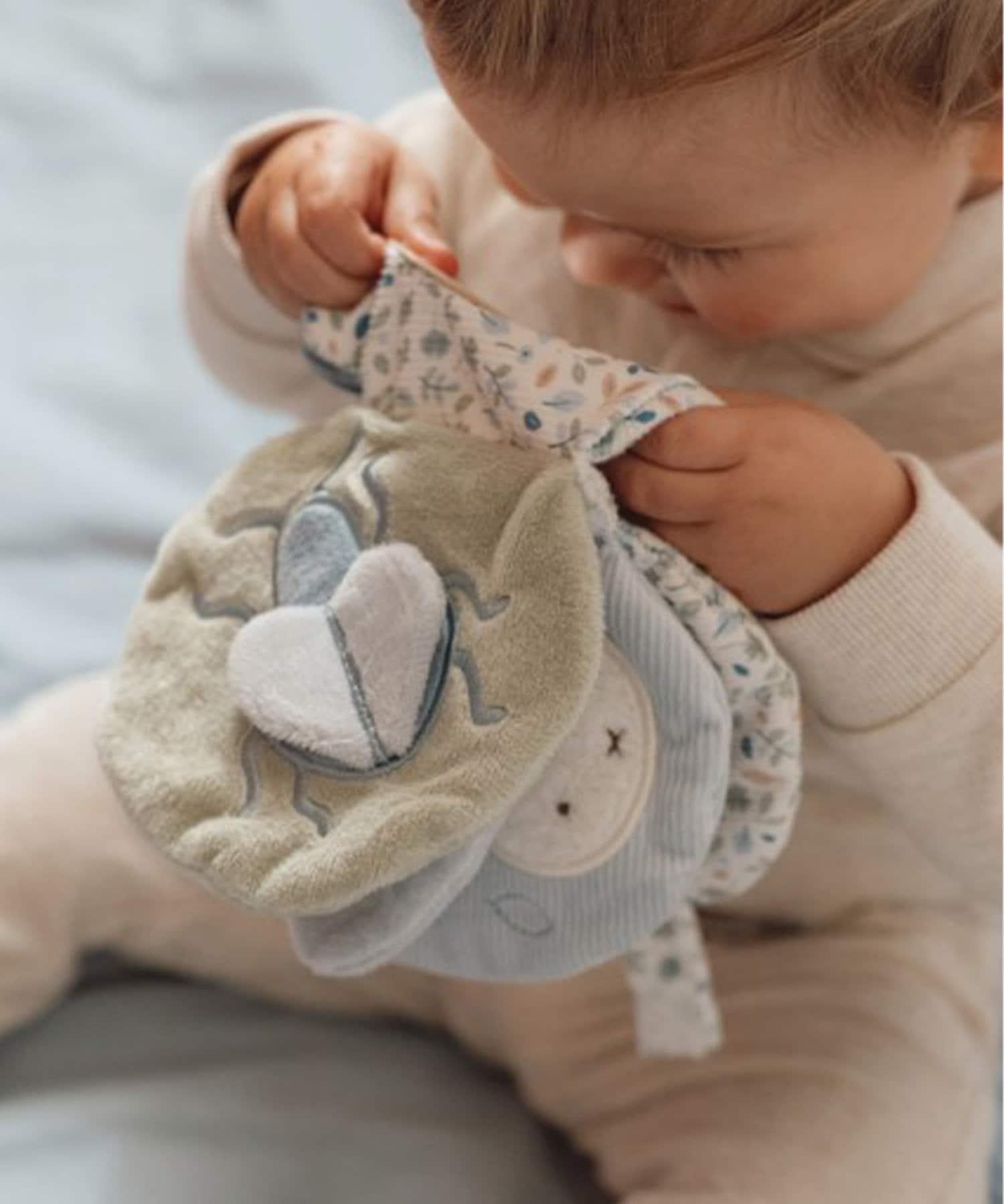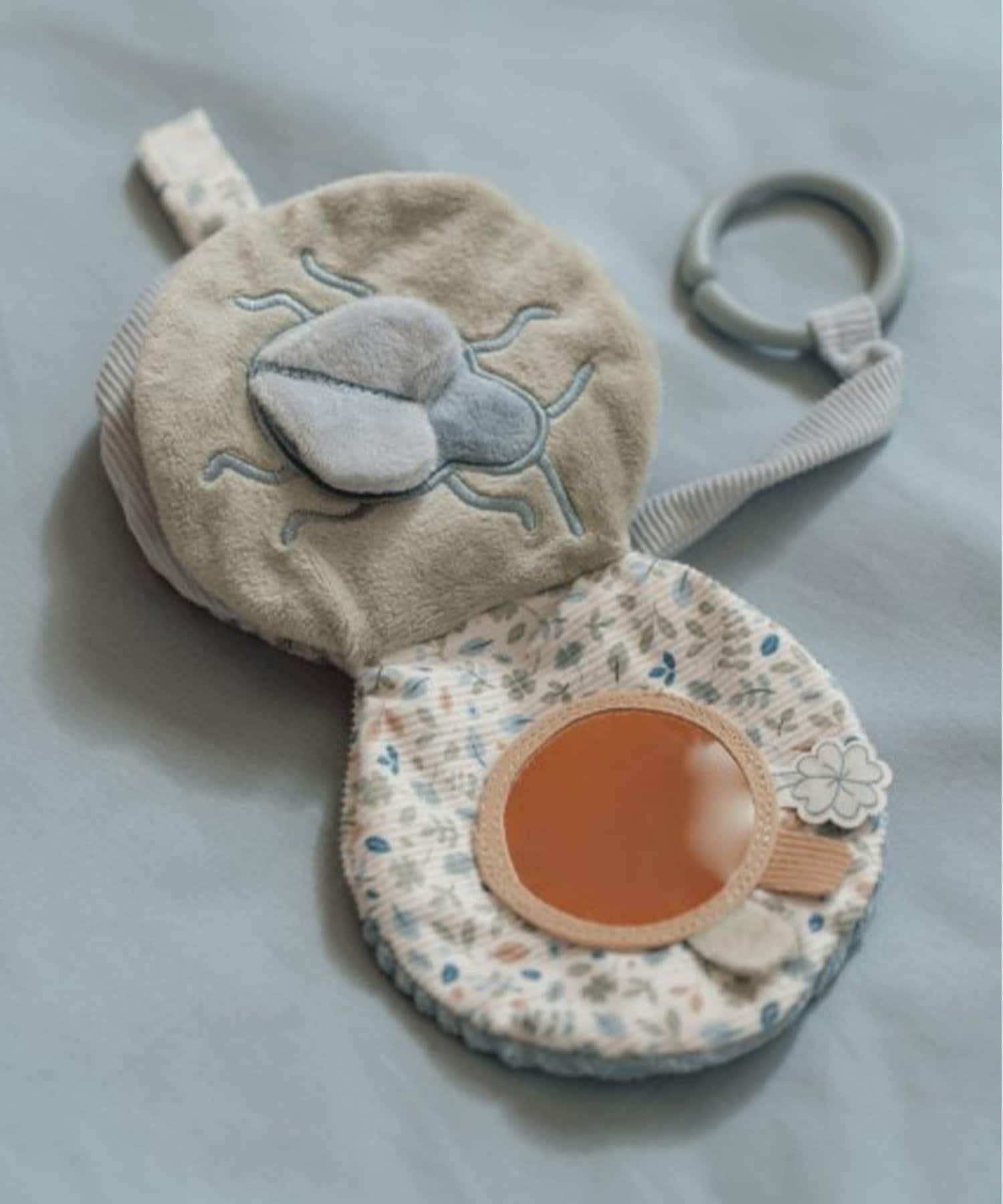 書中有有趣的標籤、皺巴巴的質地和聲音,可以刺激孩子的感官。書中還配有一面鏡子和一個柔軟的米菲,供孩子自我探索。