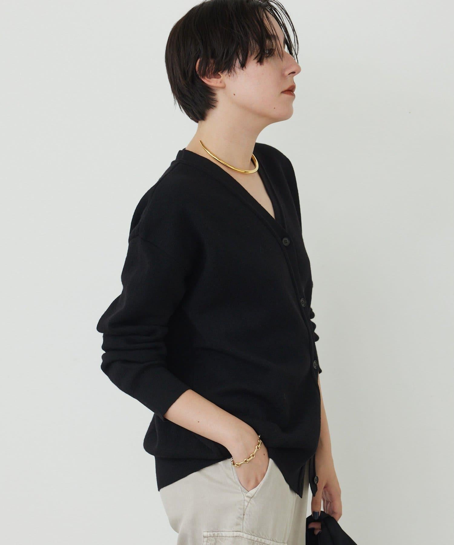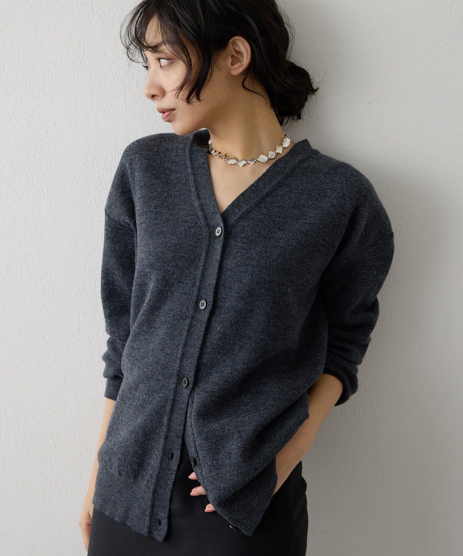 針織開衫採用米蘭羅紋針織,面料手感結實。