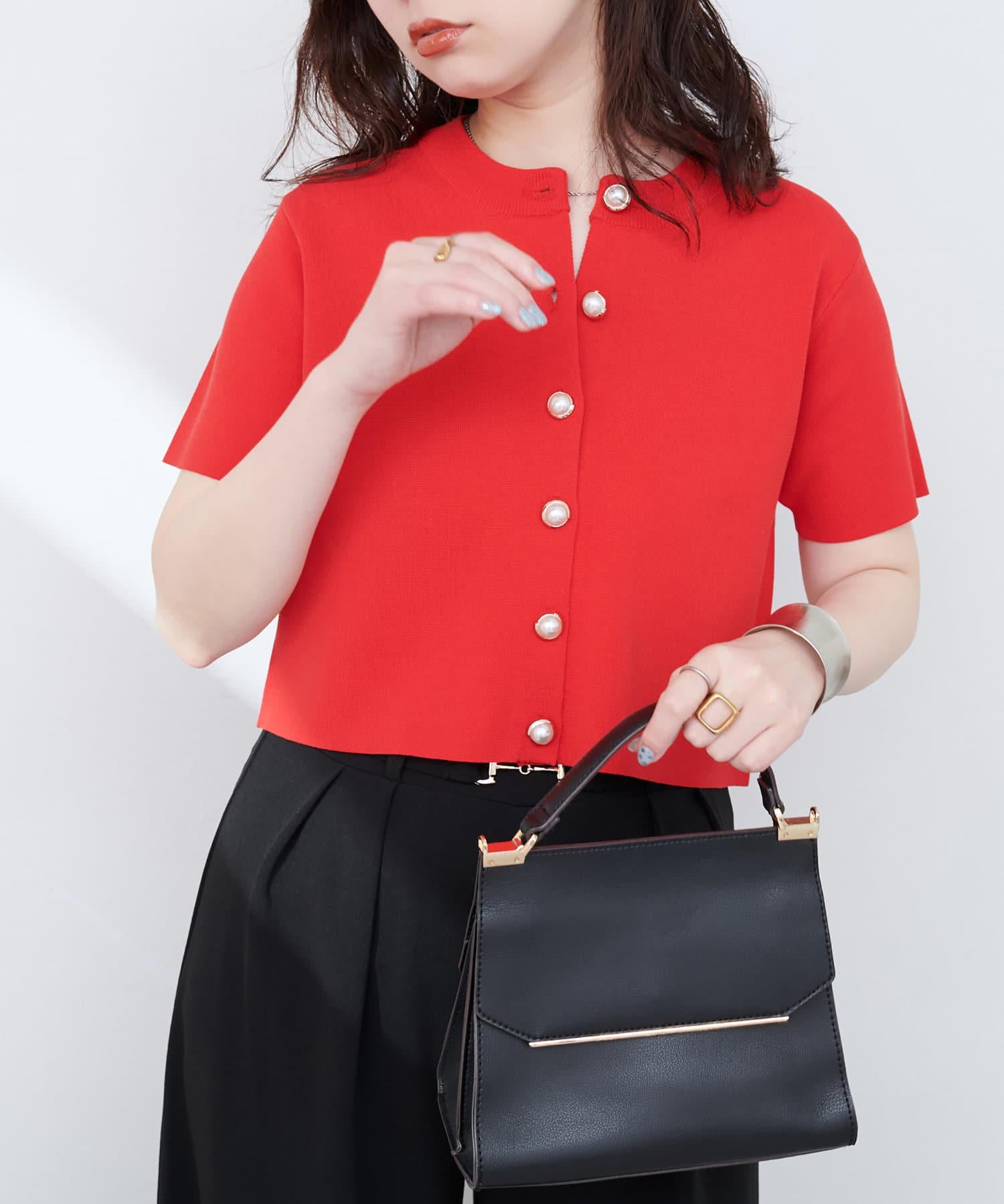 米蘭針織設計紐扣短袖開衫