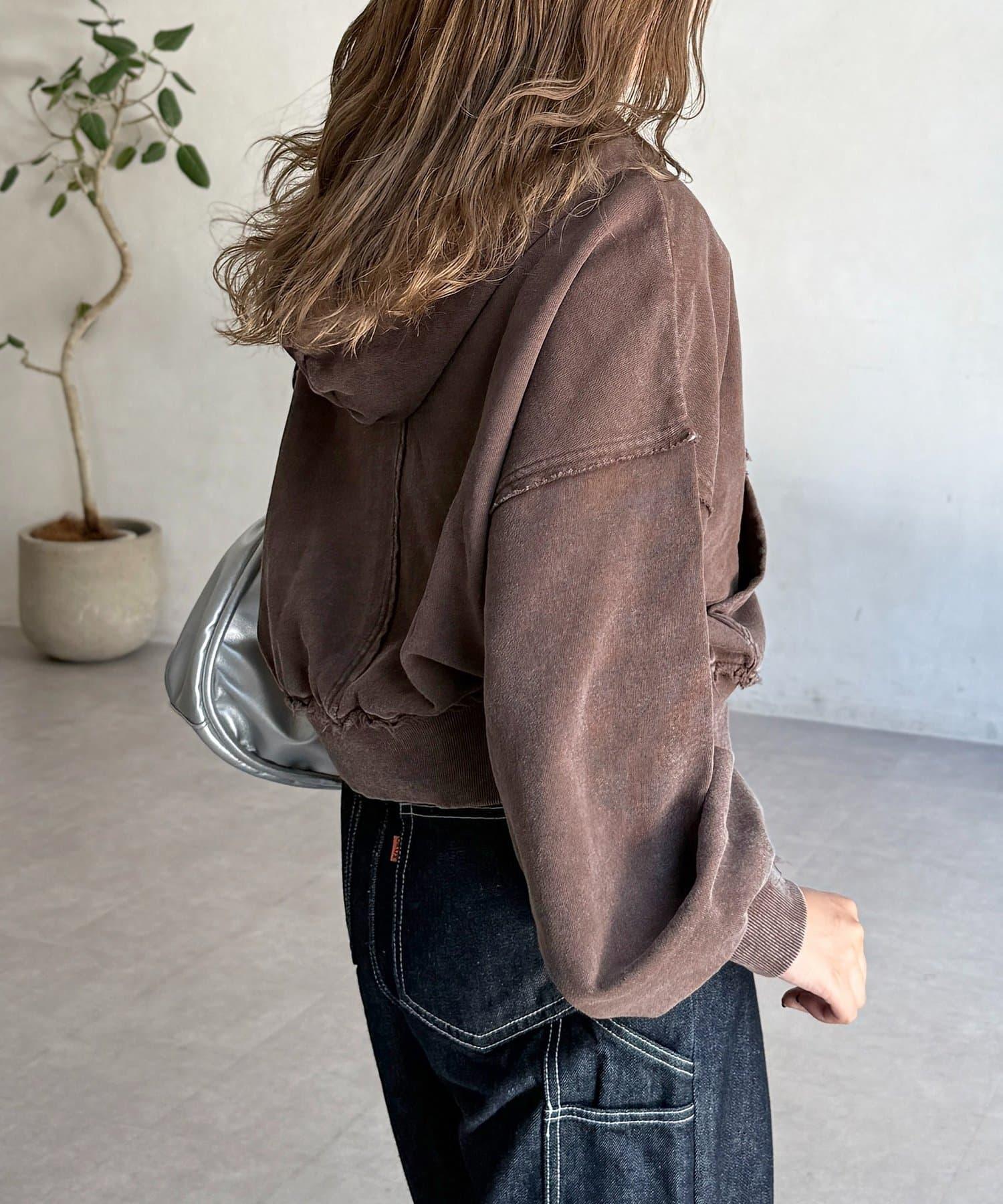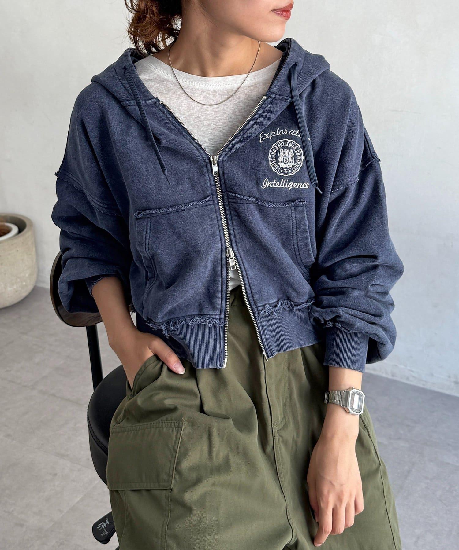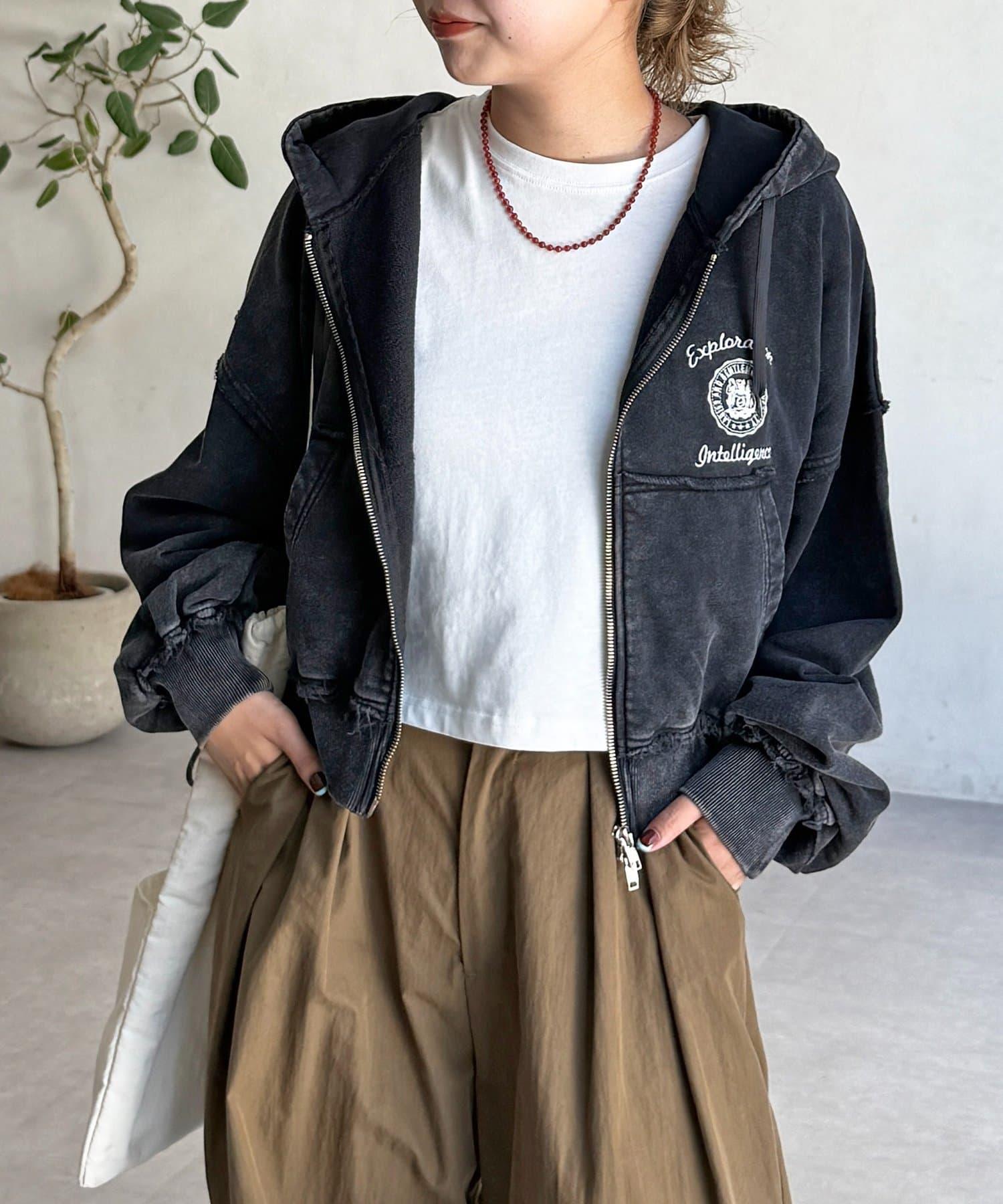 短款拉鍊連帽衫具有復古的外觀和質感!