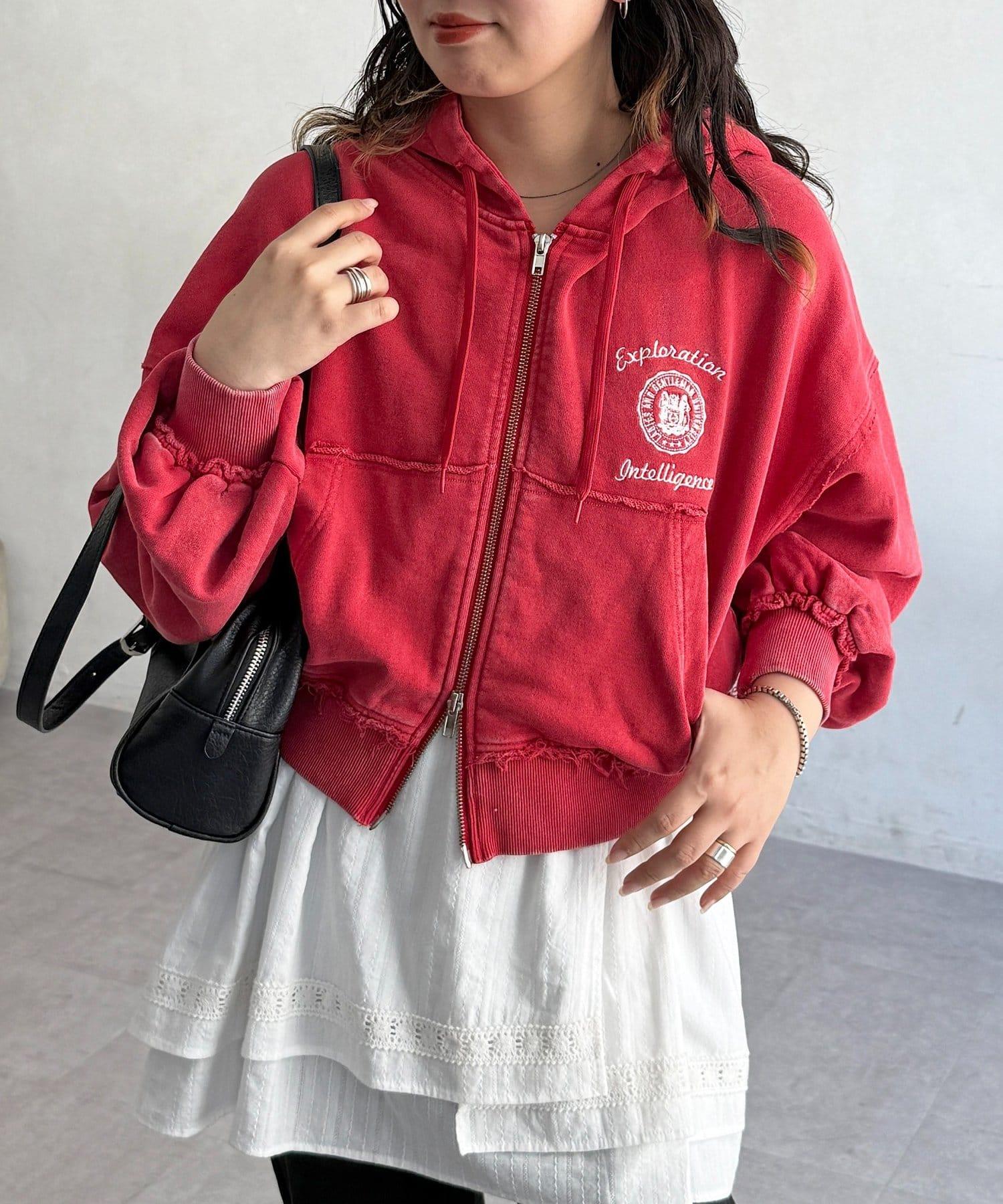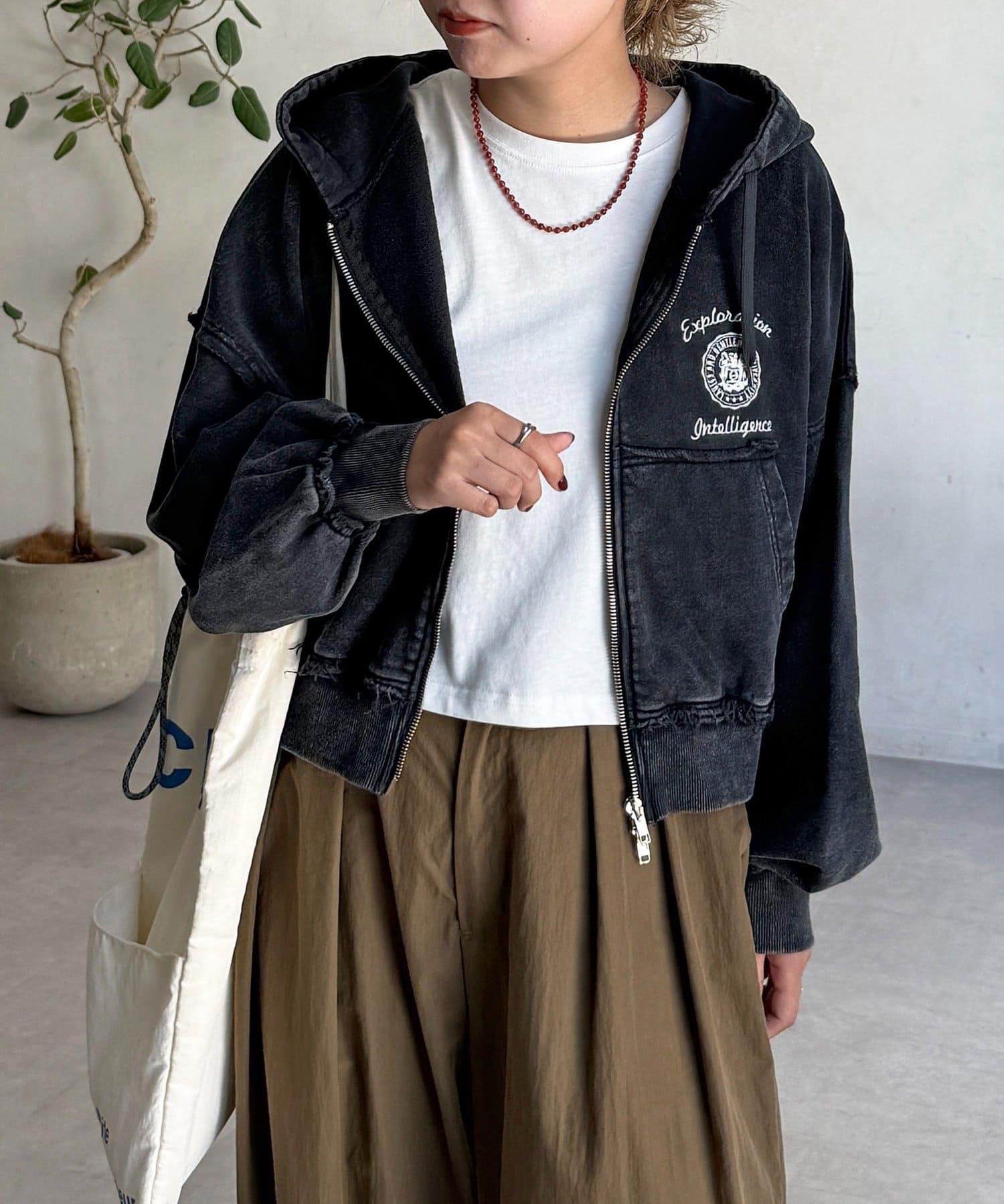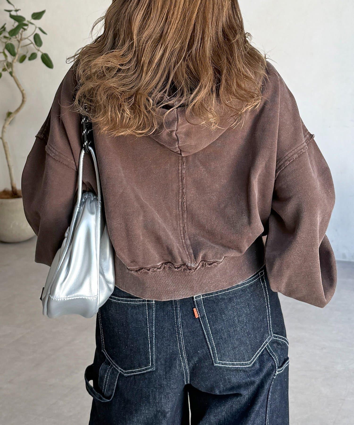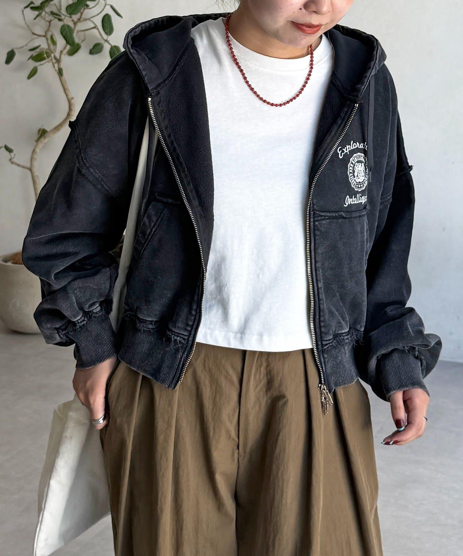 短款拉鍊連帽衫具有復古的外觀和質感!