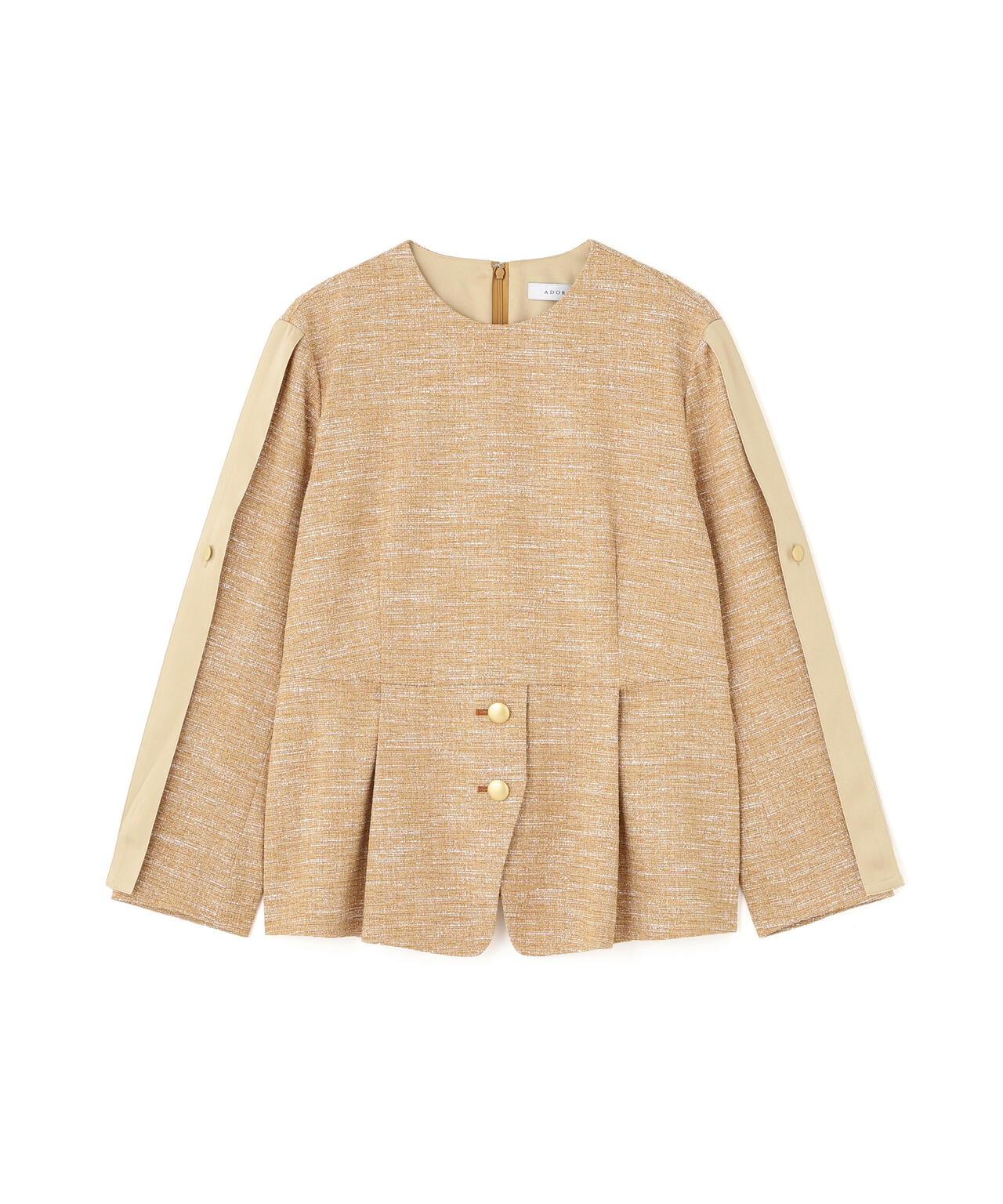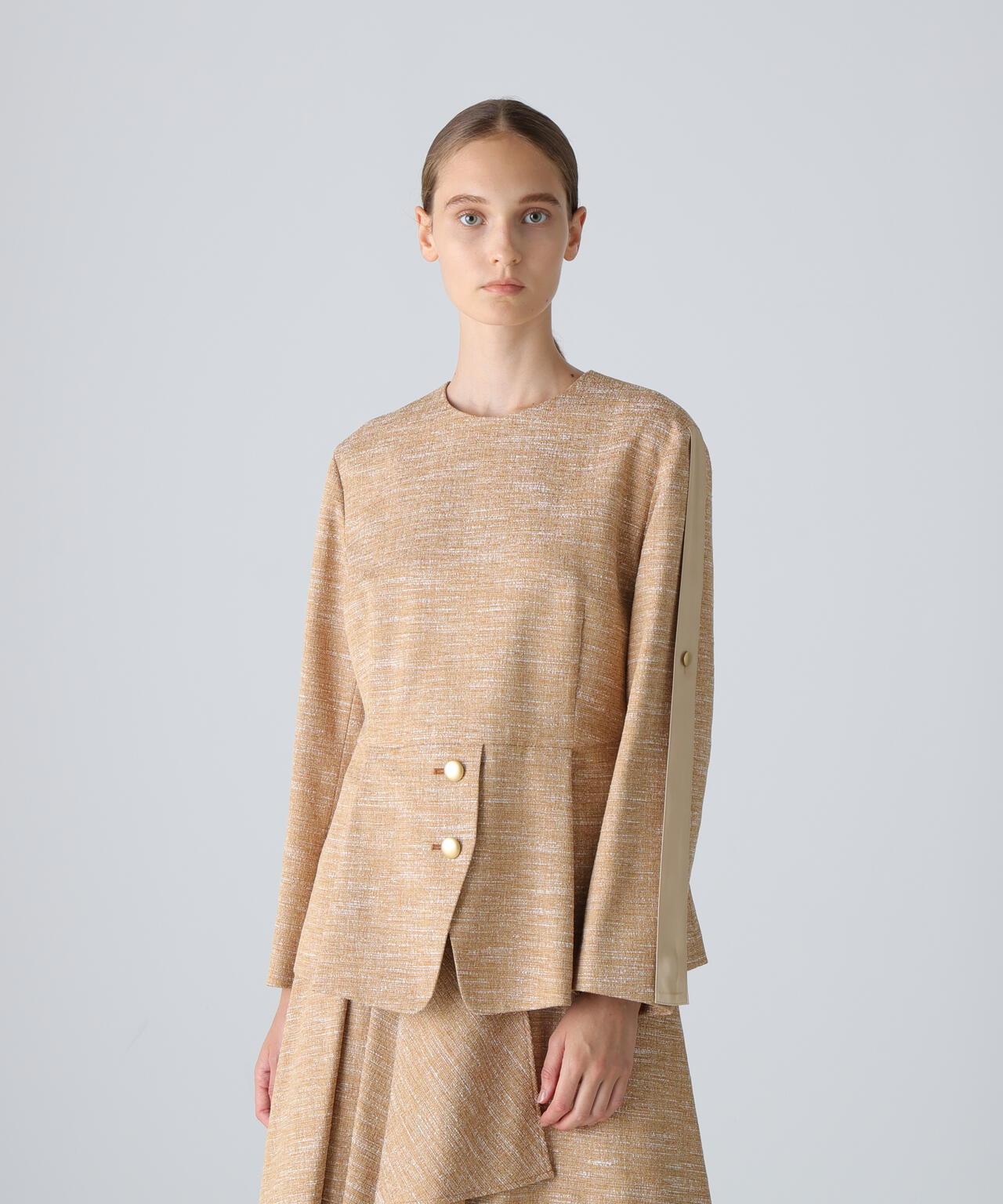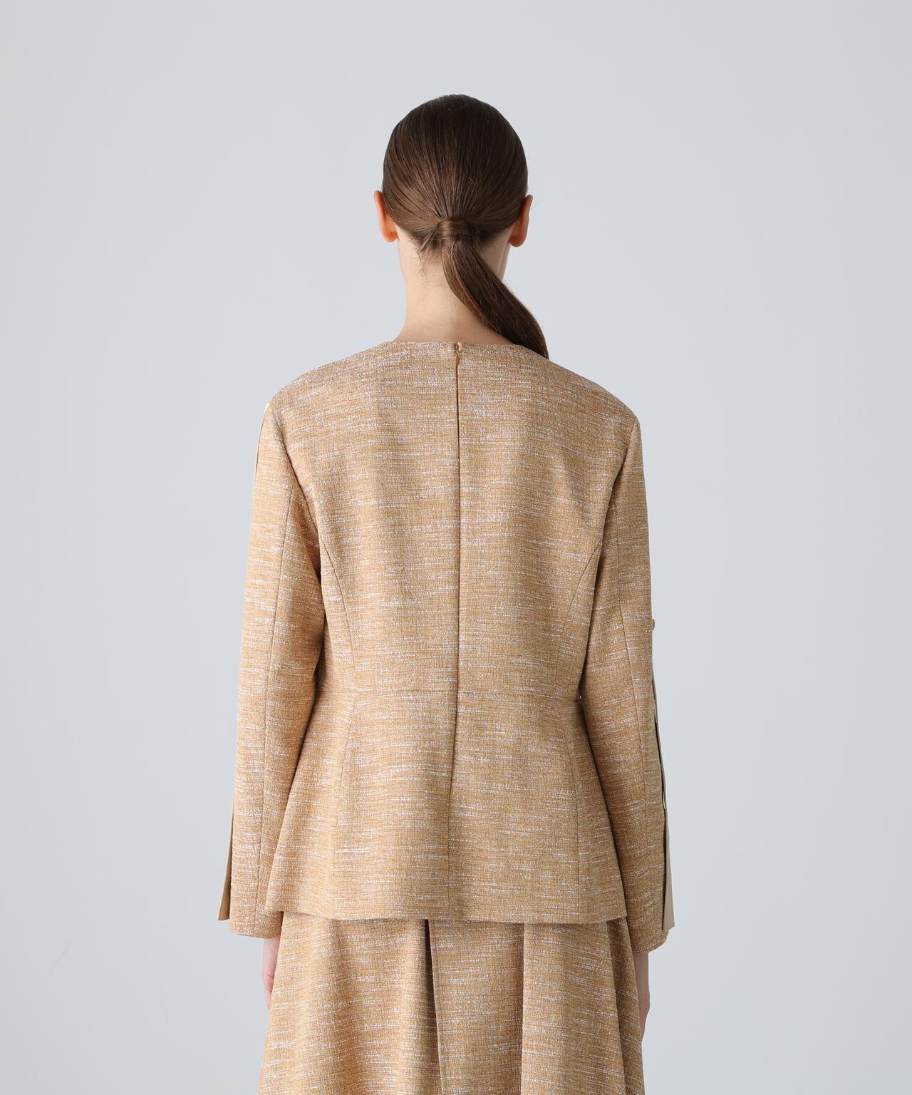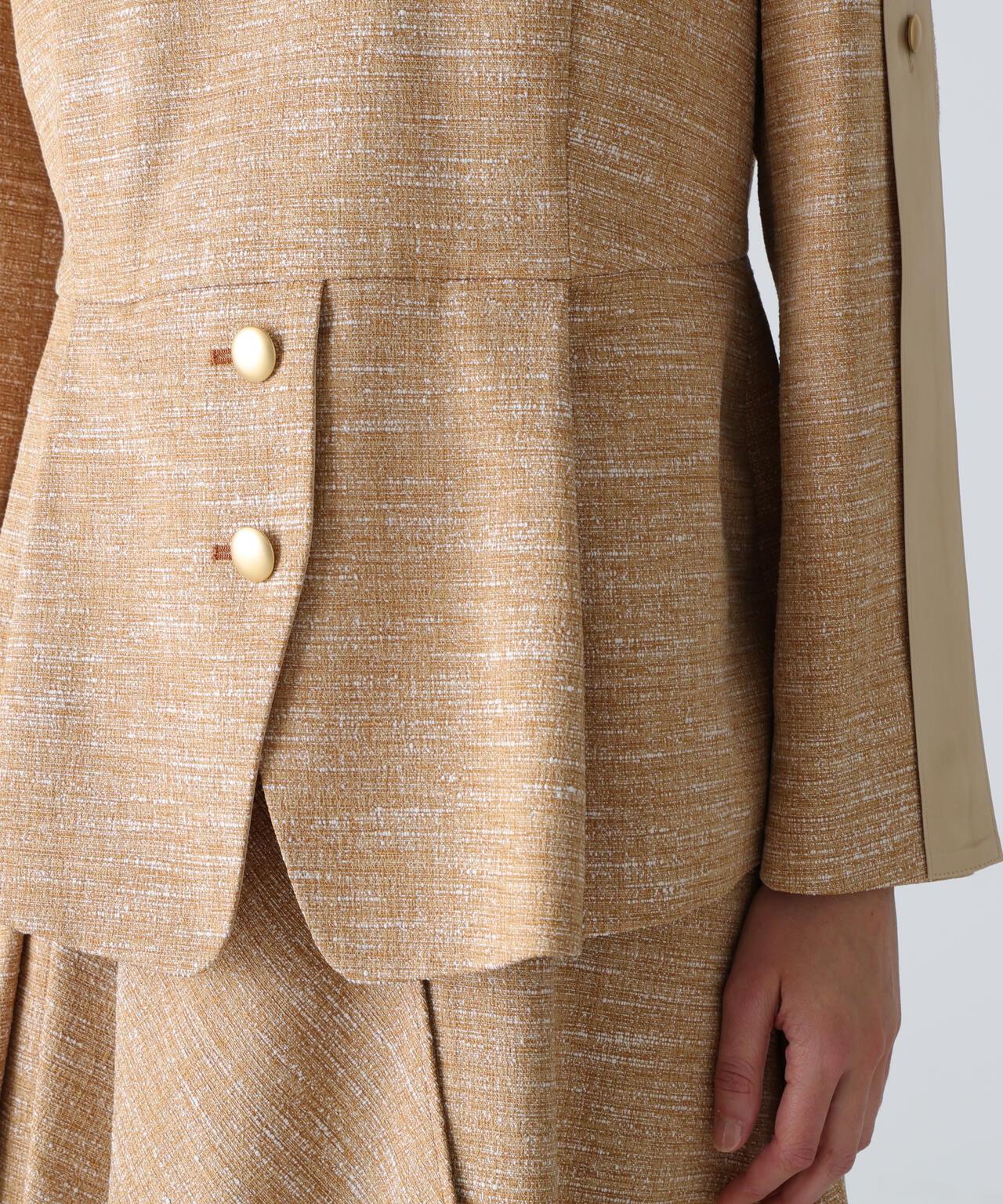 淺色斜紋軟呢蓬蓬裙 白色斜紋軟呢蓬蓬裙。蓬蓬裙的輪廓略顯圓潤,不失甜美。袖子上有緞帶,並用紐扣扣緊。建議搭配同款裙子(貨號:531-5220109)作為套裙。Tweedy 面料由滌綸短纖紗線和棉花輕盈編織而成,未使用羊毛紡紗以降低面料厚度。