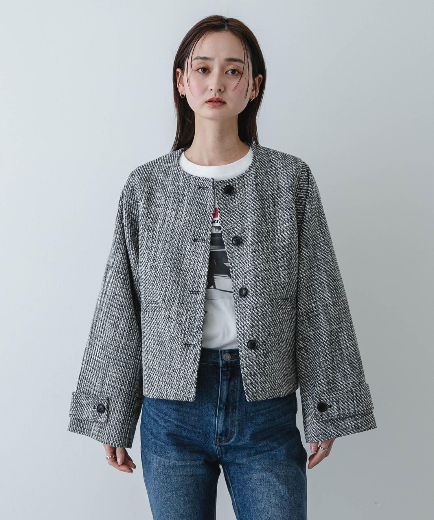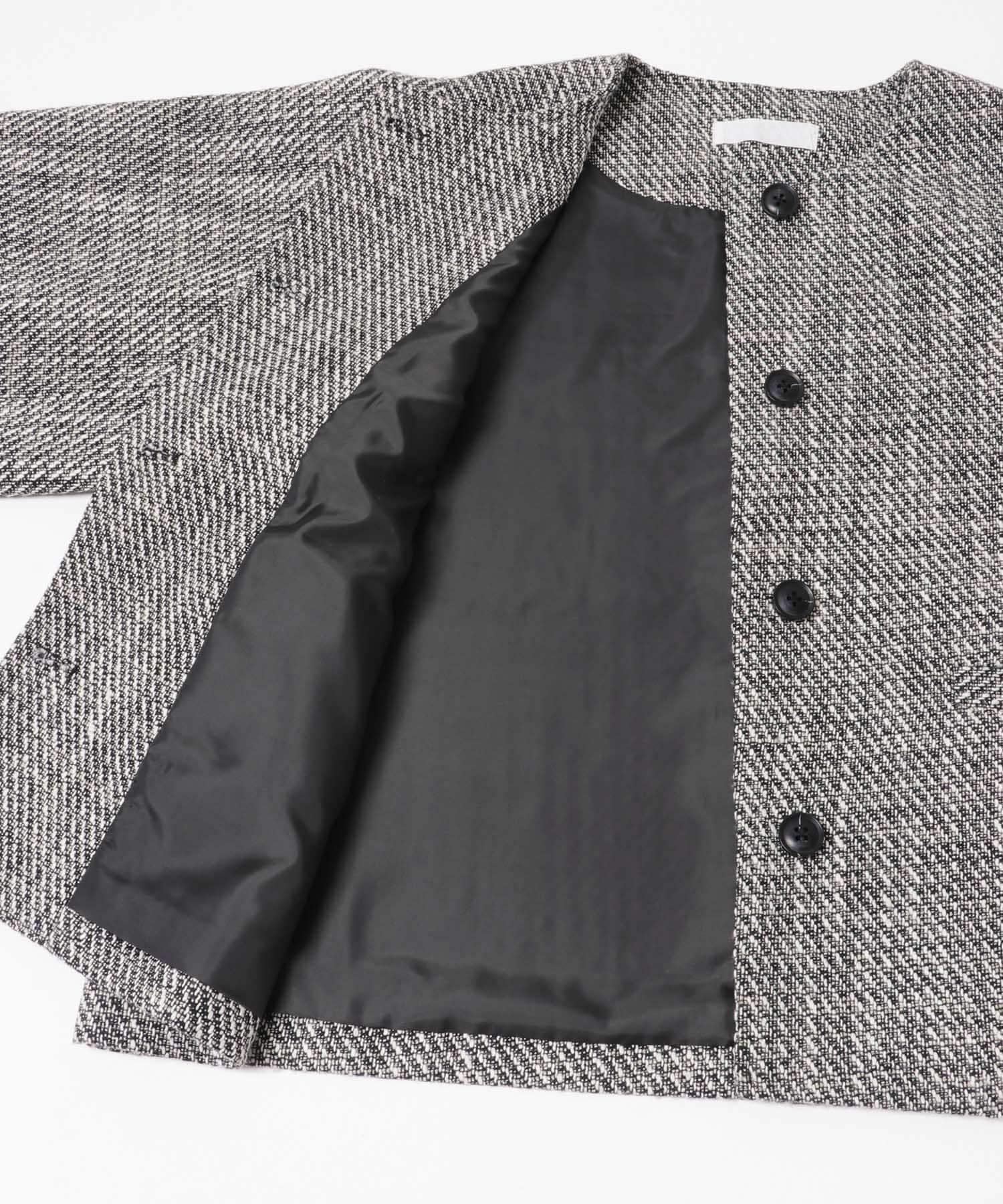 粗花呢無領短款夾克