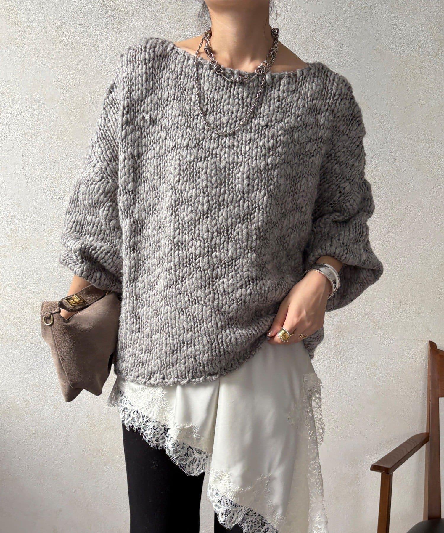 寬鬆的衣身和有體積感的袖子是營造寬鬆感的關鍵。此外,船形領為領口增添了女人味。