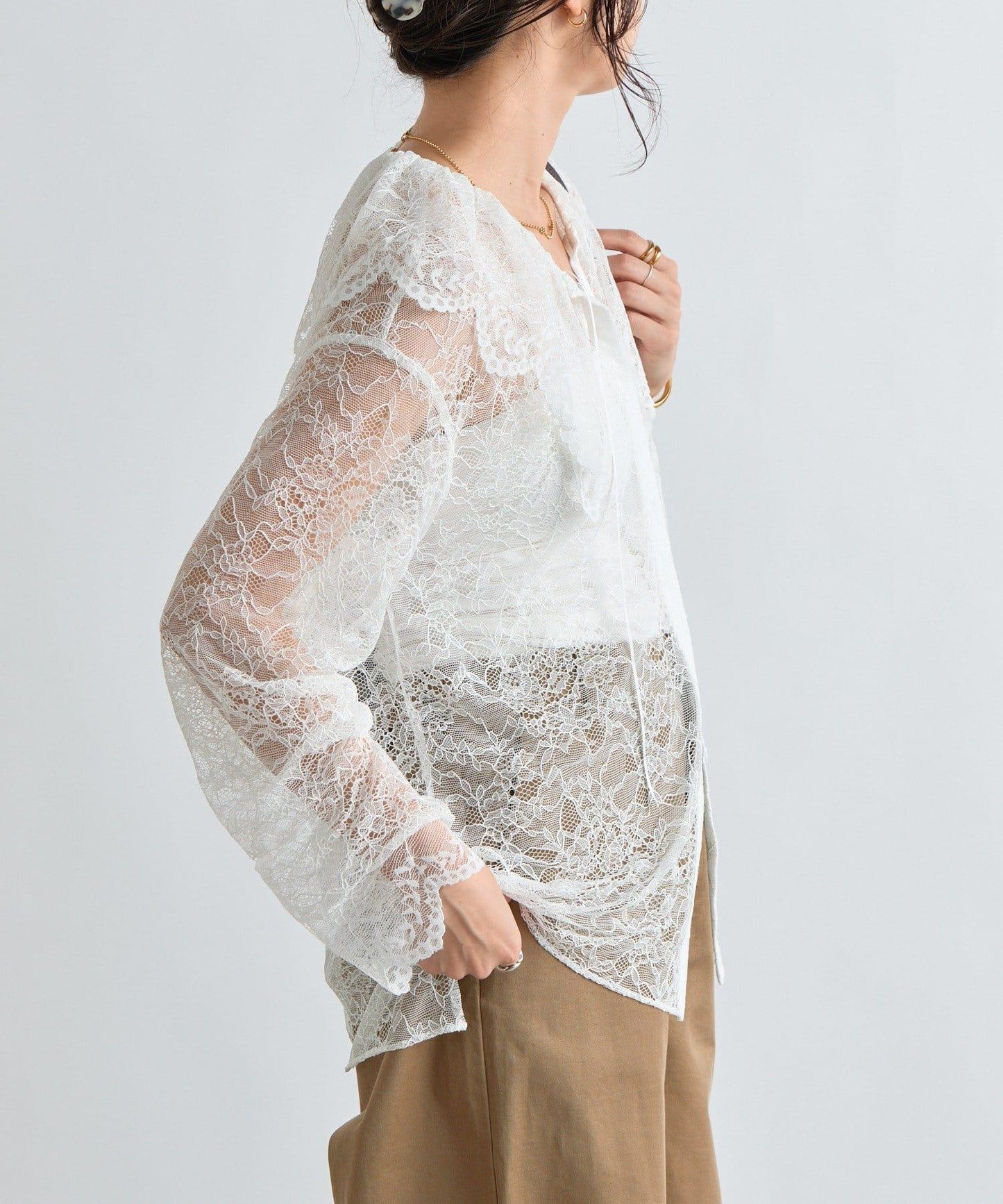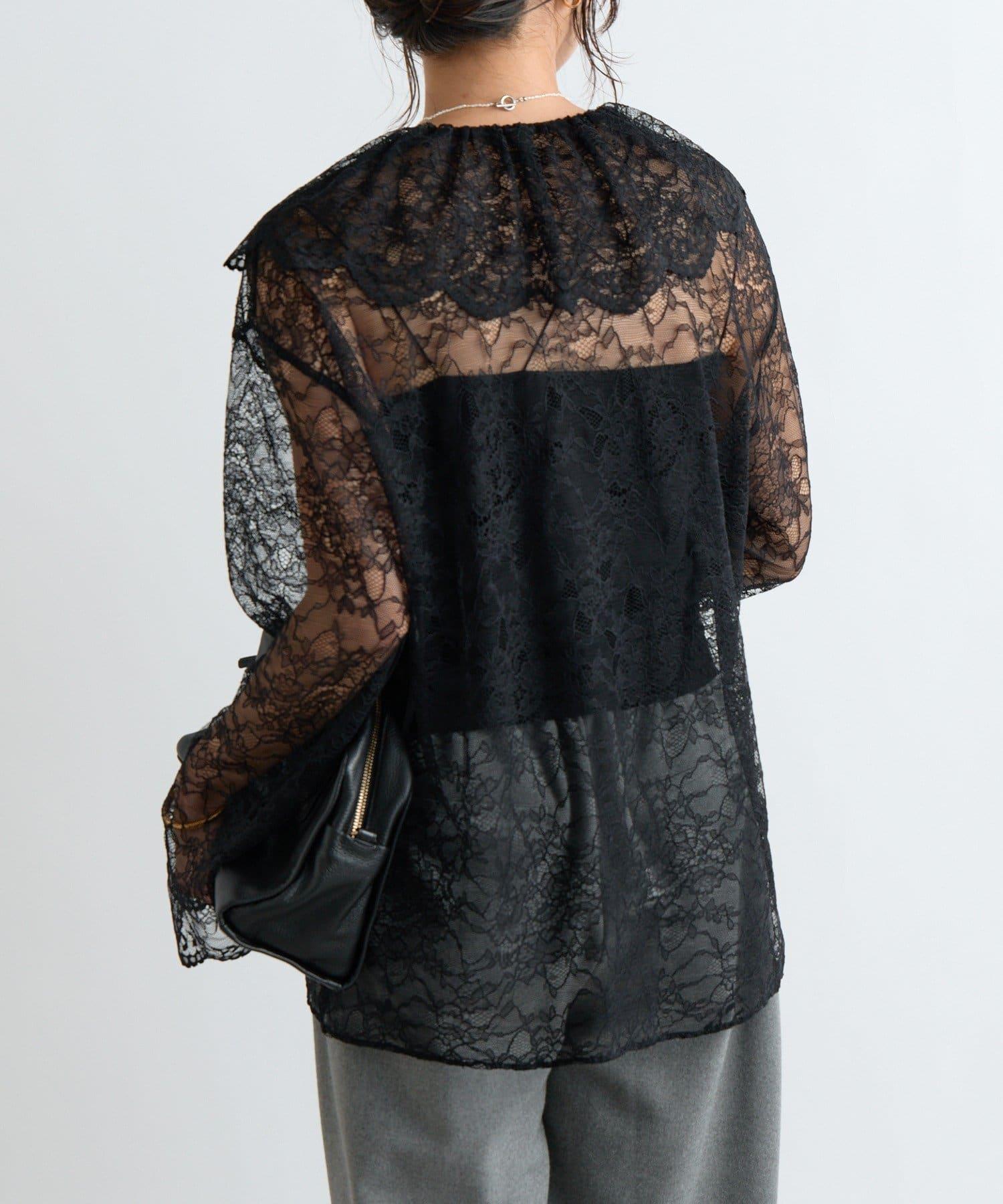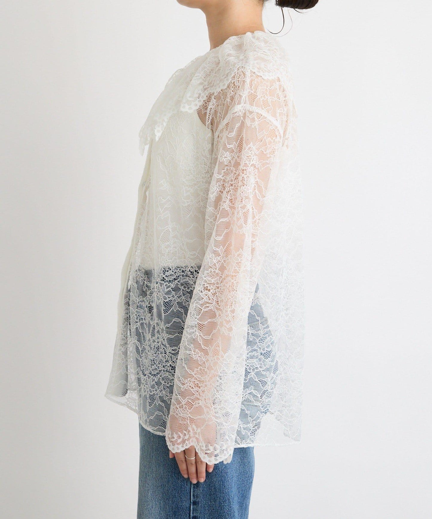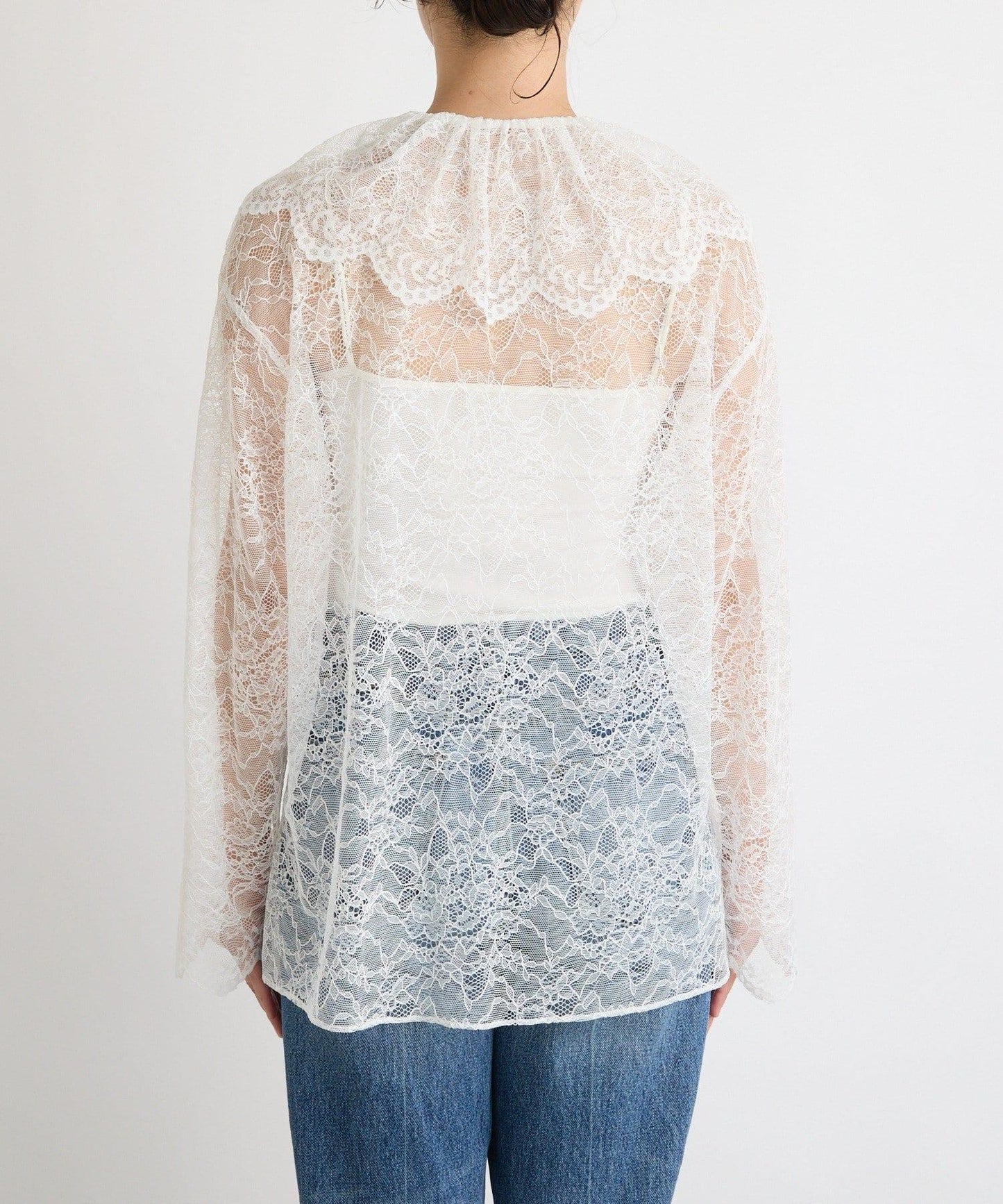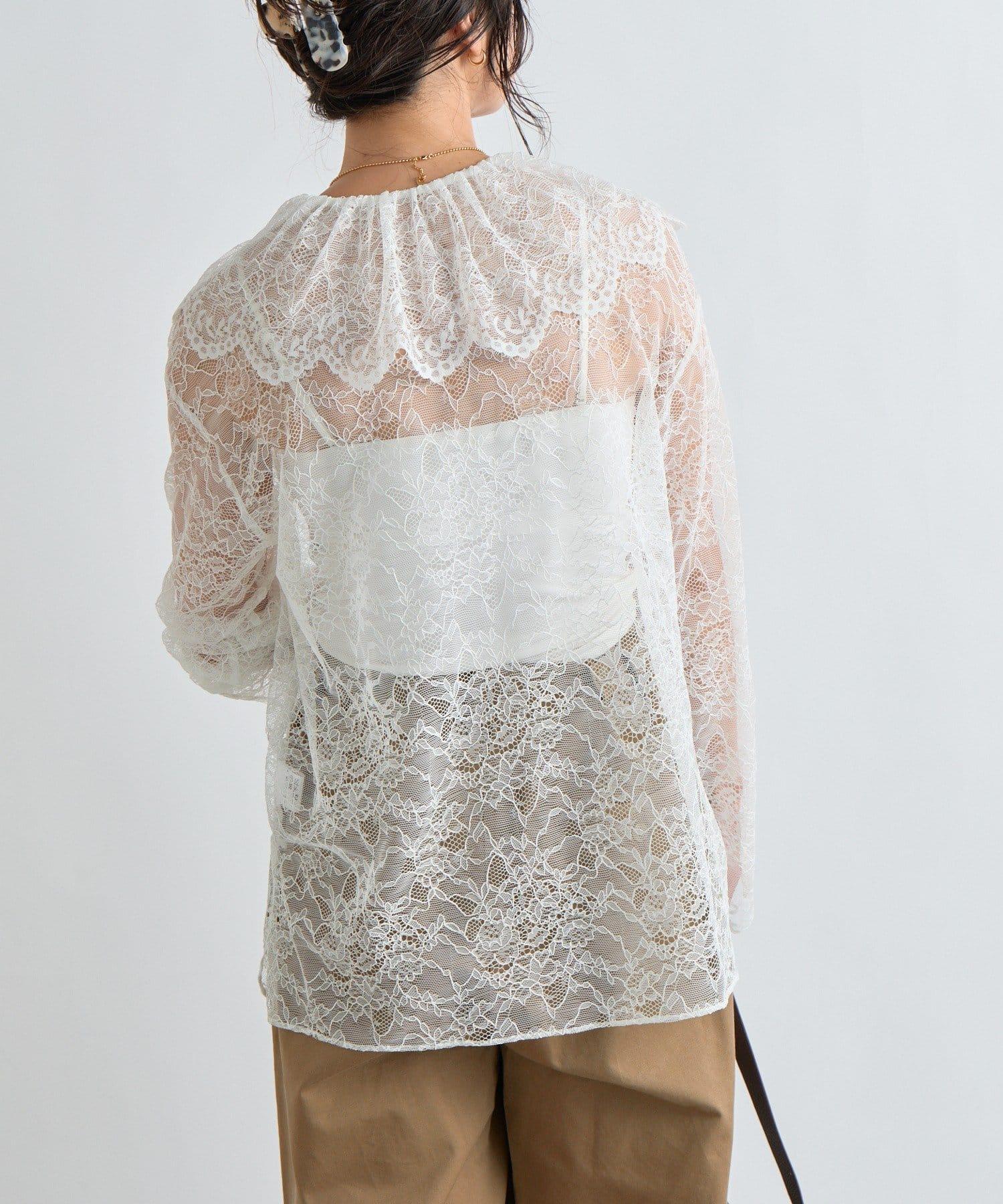 【精緻蕾絲點綴】荷葉邊領蕾絲襯衫