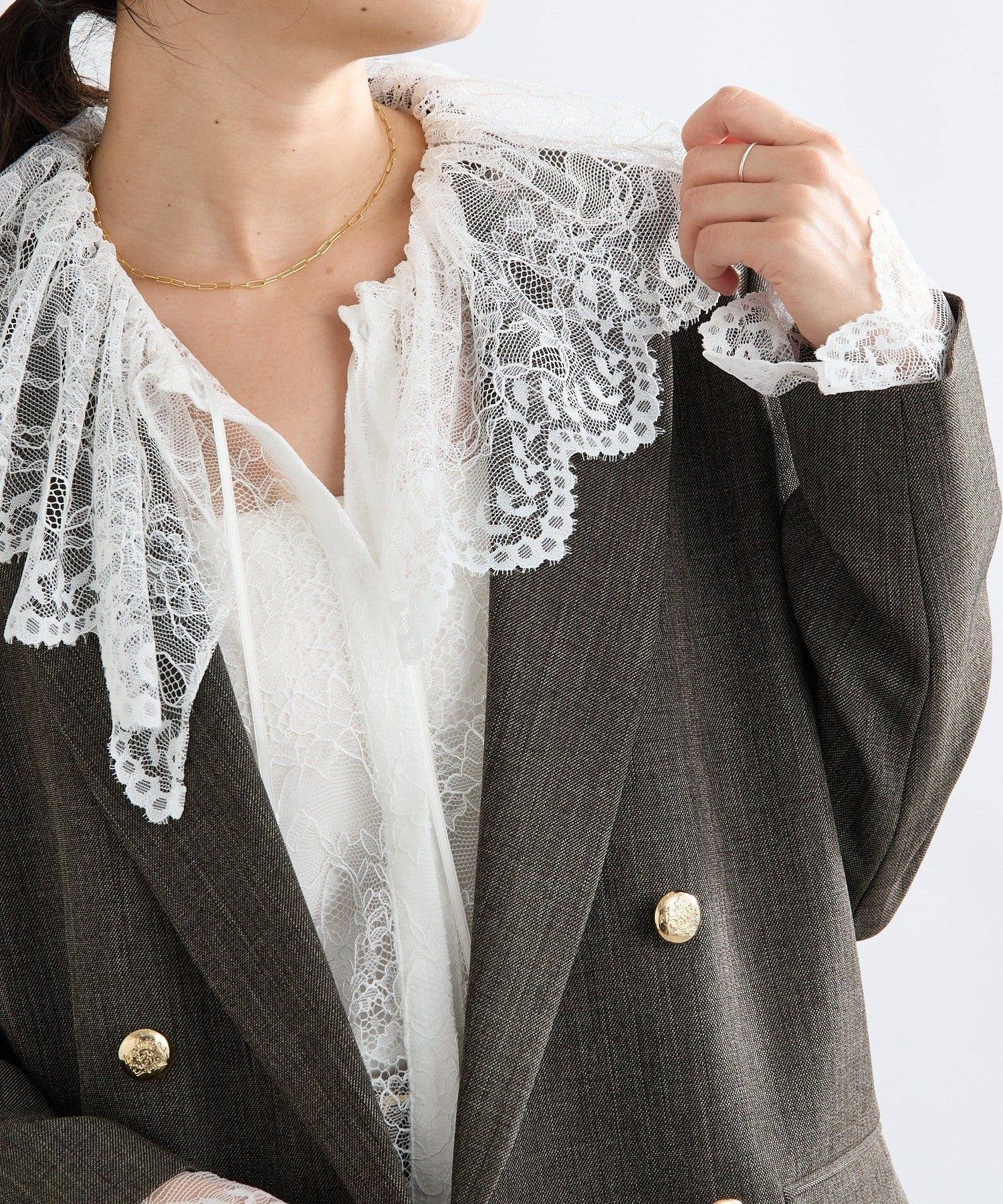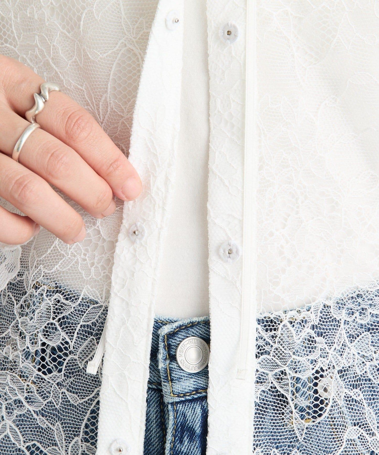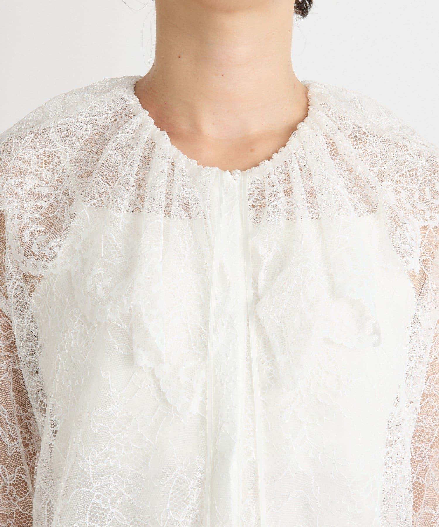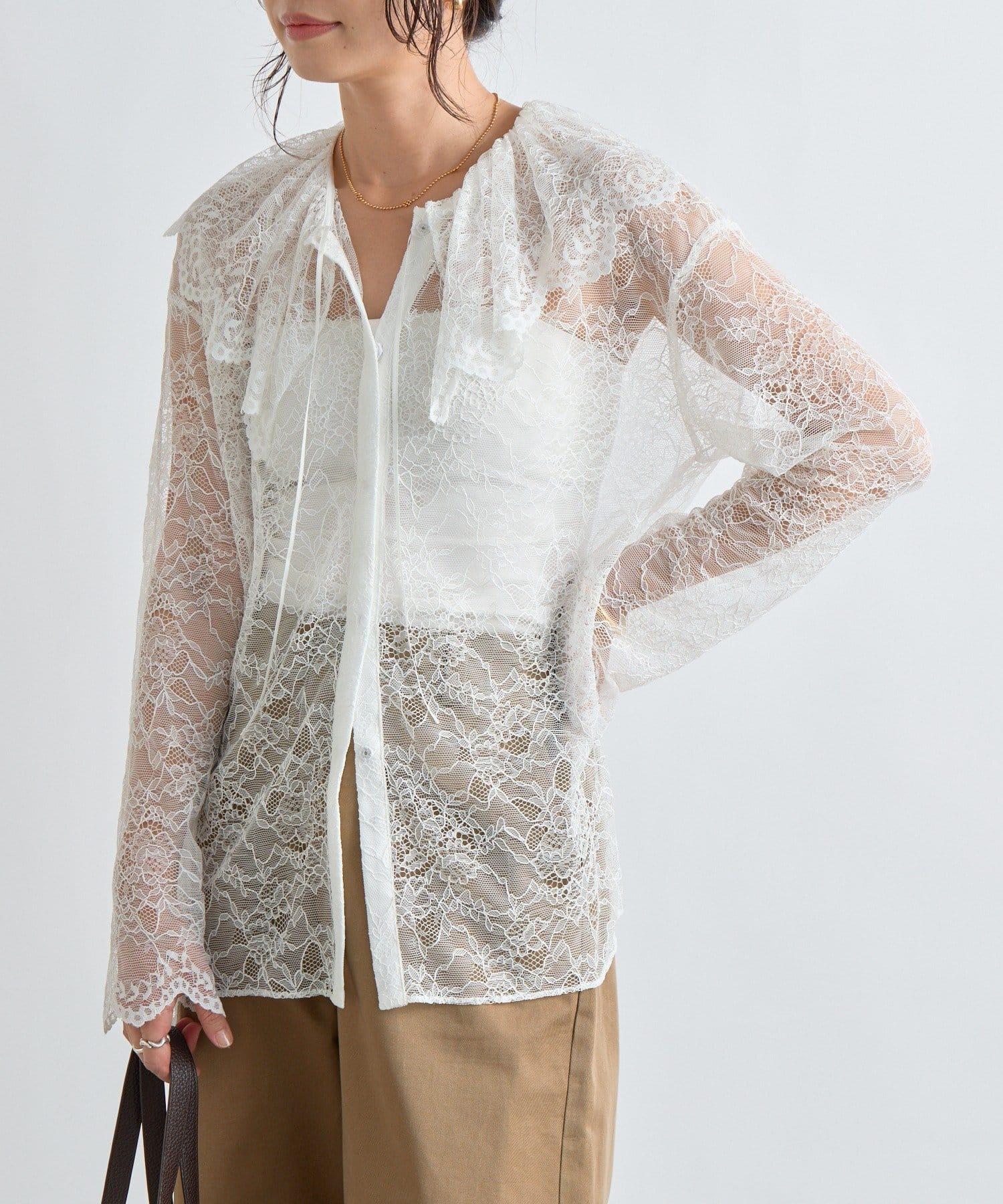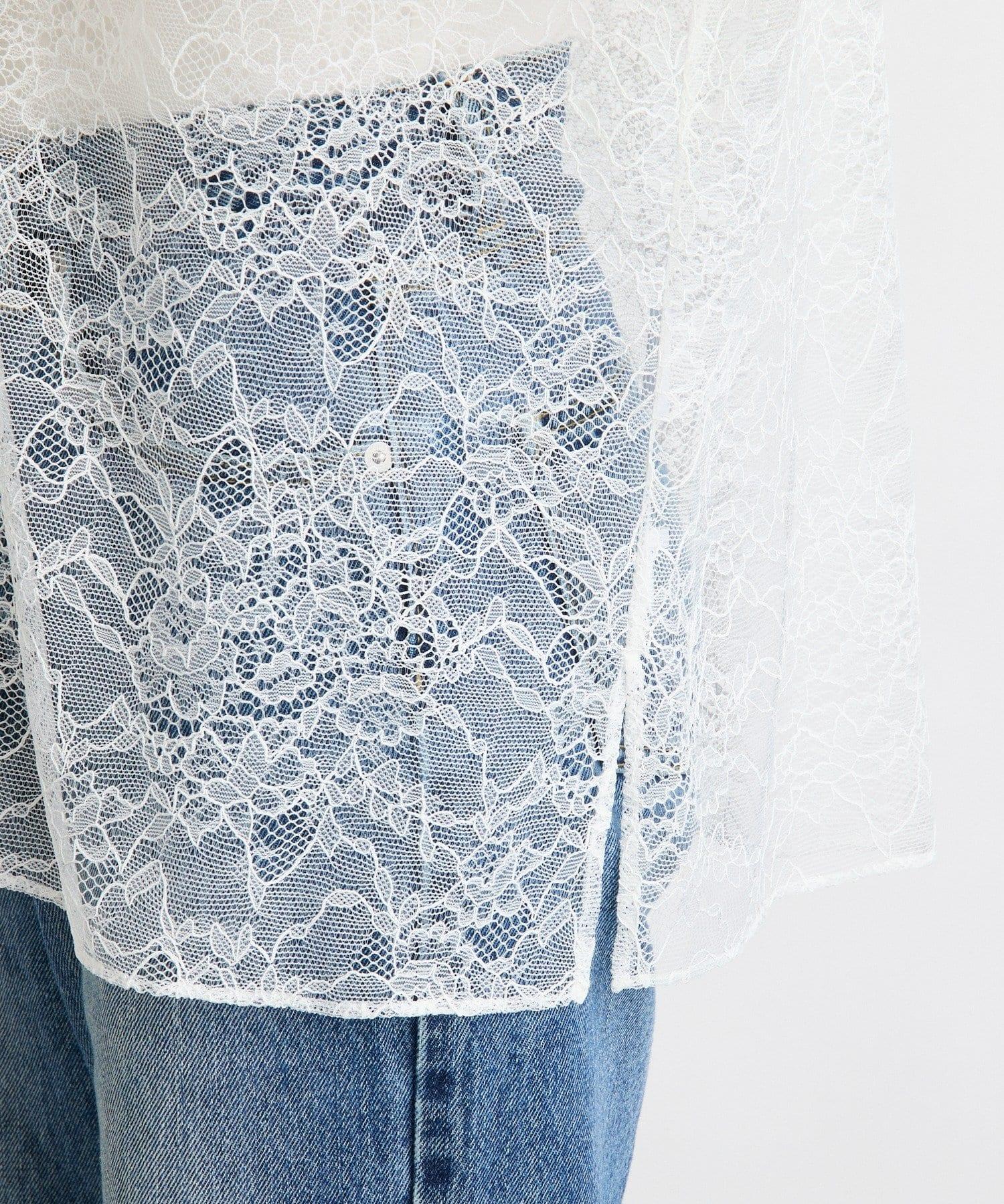 【精緻蕾絲點綴】荷葉邊領蕾絲襯衫