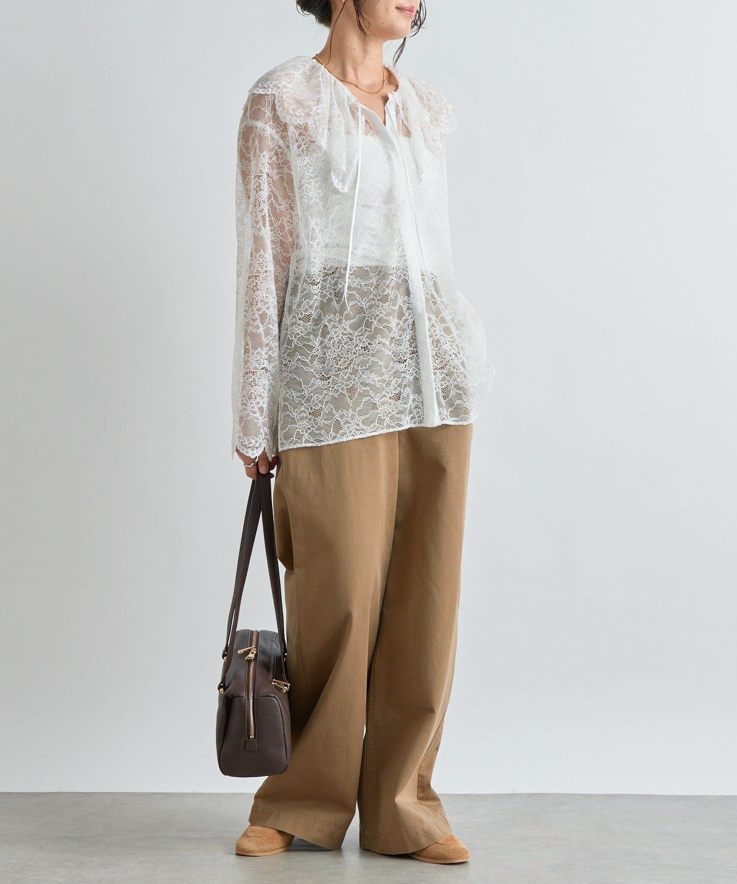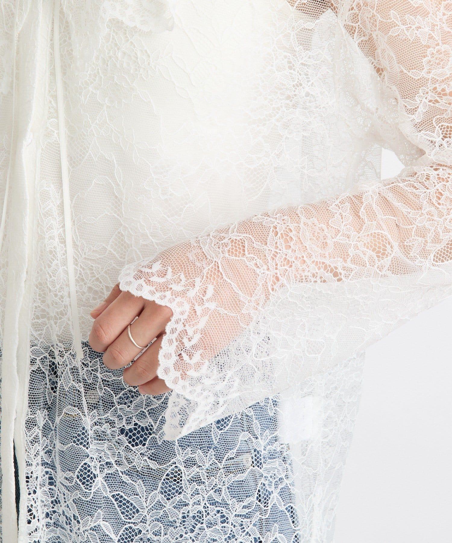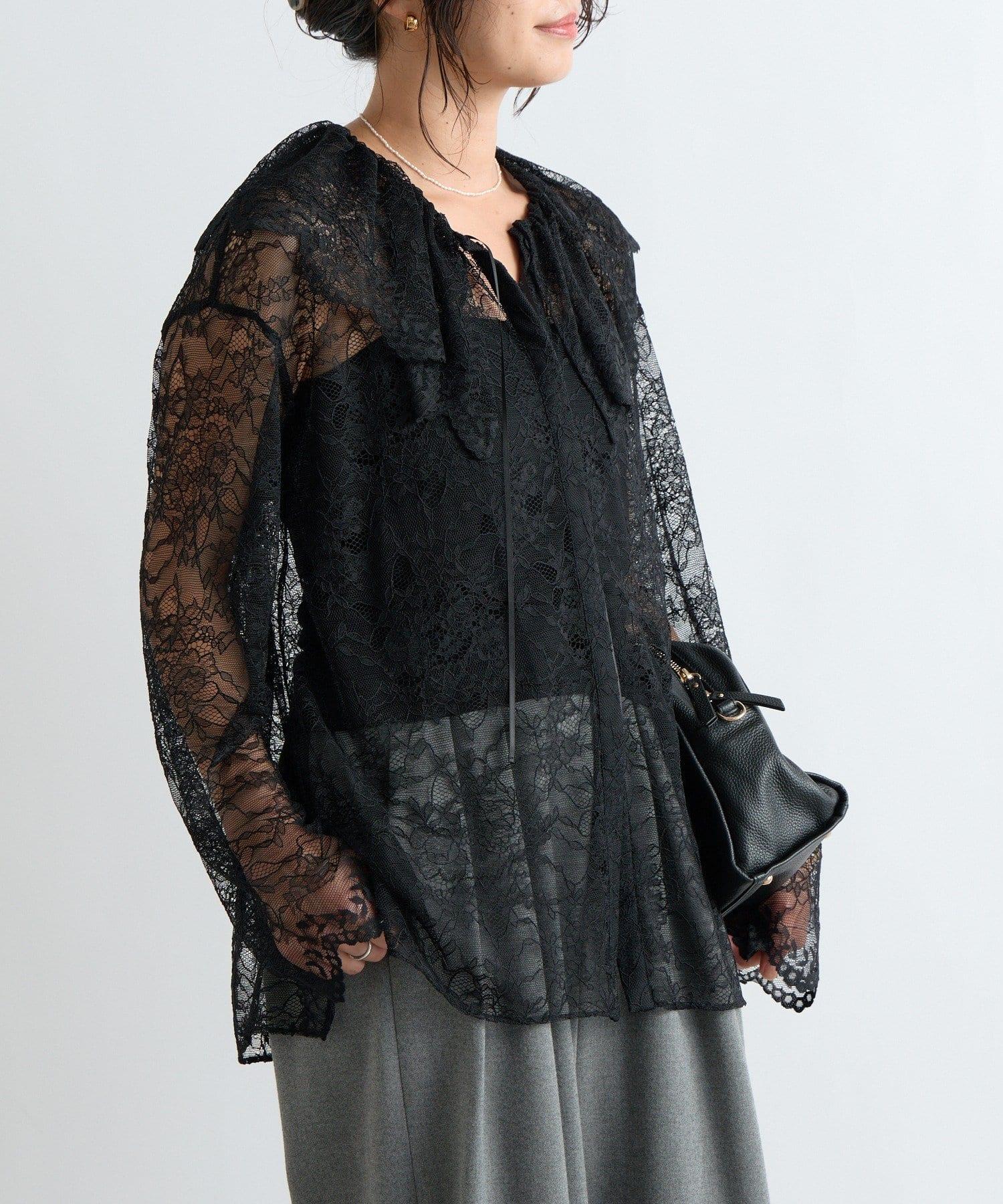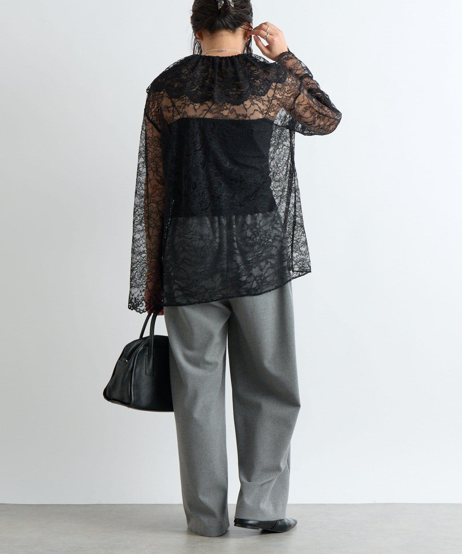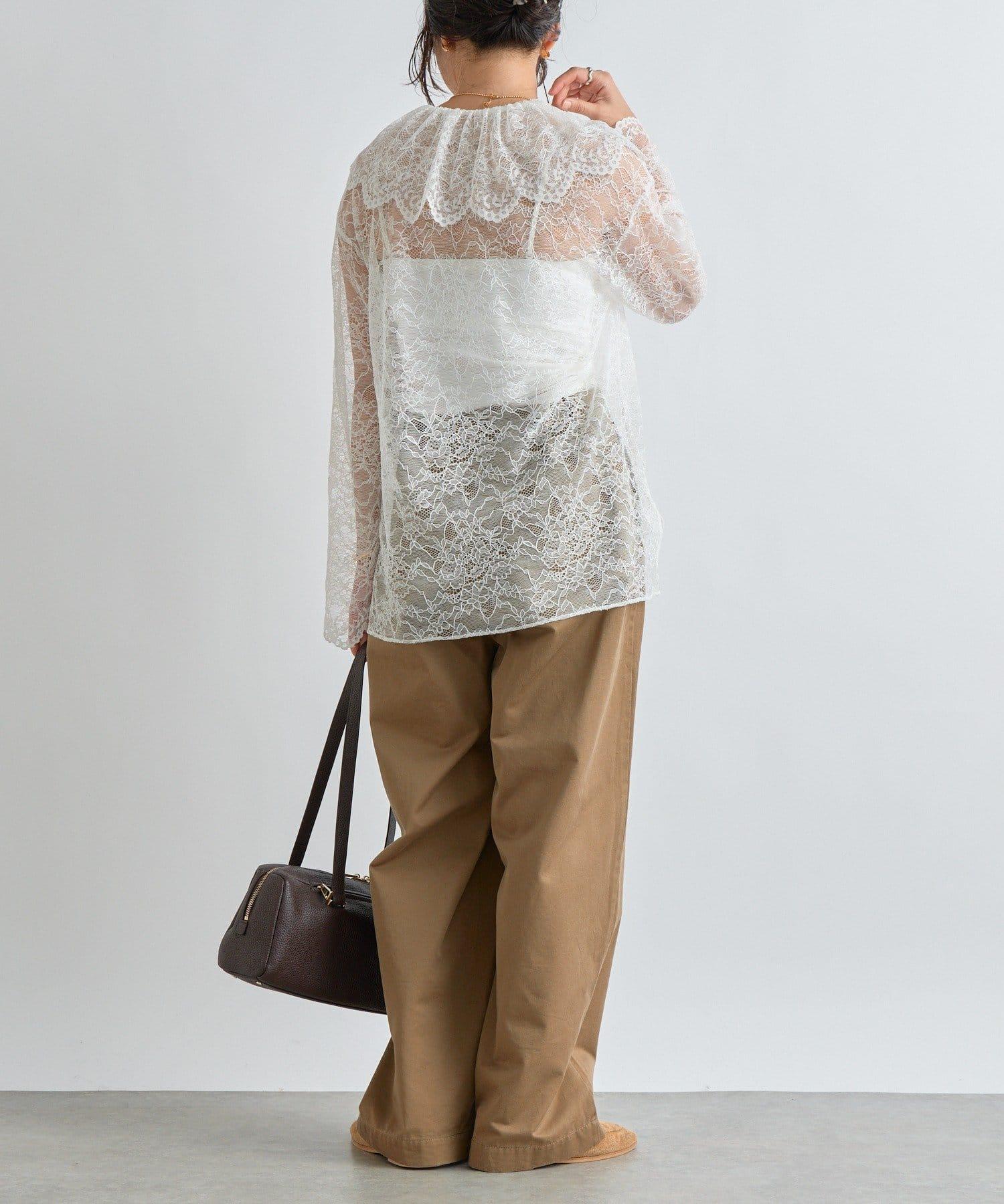 【精緻蕾絲點綴】荷葉邊領蕾絲襯衫
