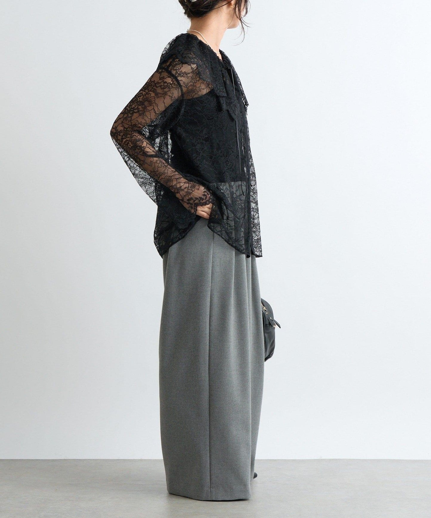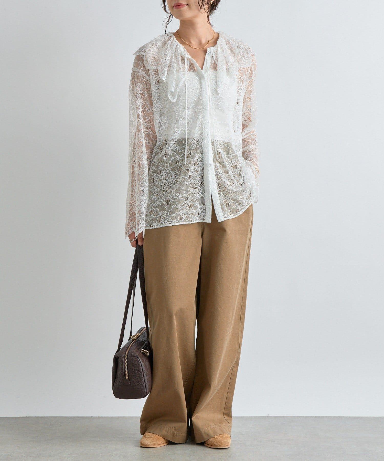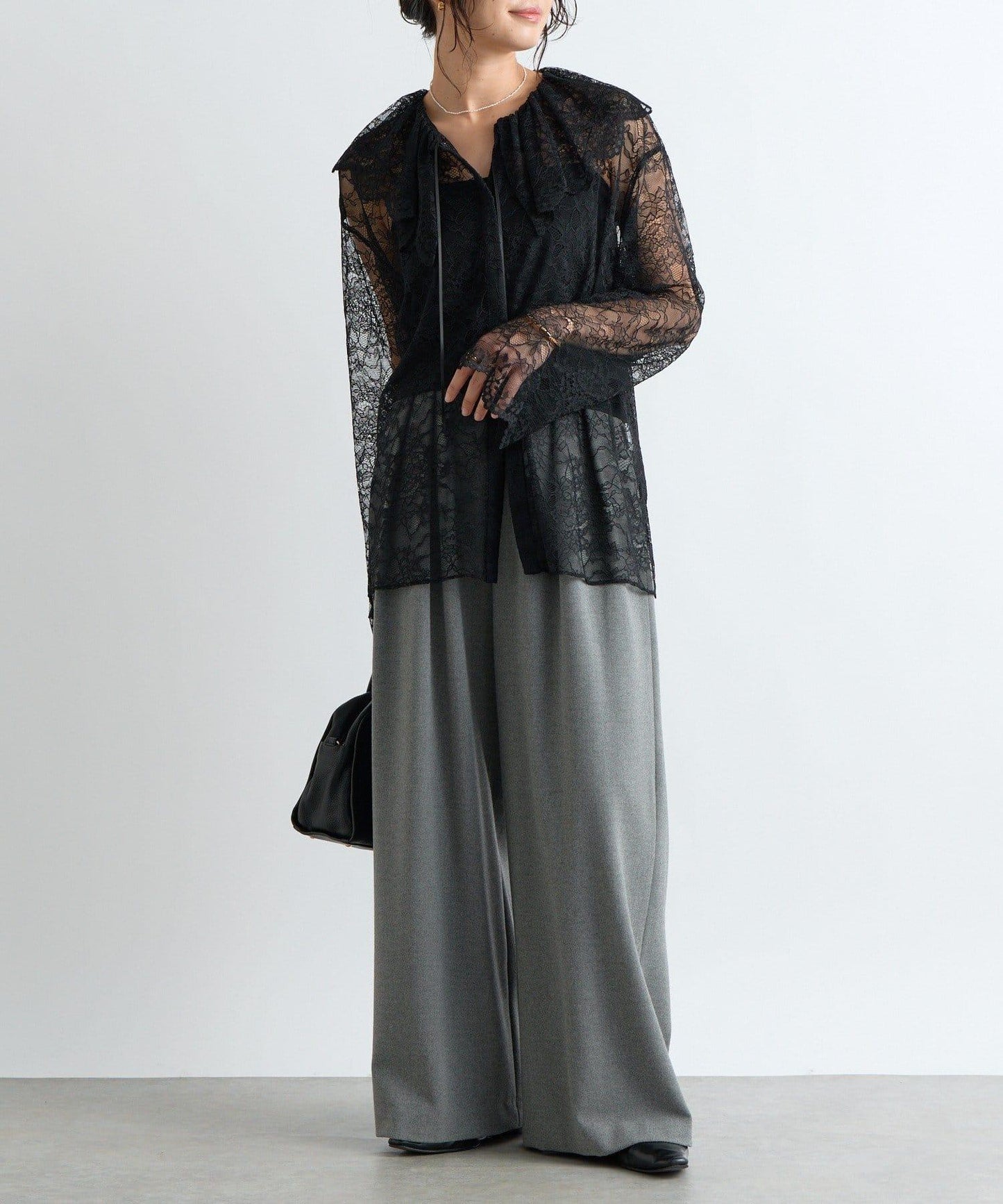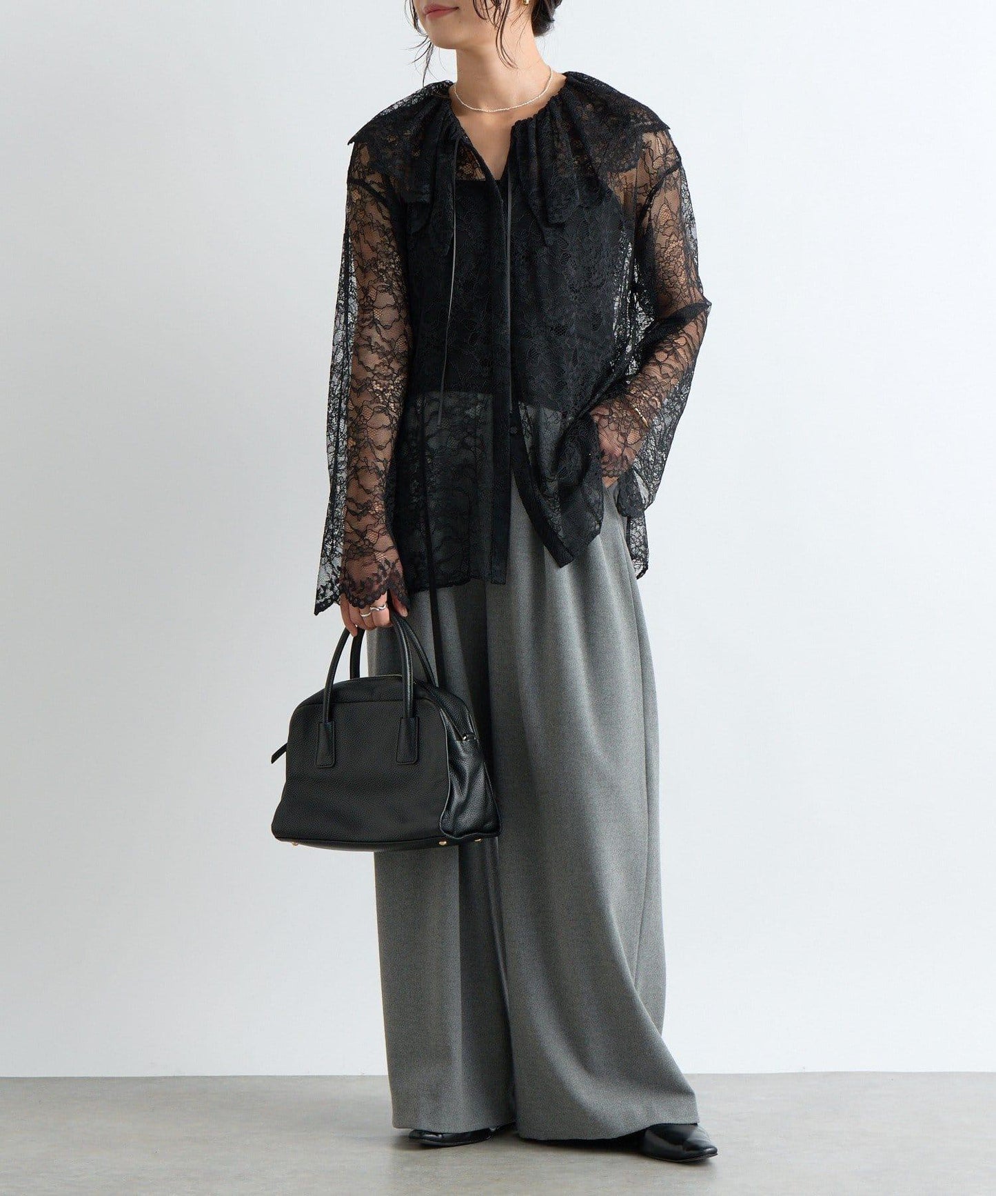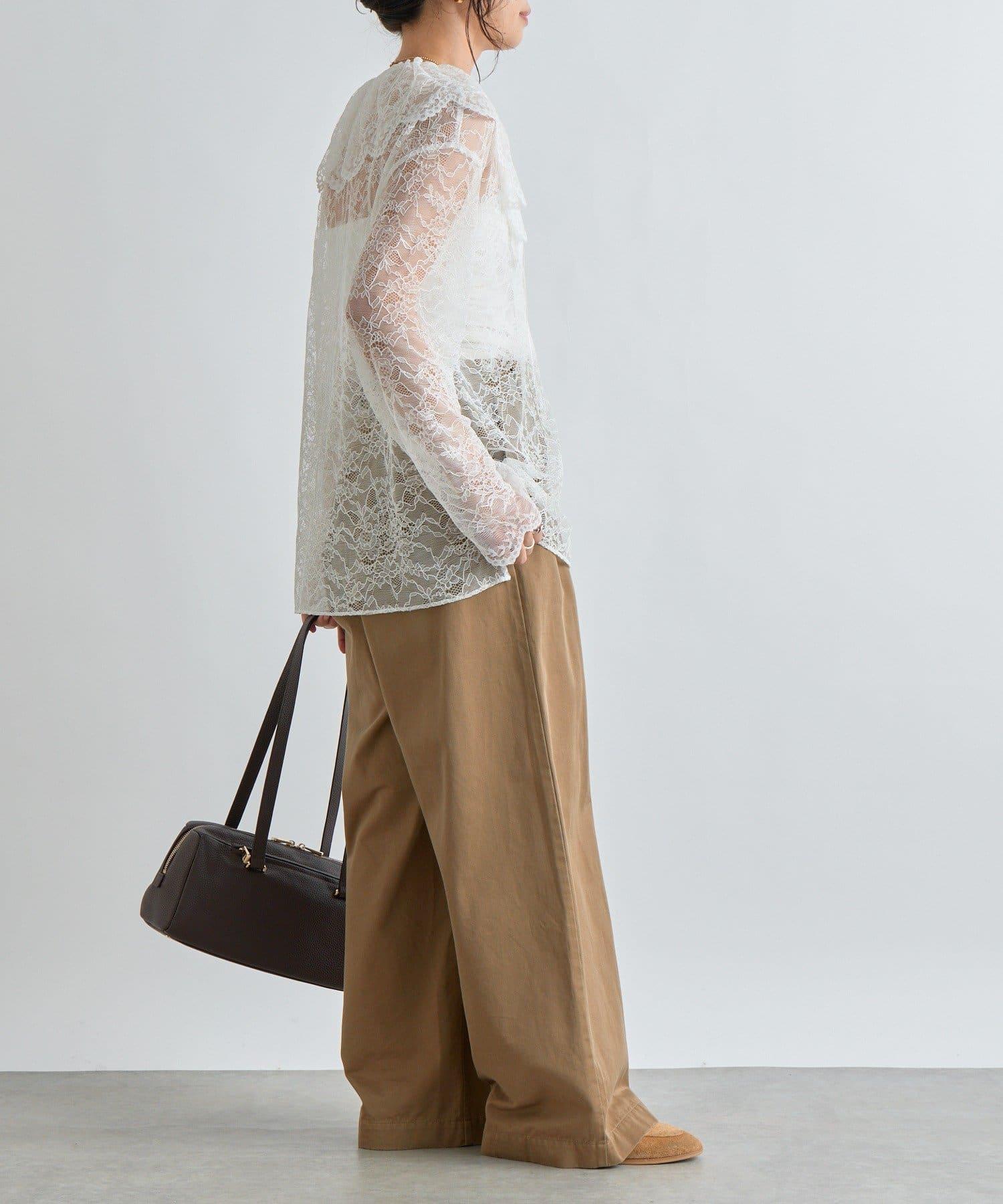 【精緻蕾絲點綴】荷葉邊領蕾絲襯衫