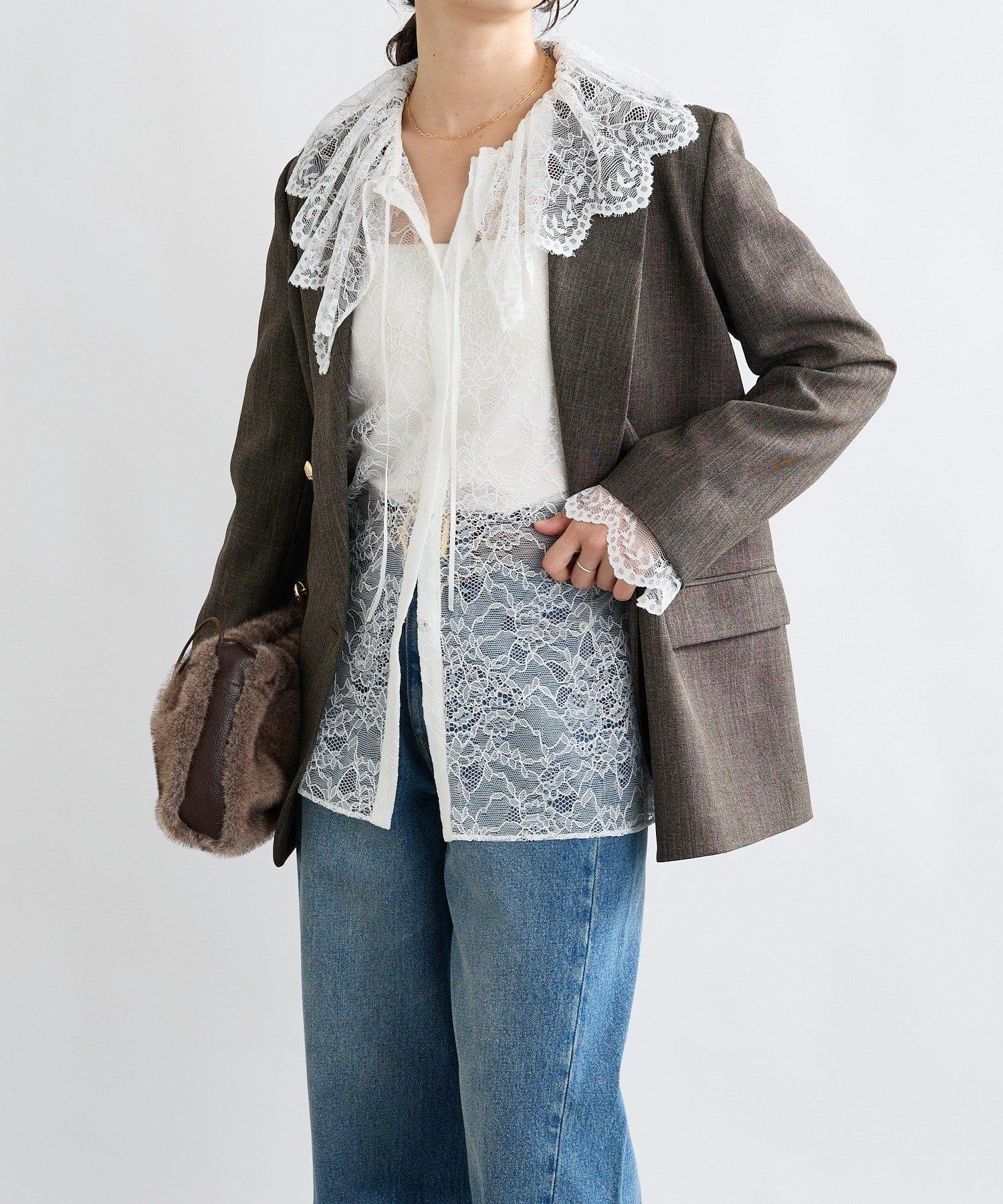領口和袖口邊緣採用扇形設計,這樣當從針織衫或外套中露出領口和袖口時,精緻蕾絲的美感就會顯現出來。