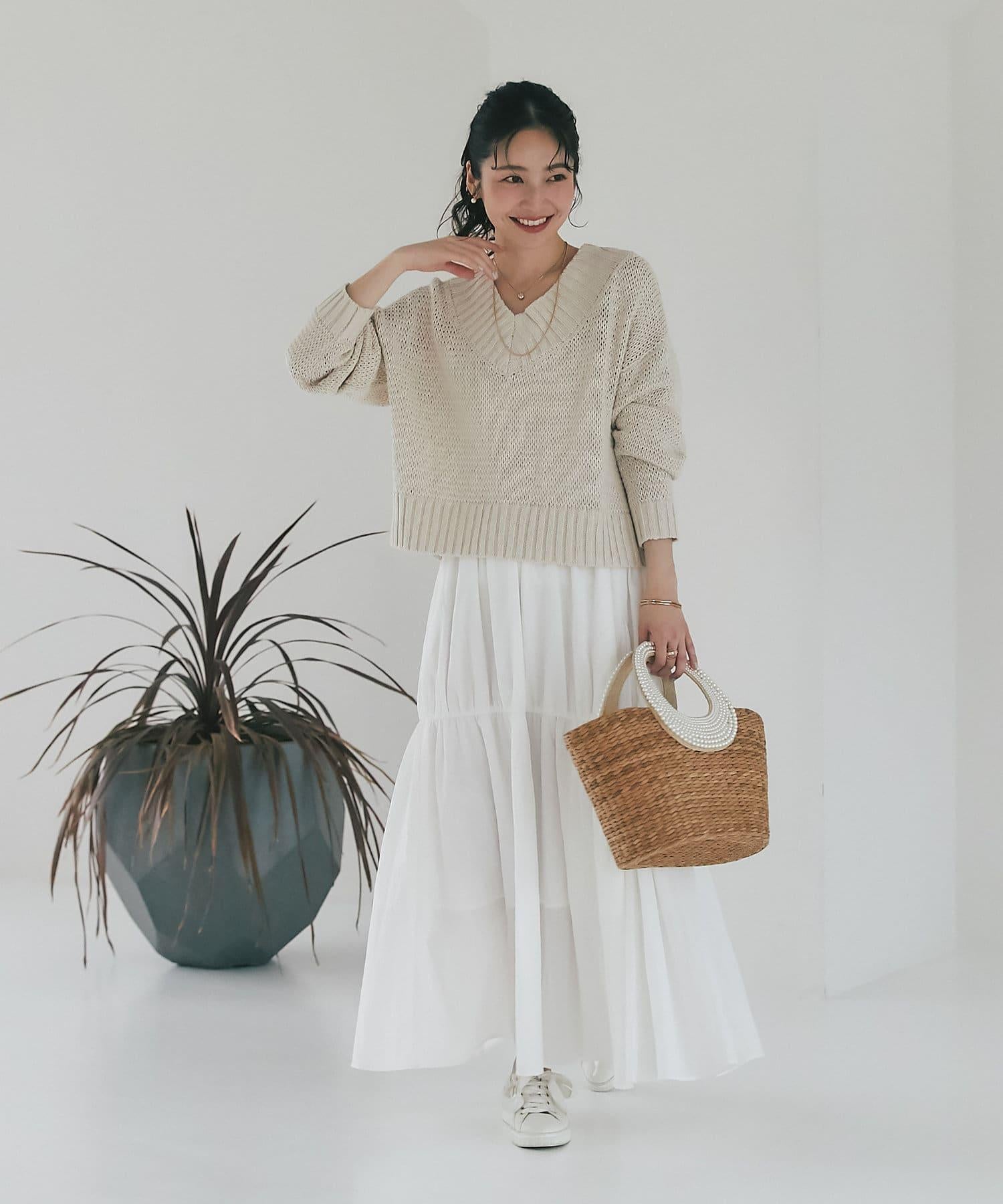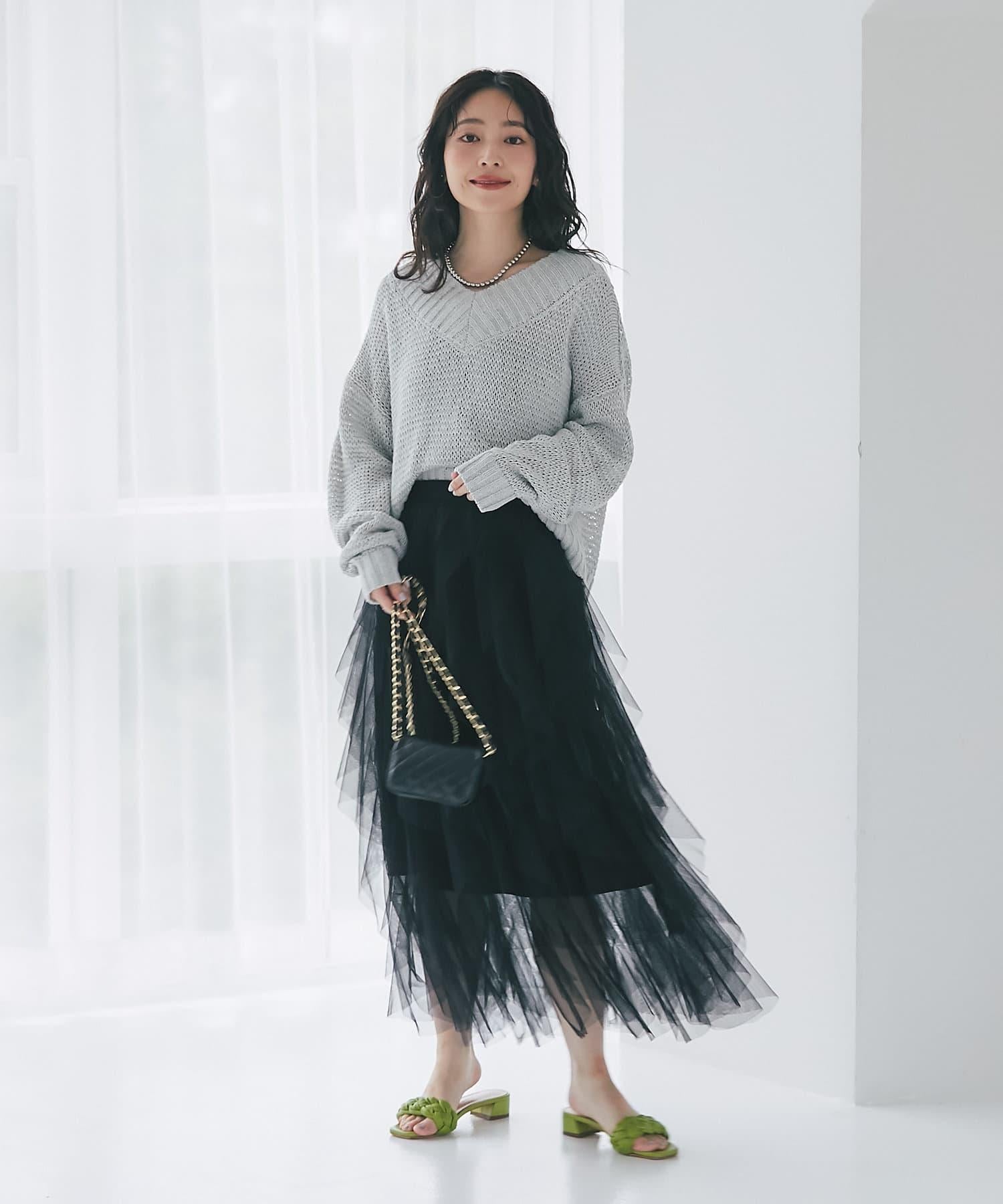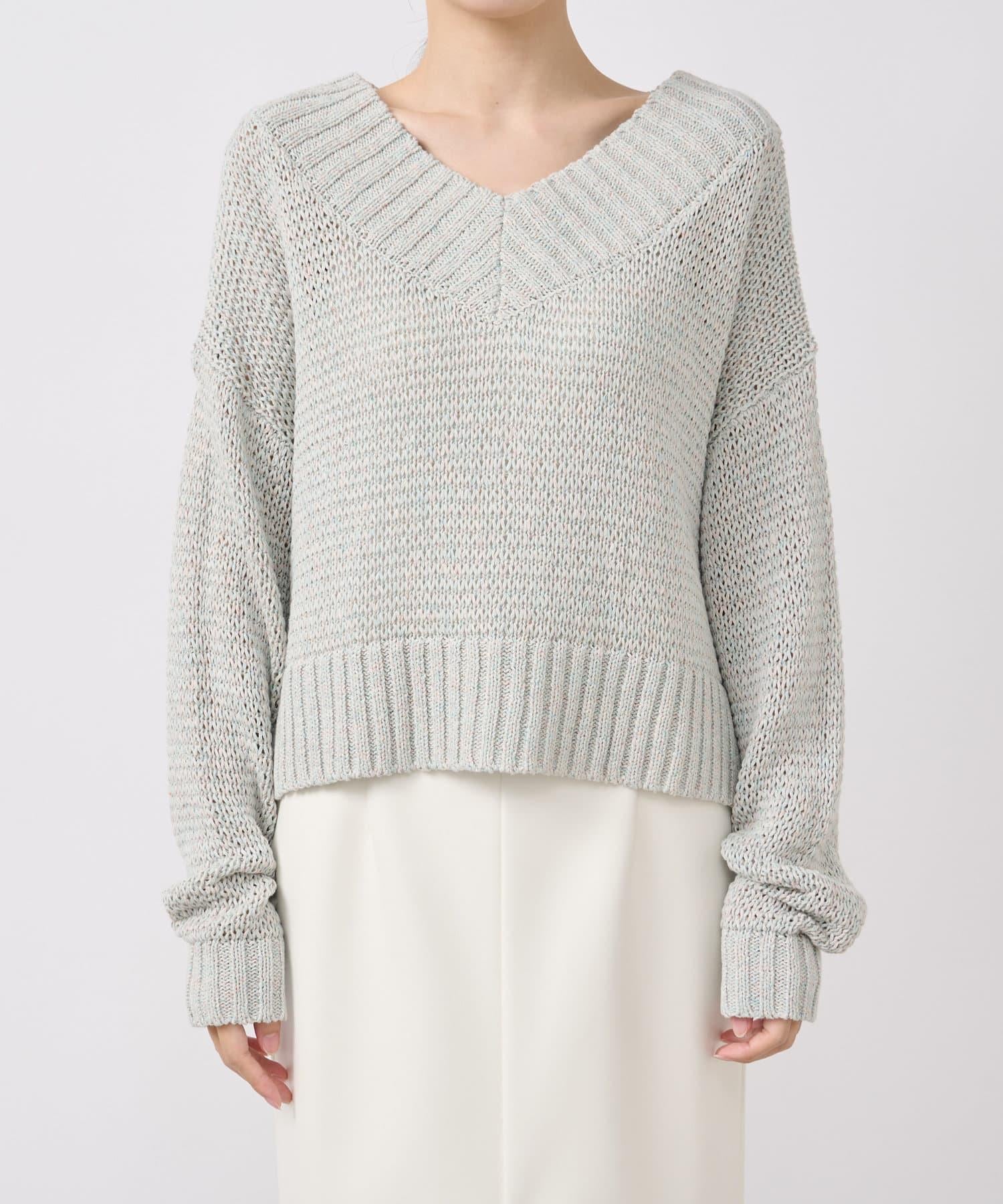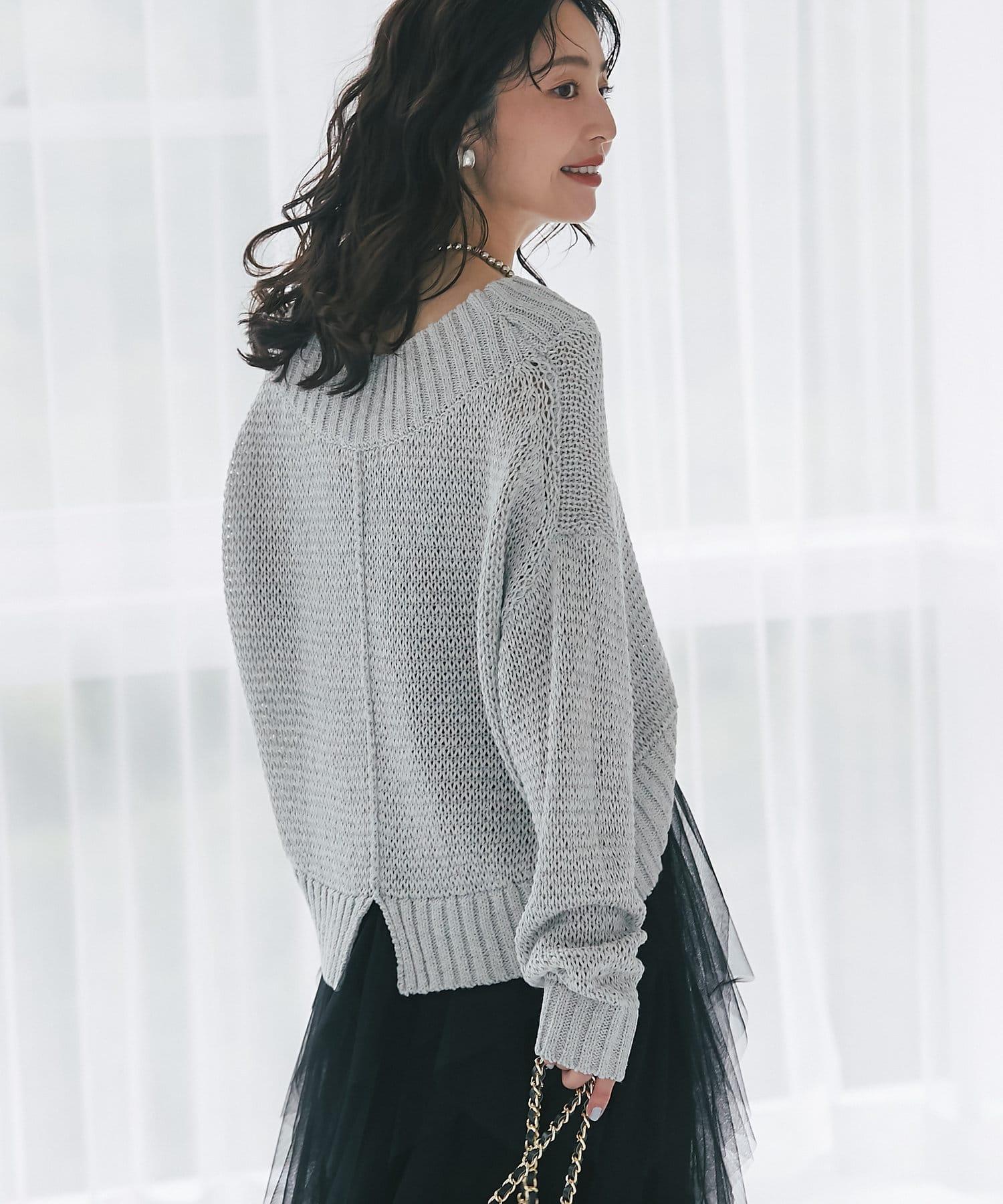這款採用蓬鬆紗線的 V 領針織衫給人以溫柔的印象,是年度👍的款式。