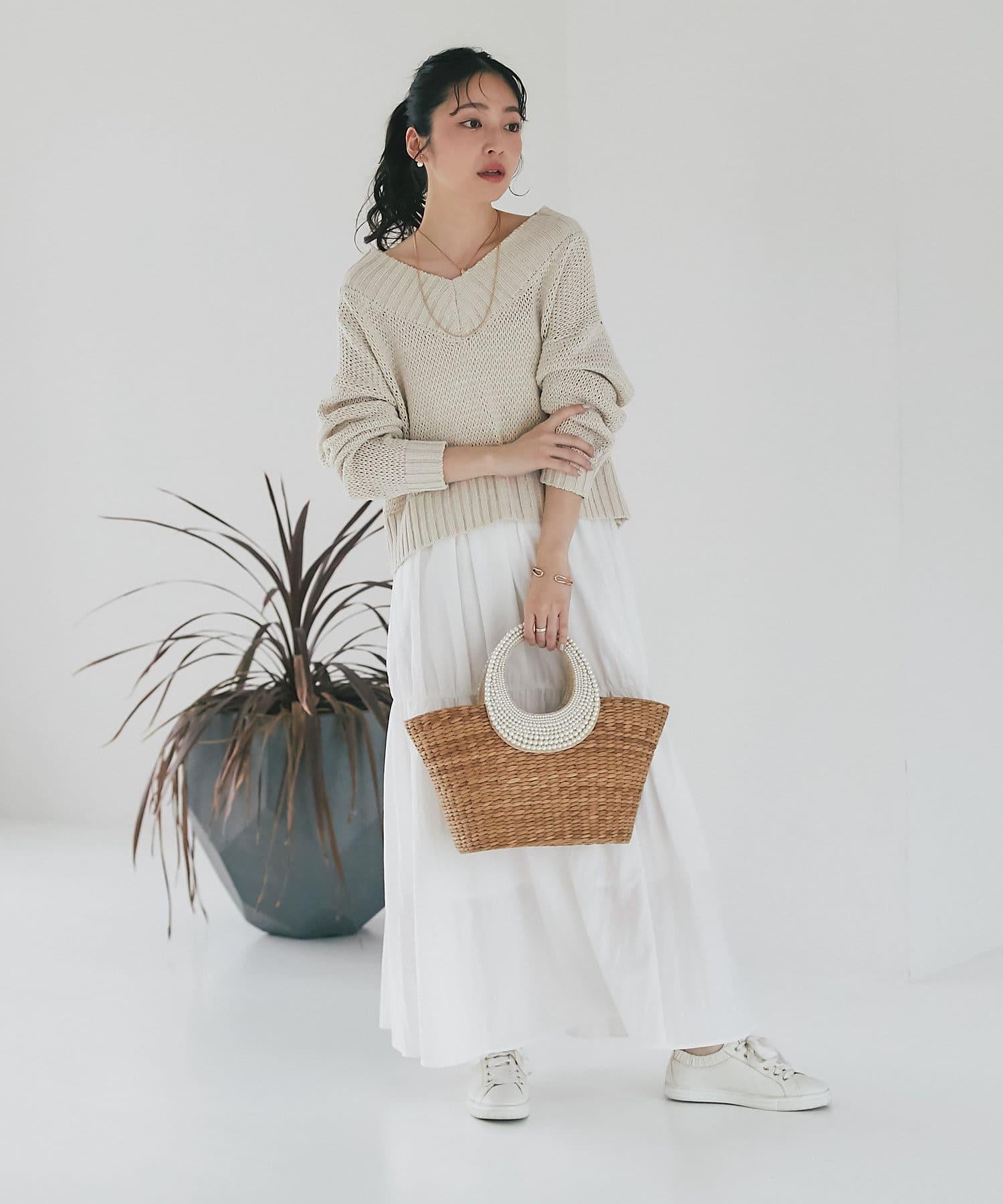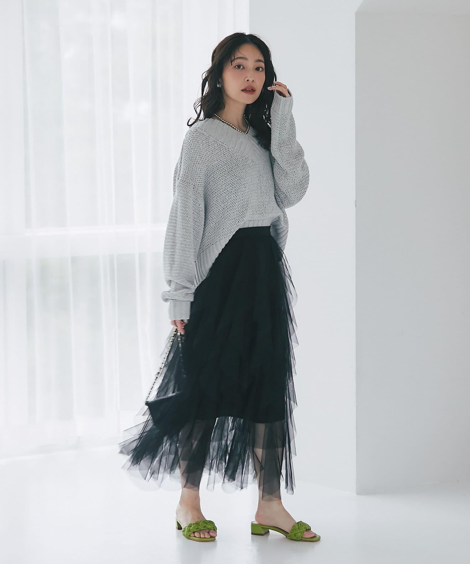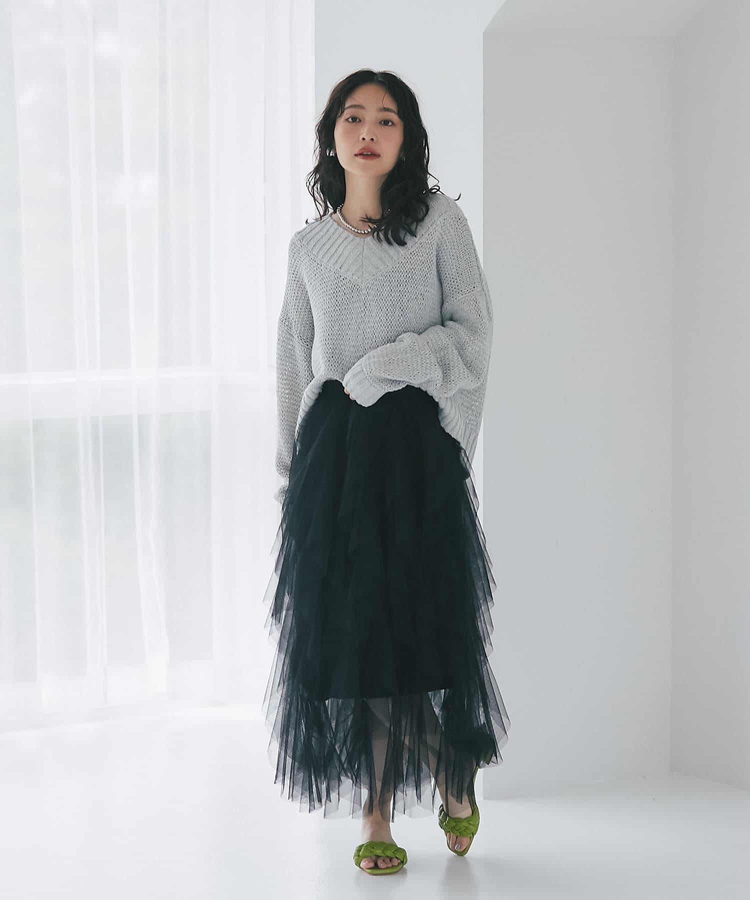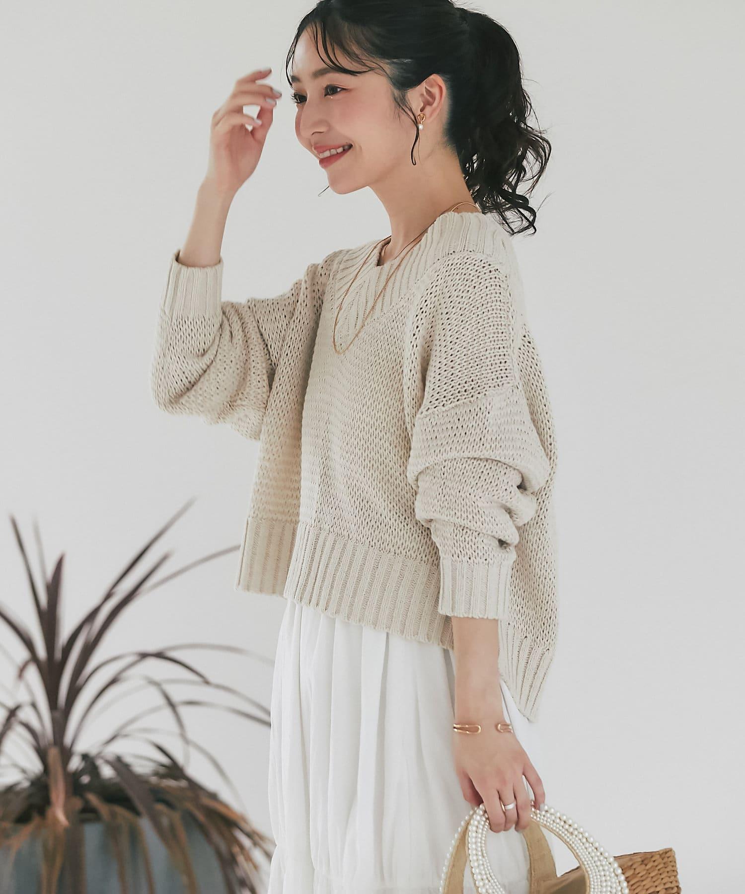 這款採用蓬鬆紗線的 V 領針織衫給人以溫柔的印象,是年度👍的款式。
