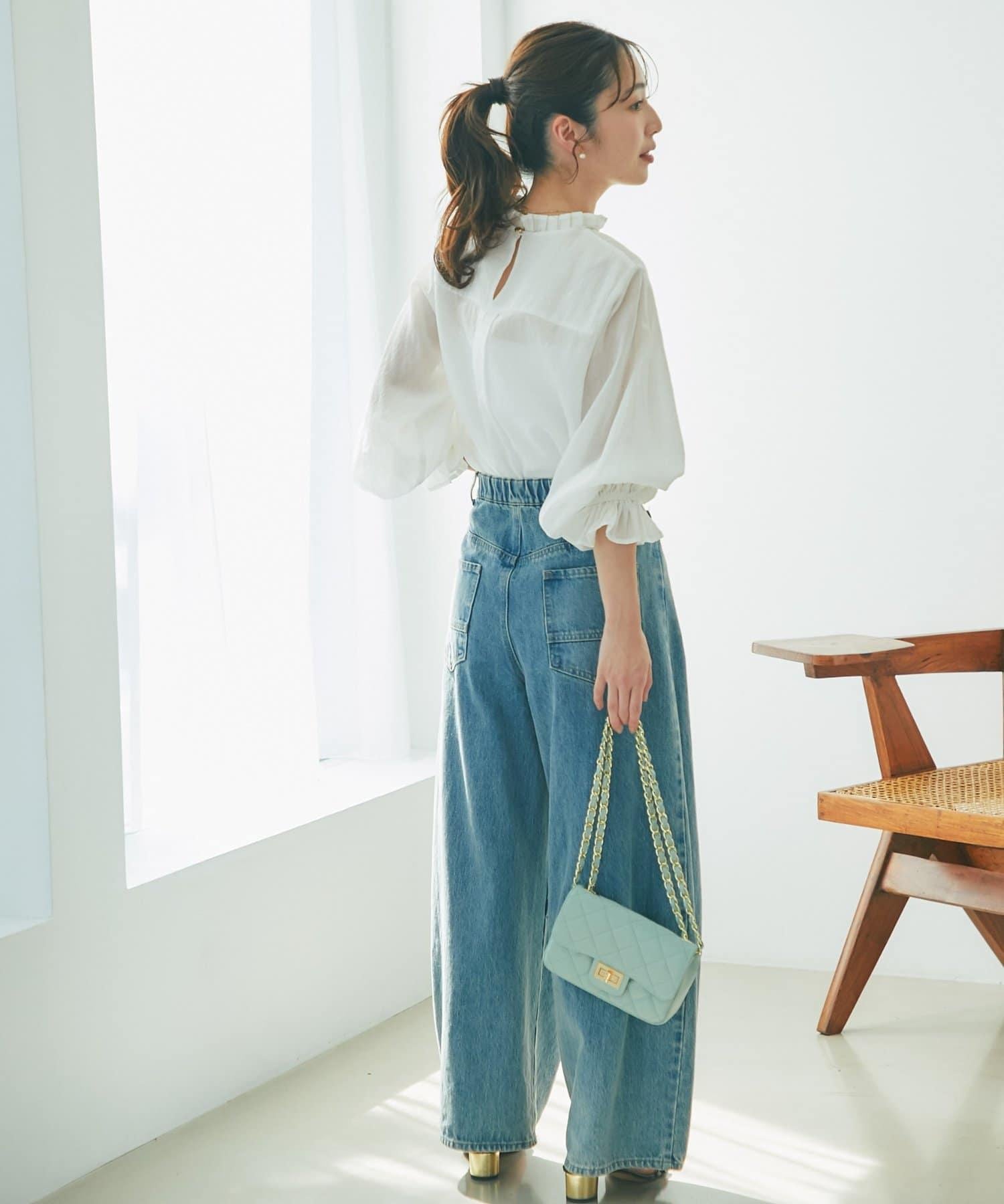 蓬鬆的袖子設計隨意地遮蓋住身形。