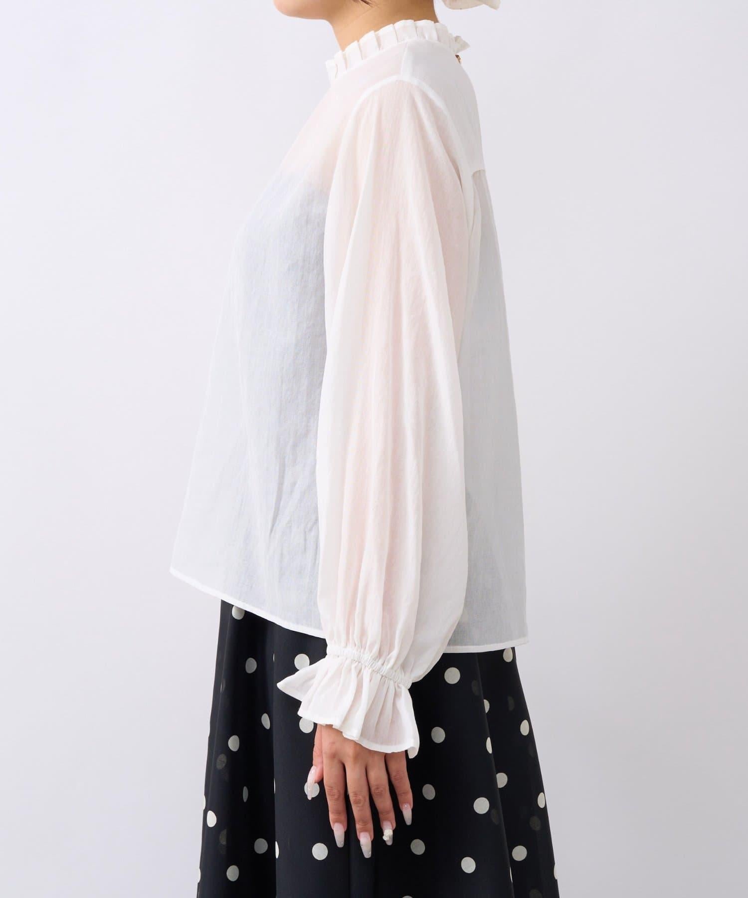 頸部的褶皺和絲帶營造出女性化的氛圍。