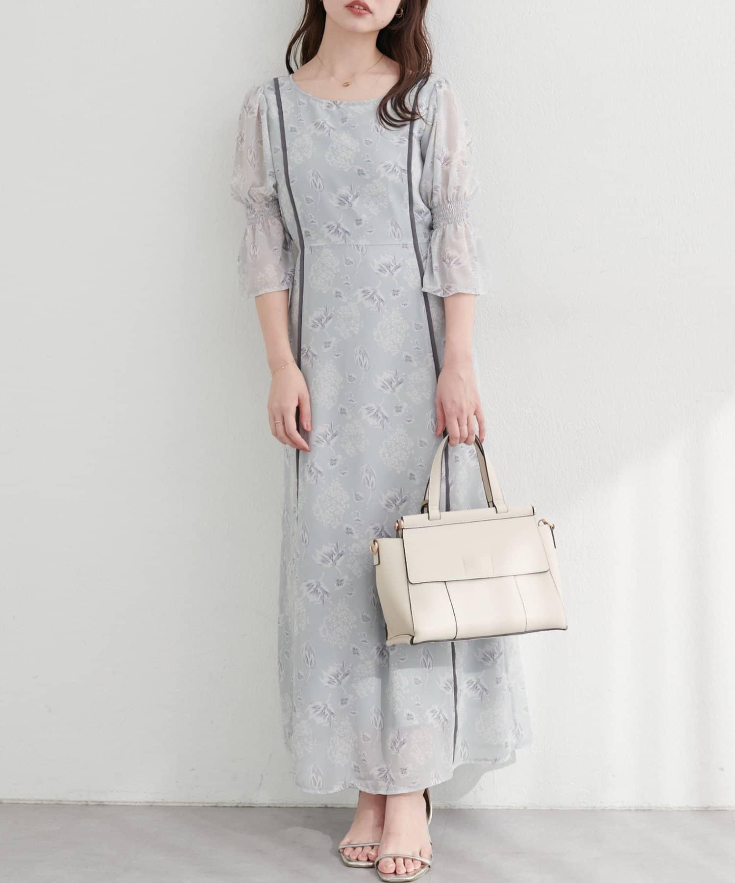 這款連衣裙以精緻的花卉圖案貫穿始終,優雅甜美。
