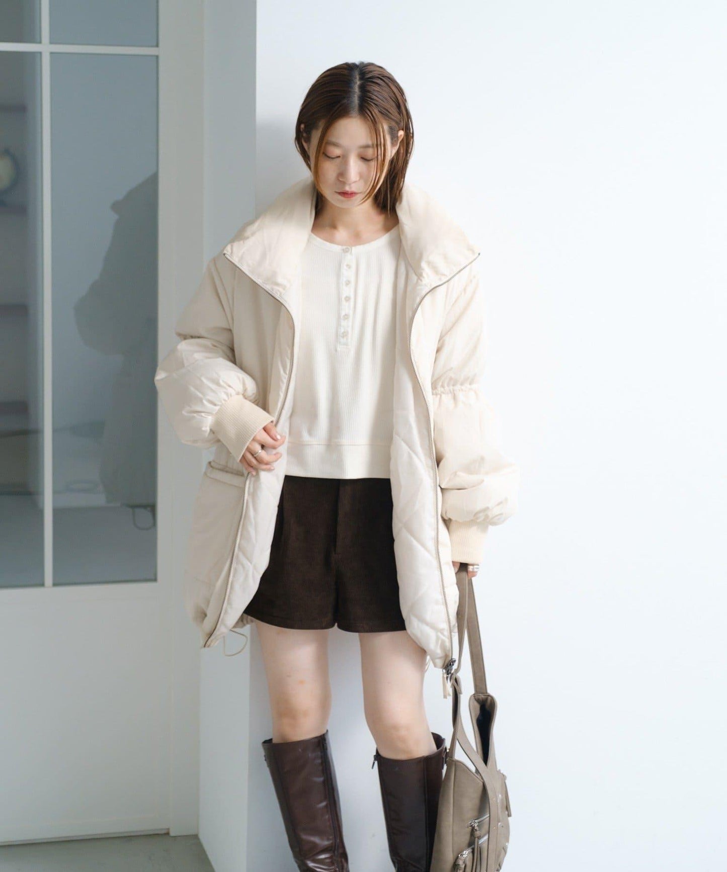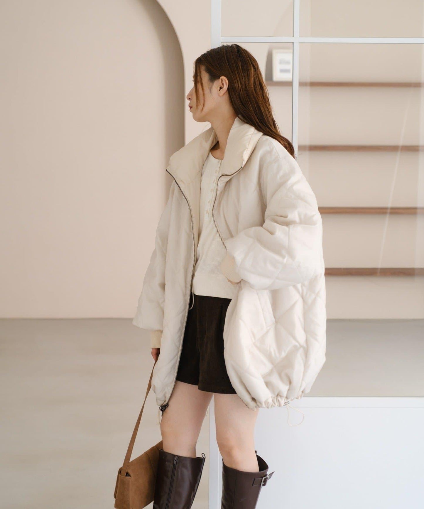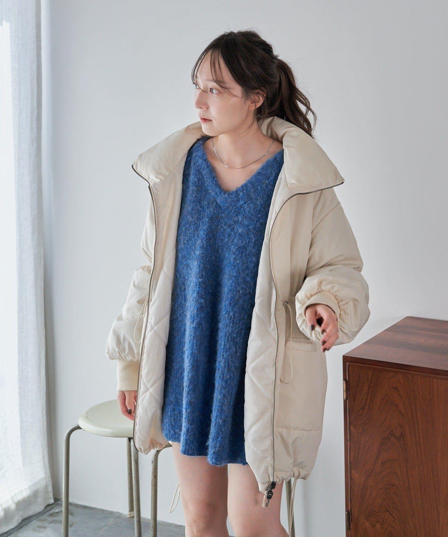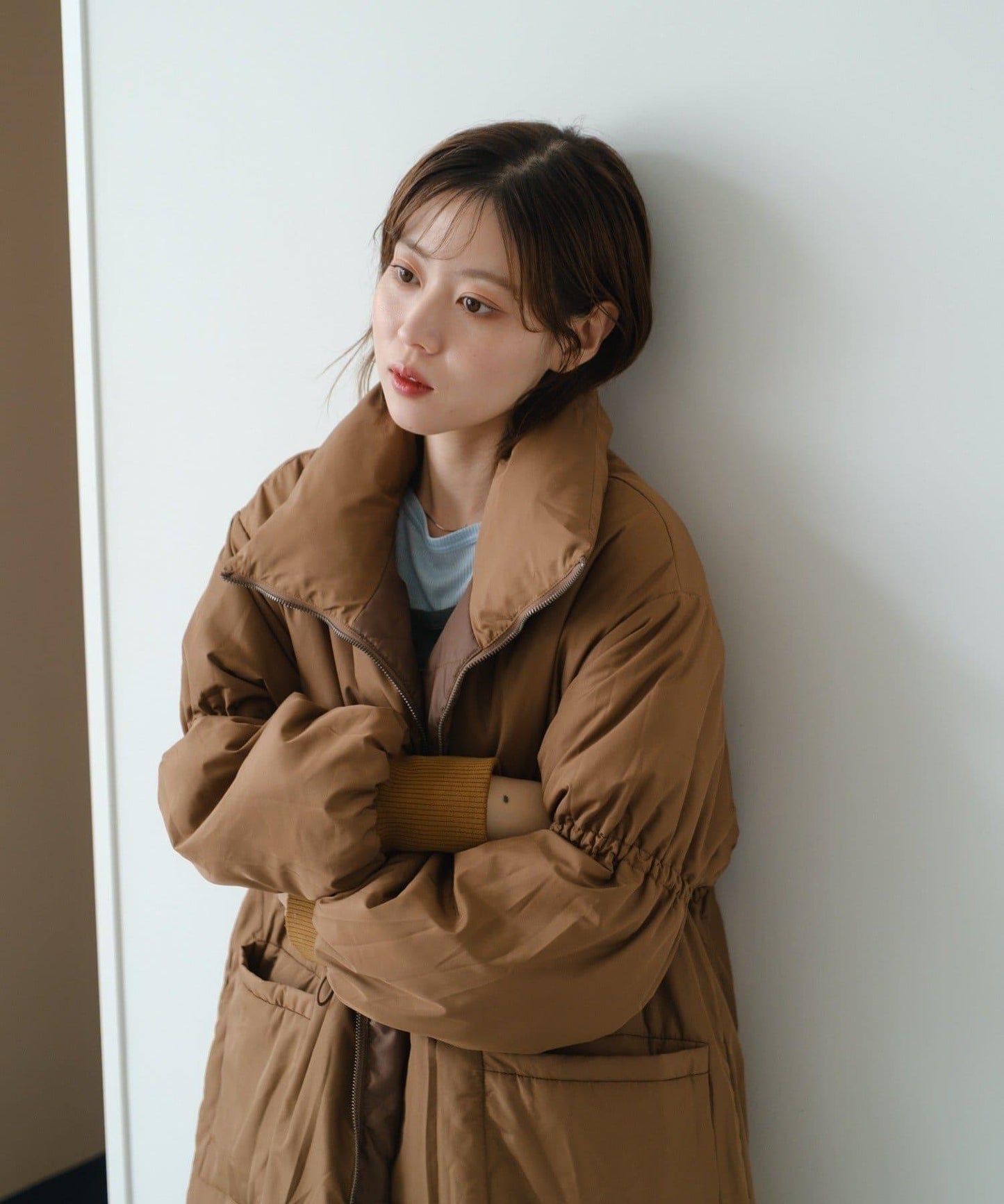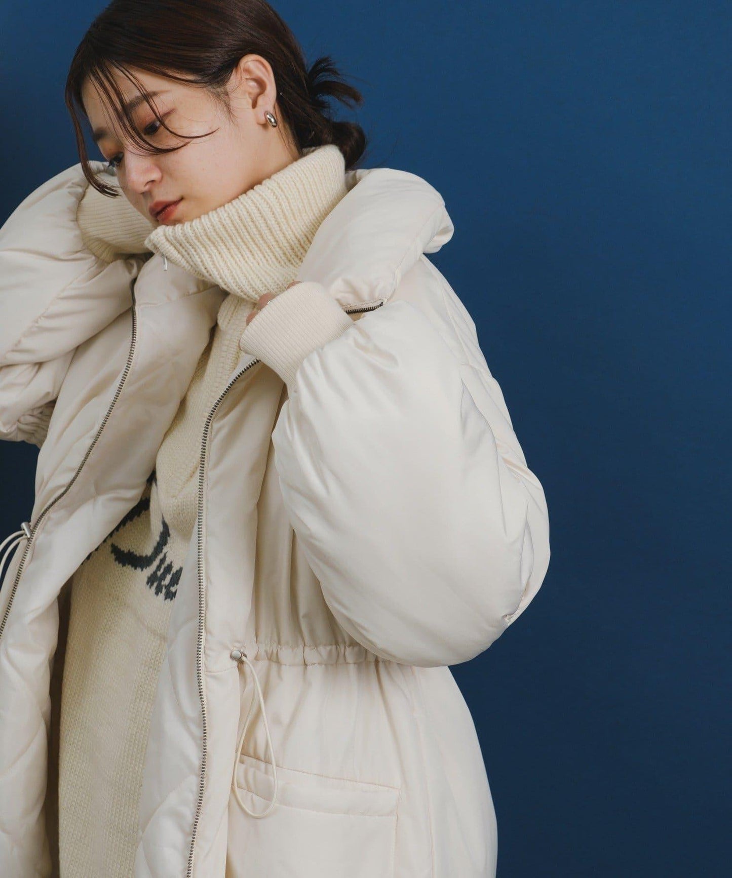 沒有臃腫感的羽絨服!因為它緊貼頸部,所以可以一直穿到隆冬。
