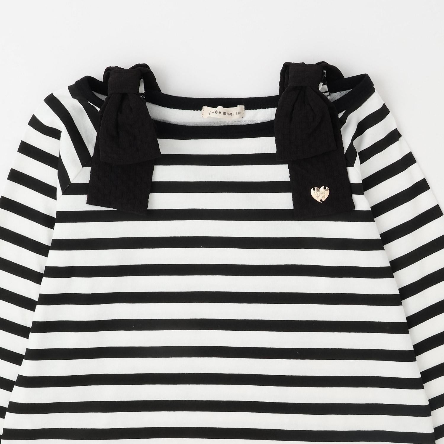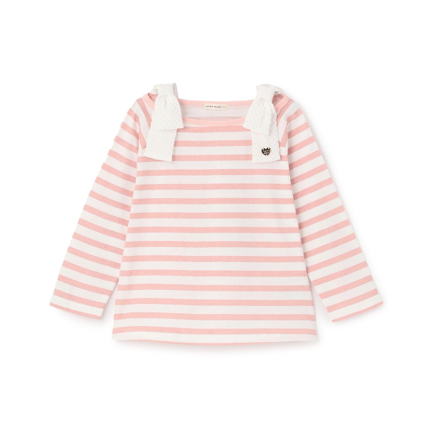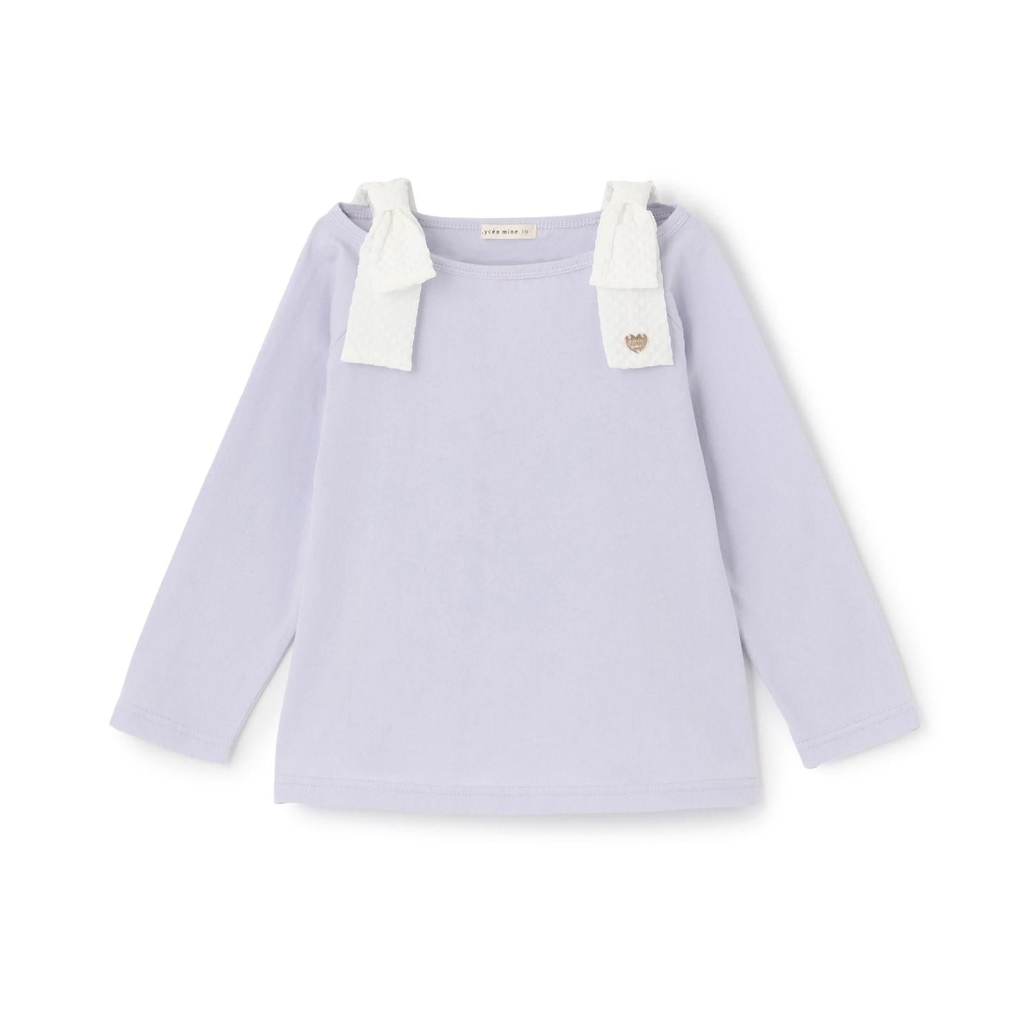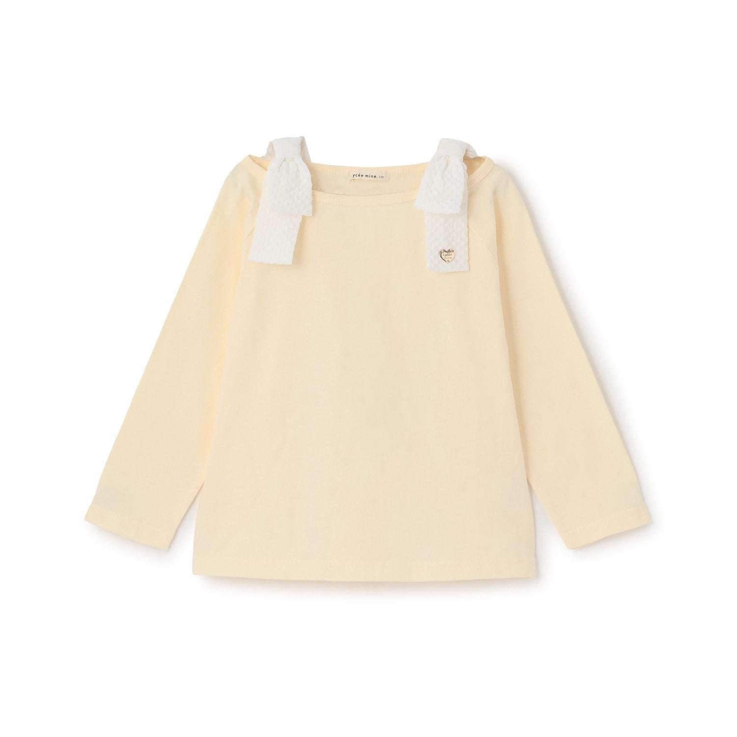 長袖 T 恤,船領設計,肩部飾有可愛的絲帶。