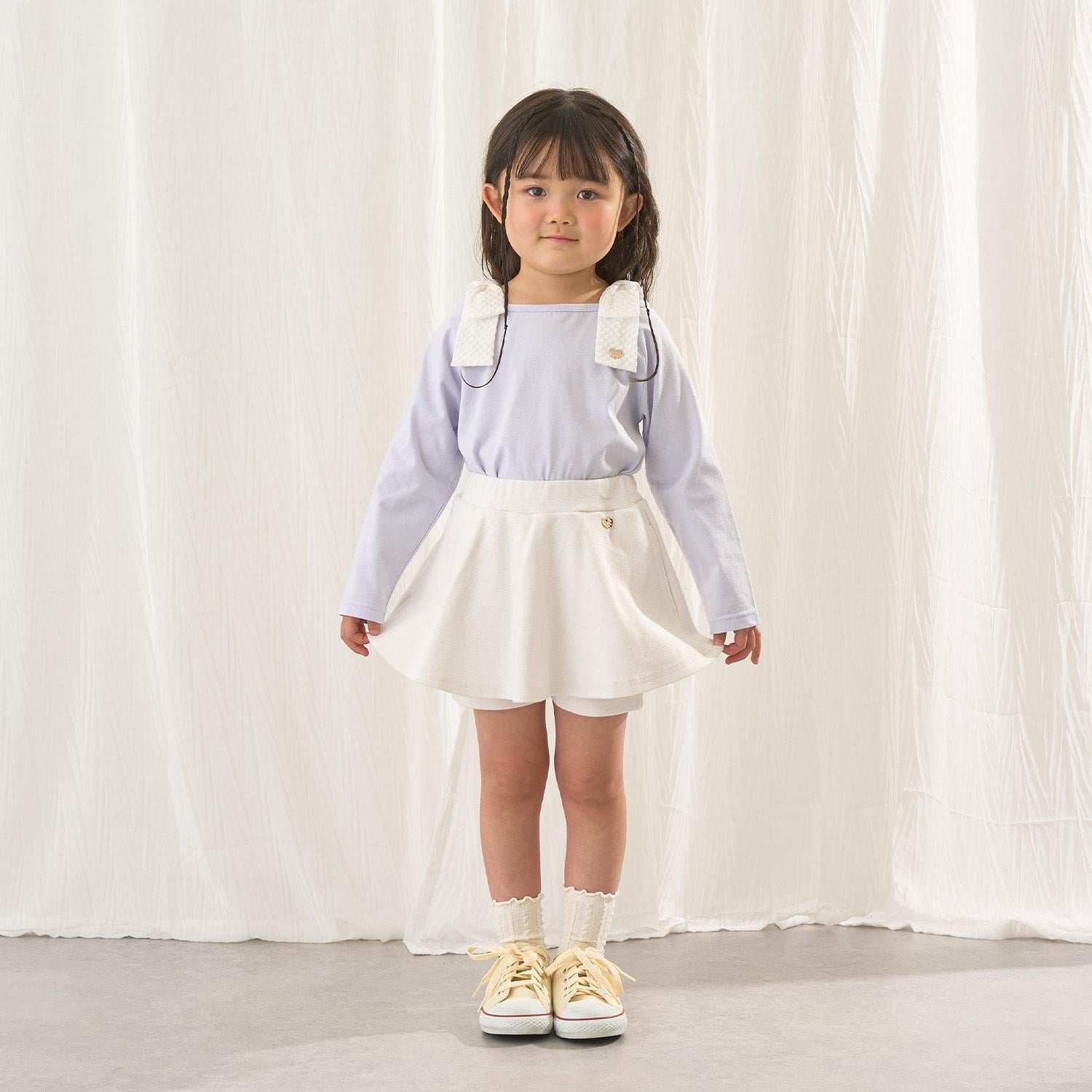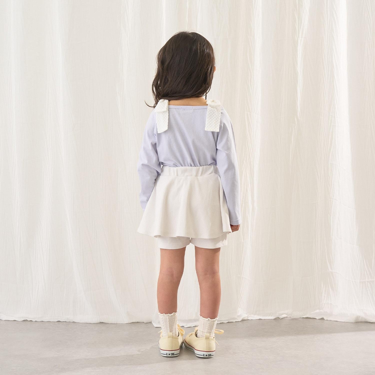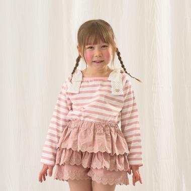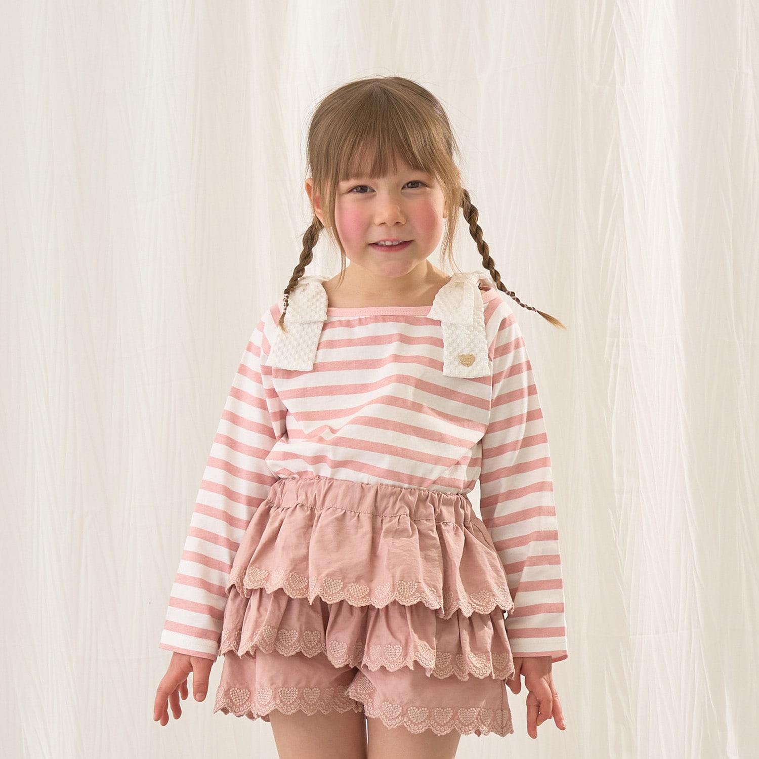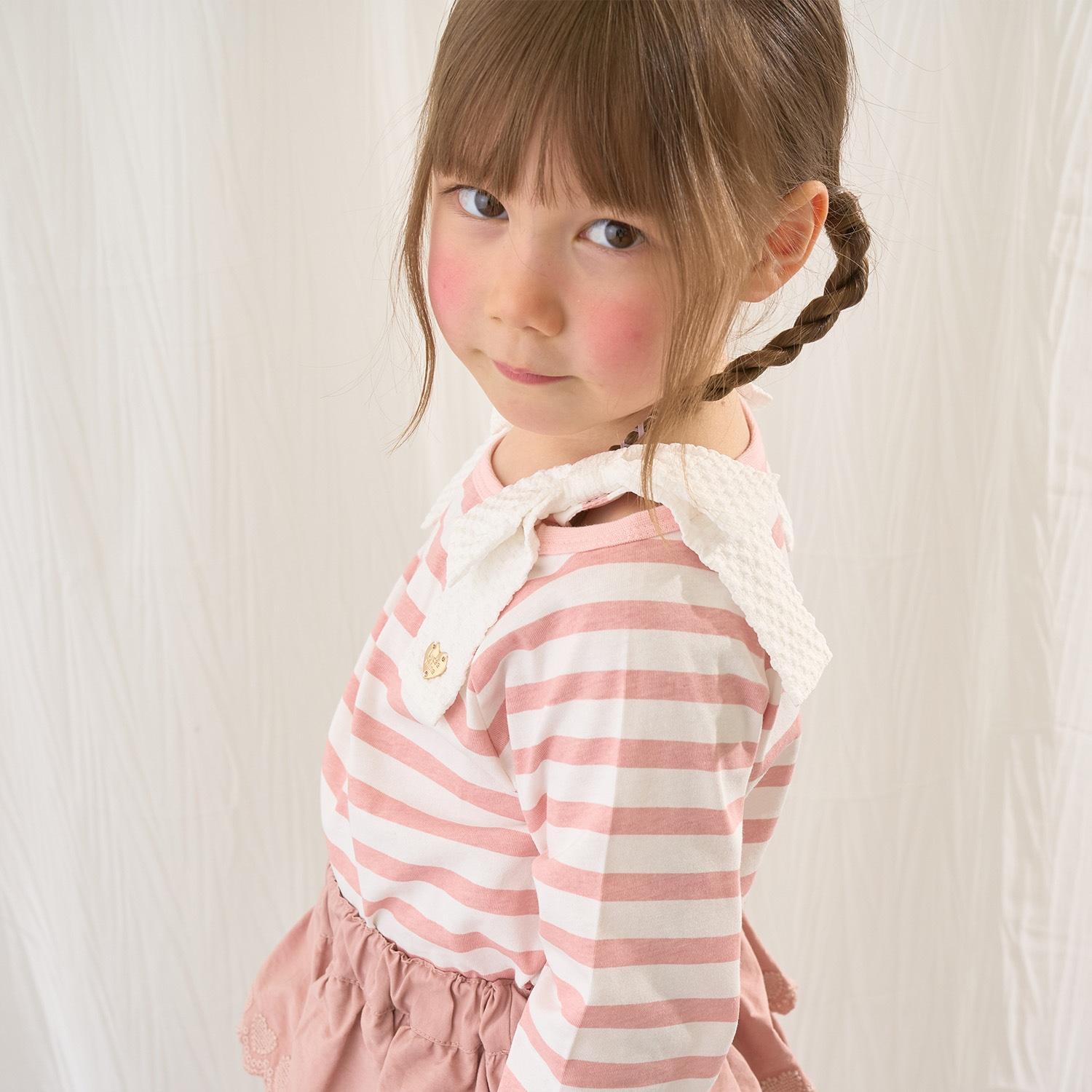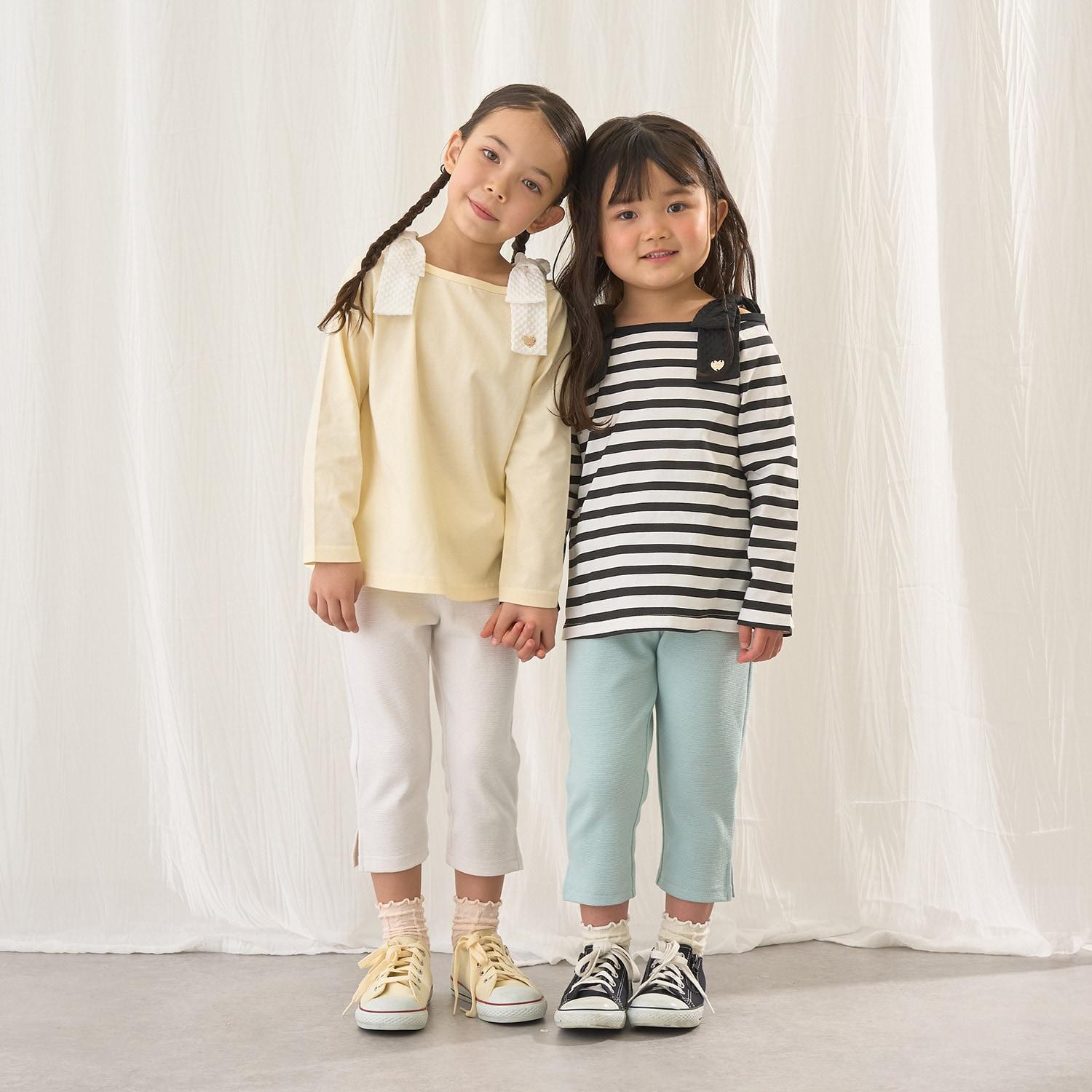 長袖 T 恤,船領設計,肩部飾有可愛的絲帶。