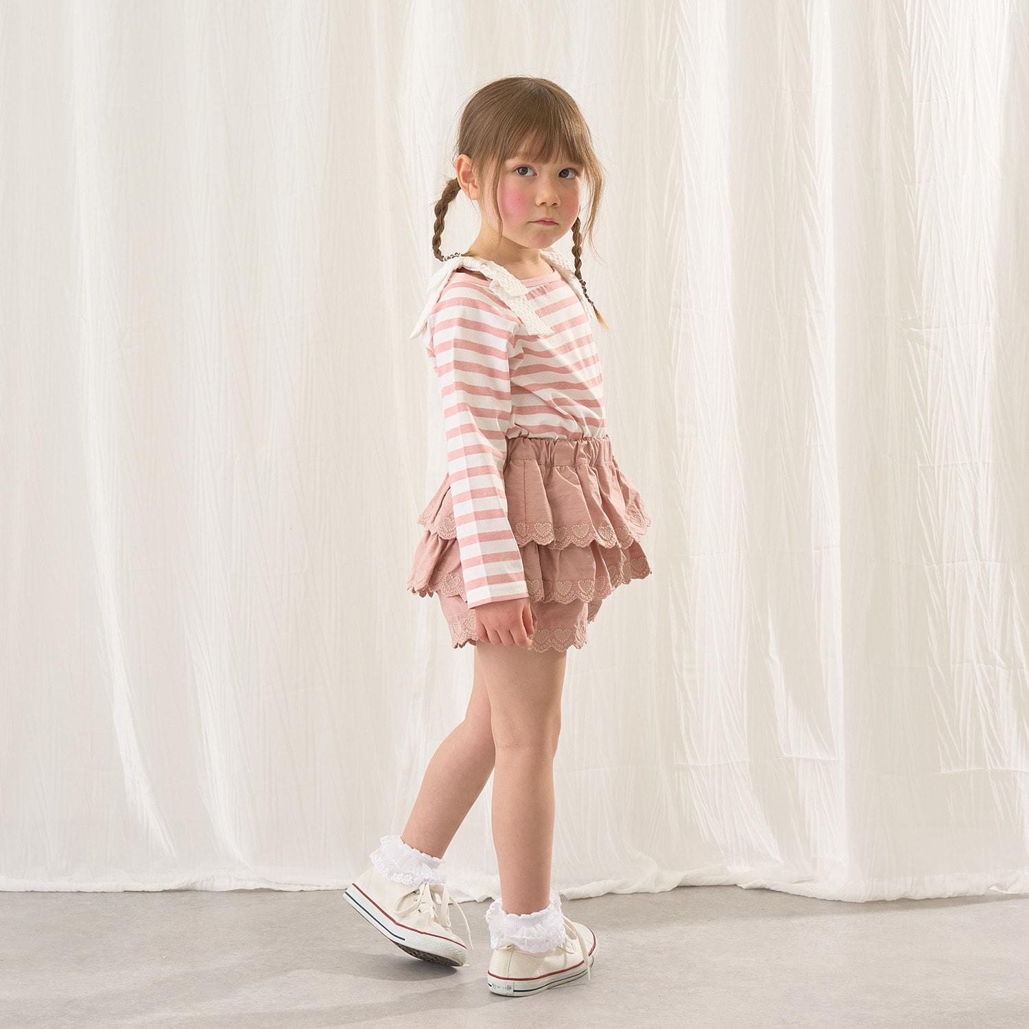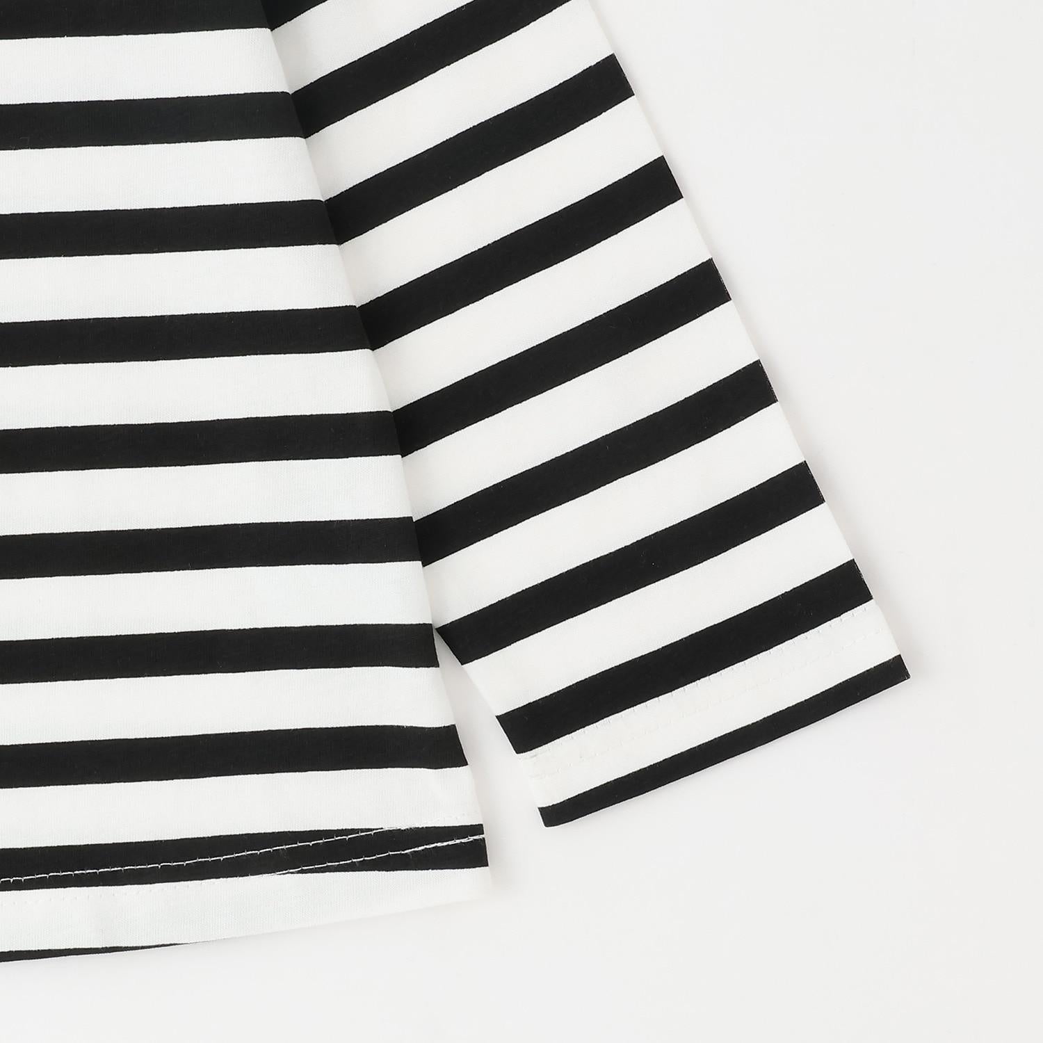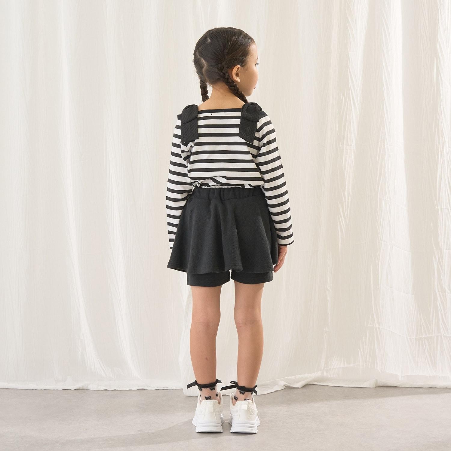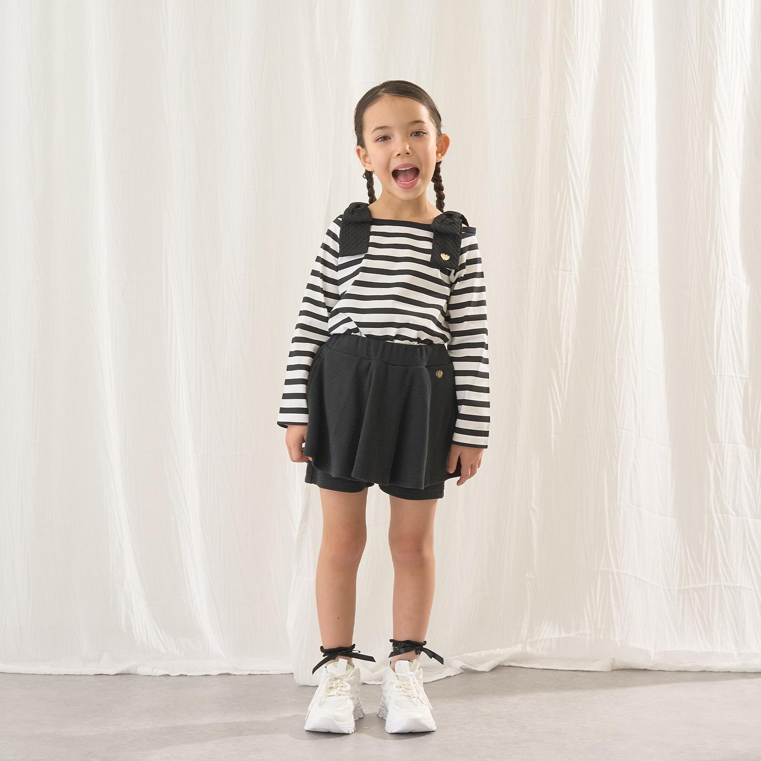 長袖 T 恤,船領設計,肩部飾有可愛的絲帶。