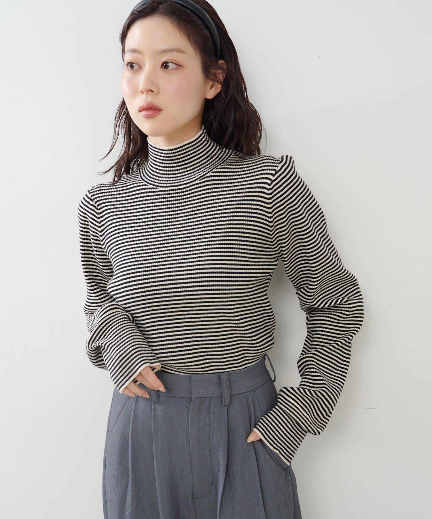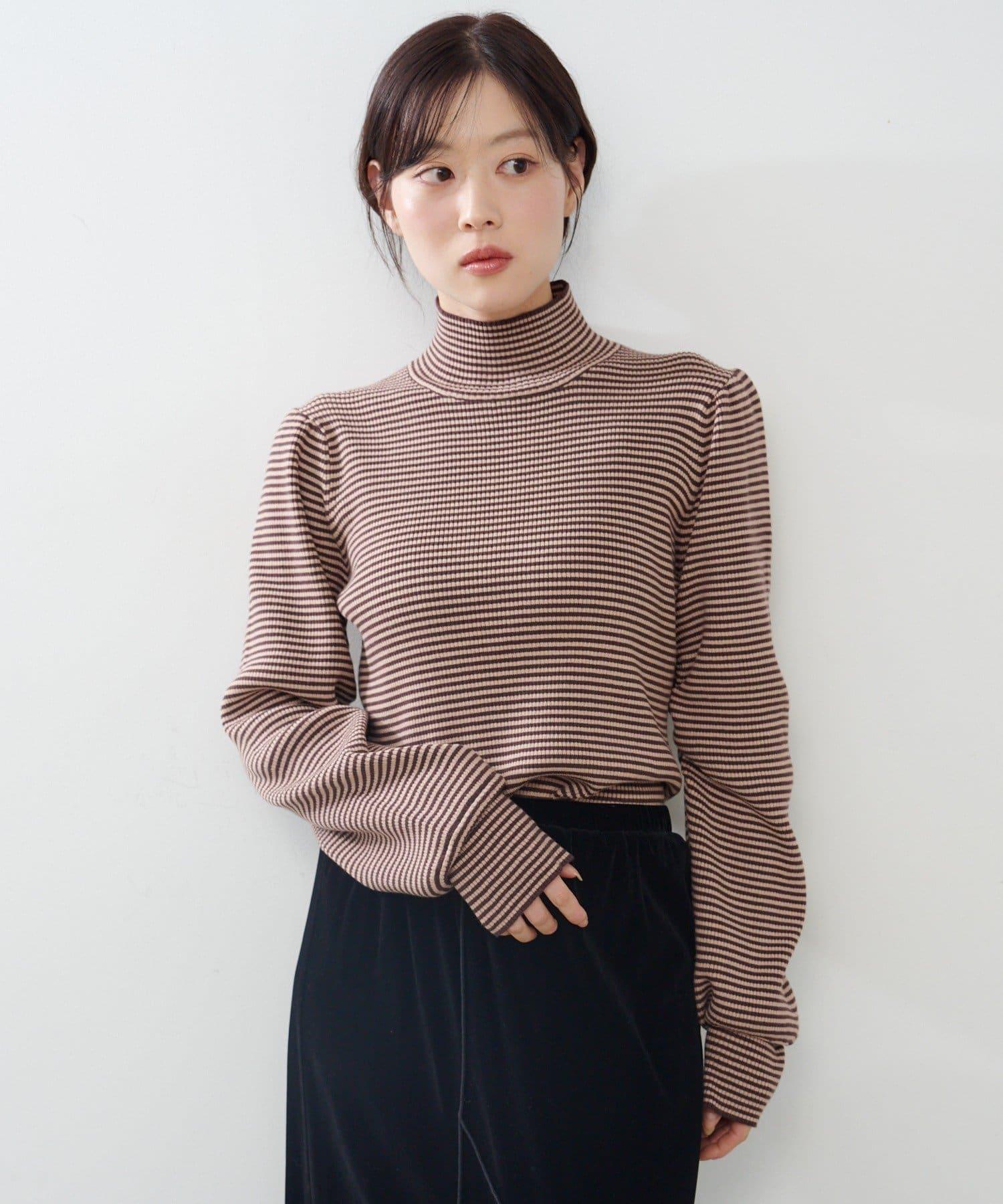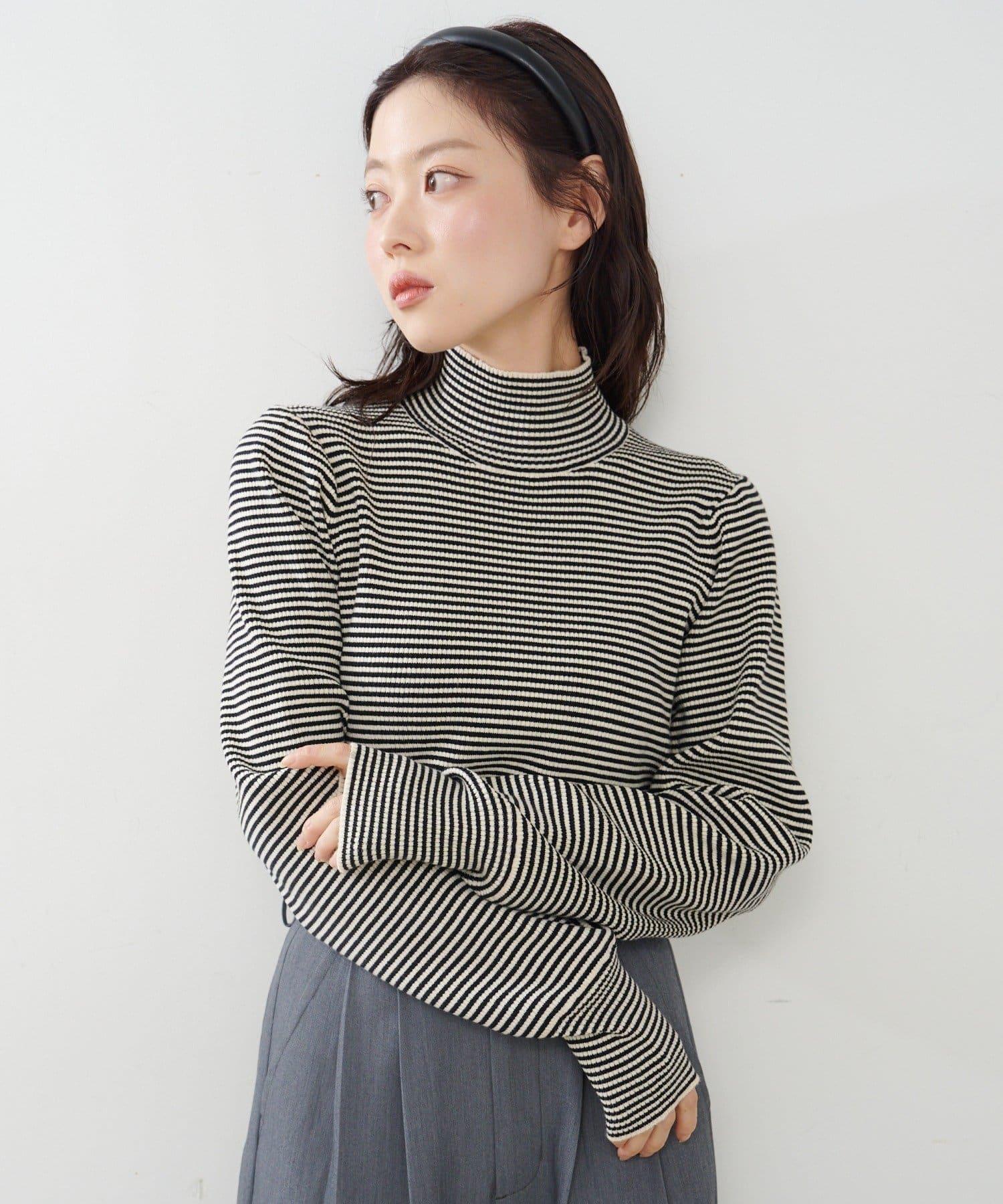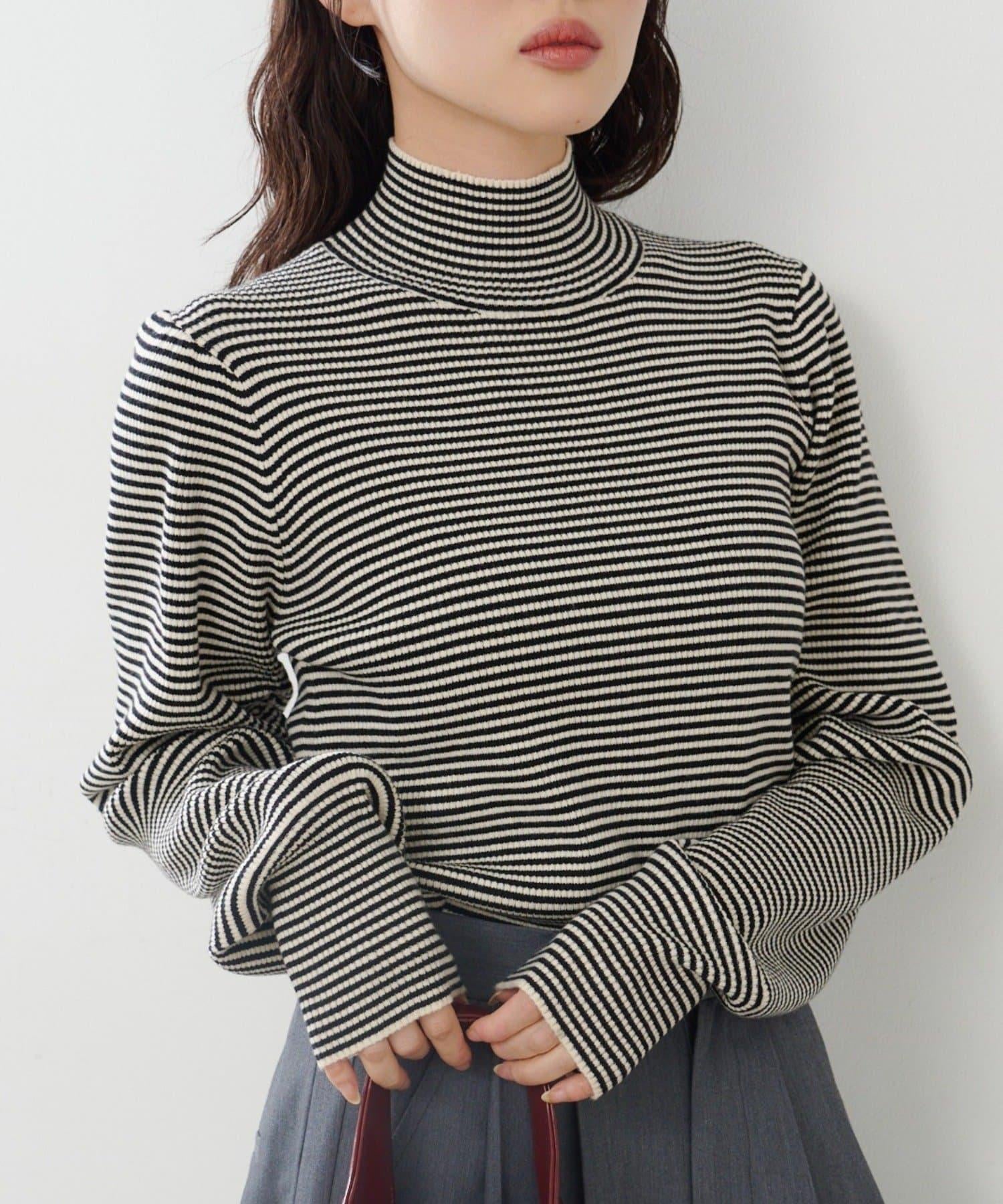 【純色&條紋】高領羅紋針織衫