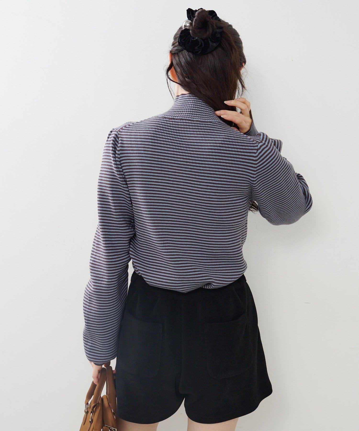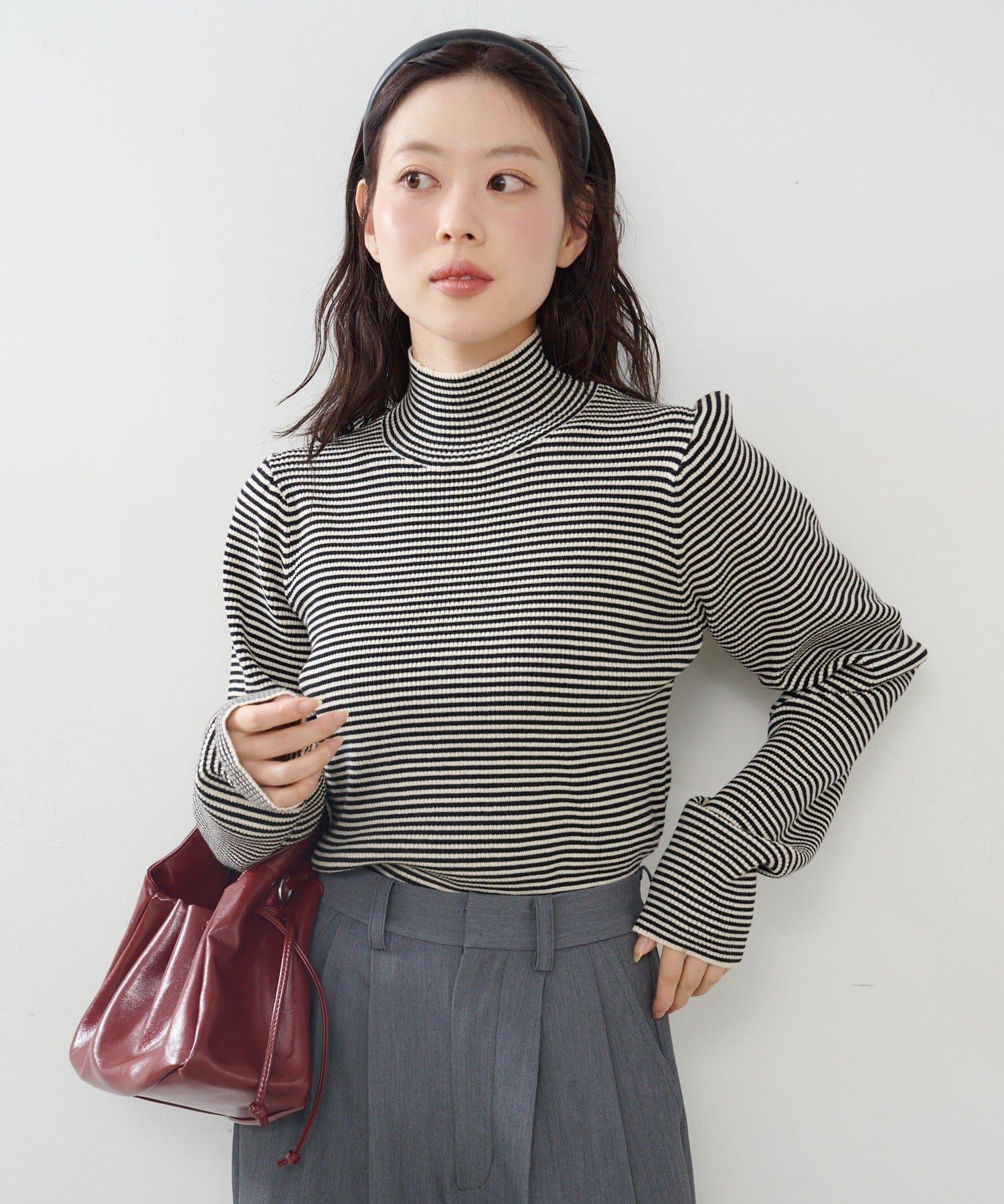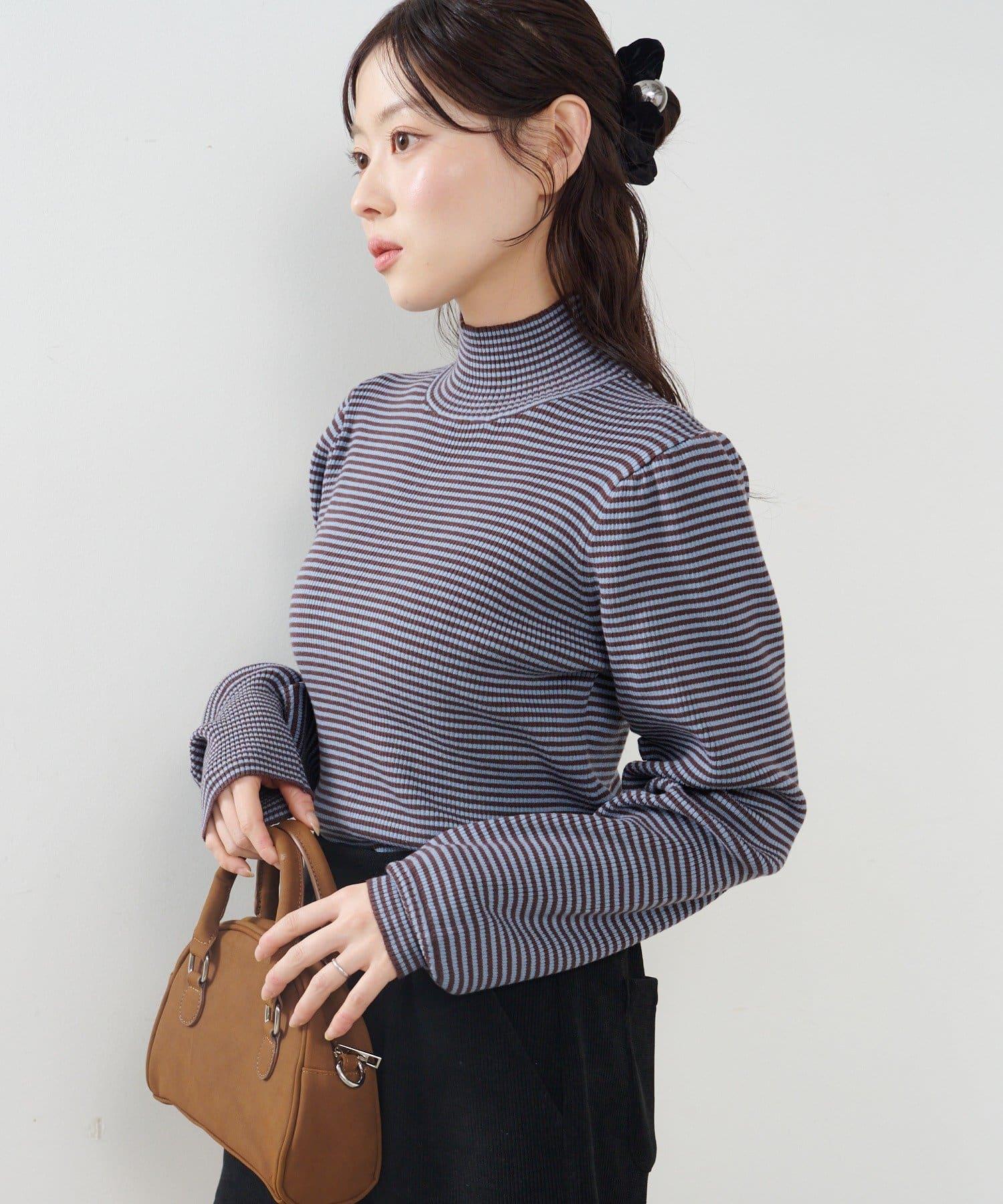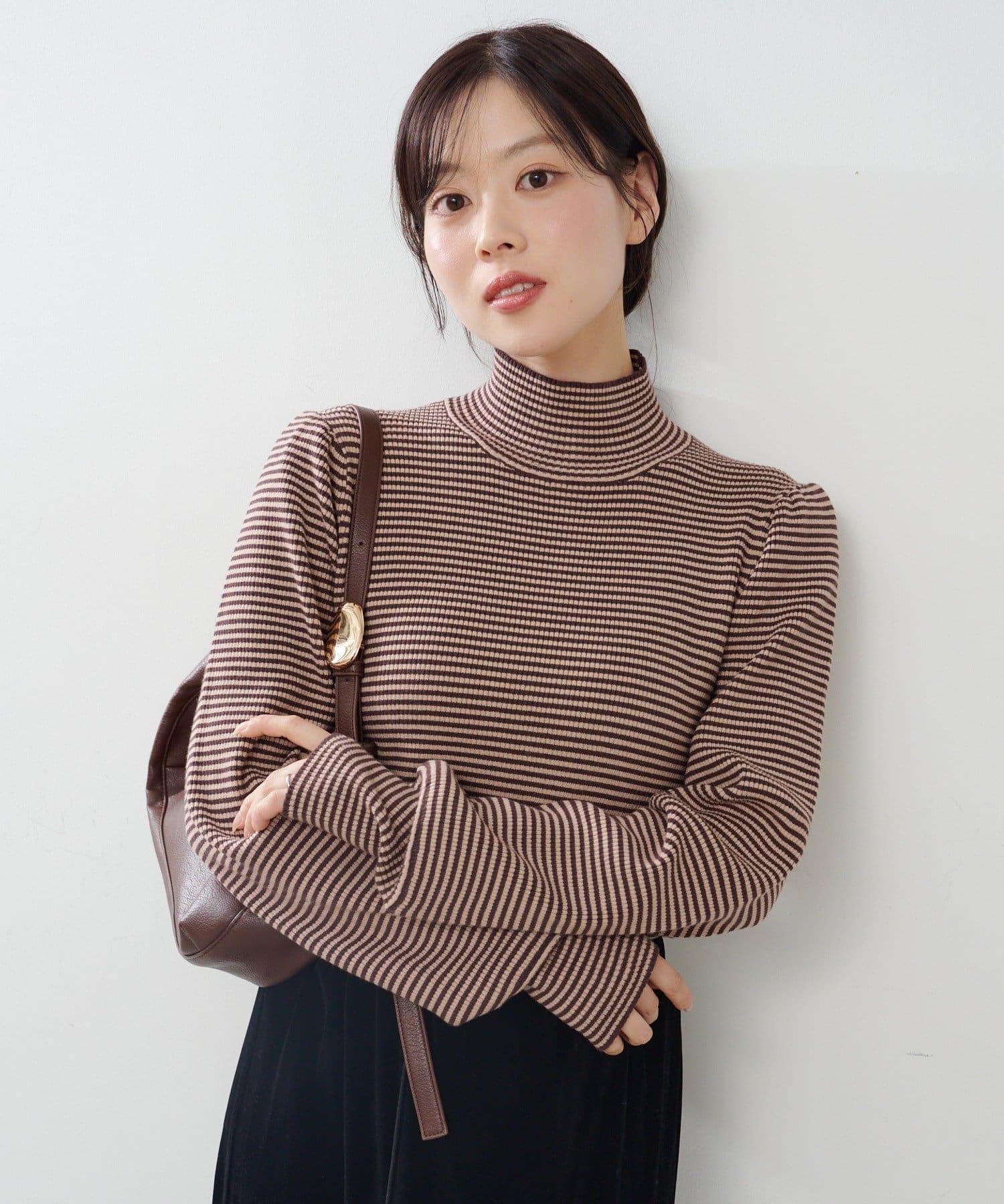 【純色&條紋】高領羅紋針織衫