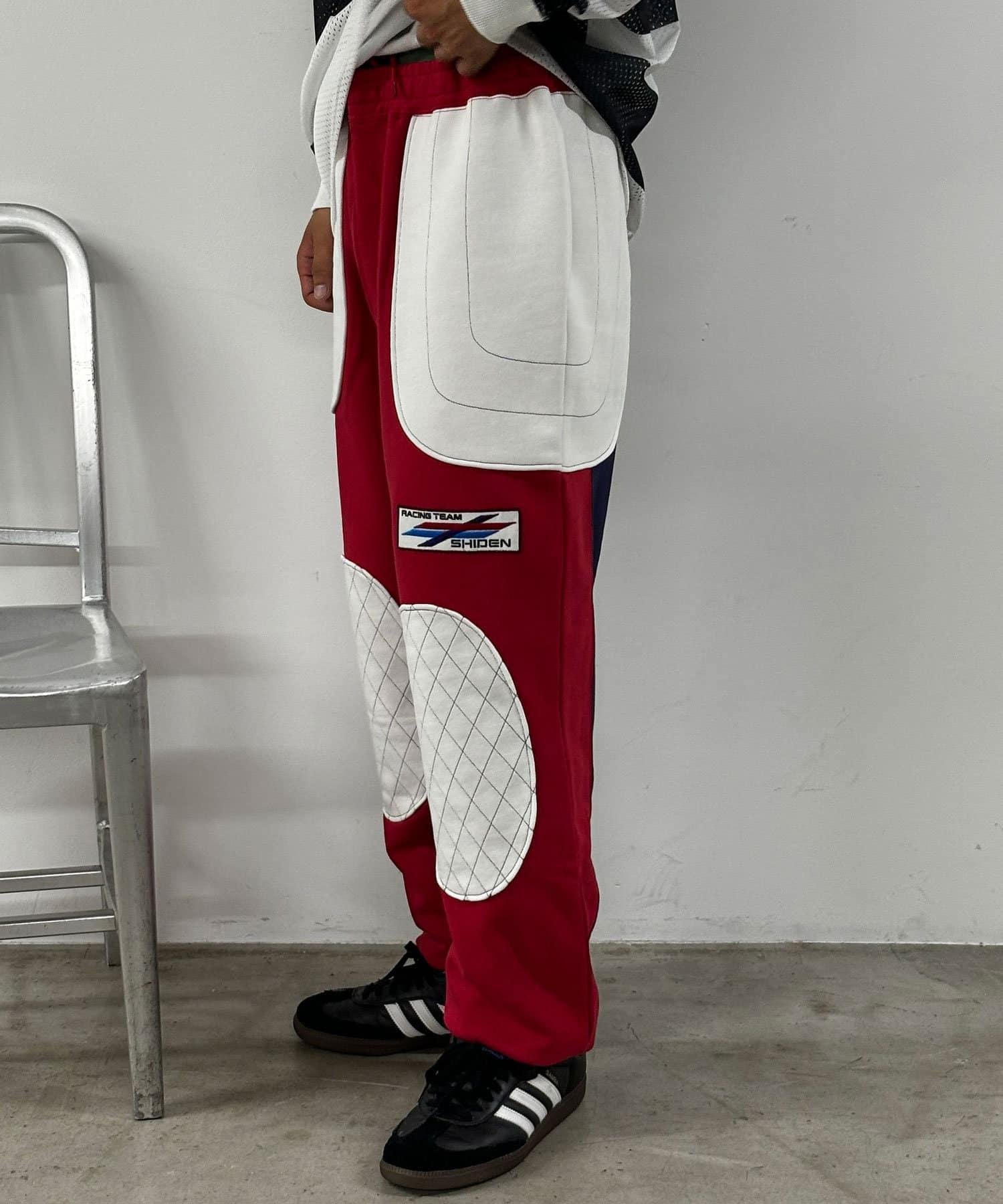 輕鬆長褲採用機車長褲設計,包括膝蓋和兩側的絎縫加固襯墊。