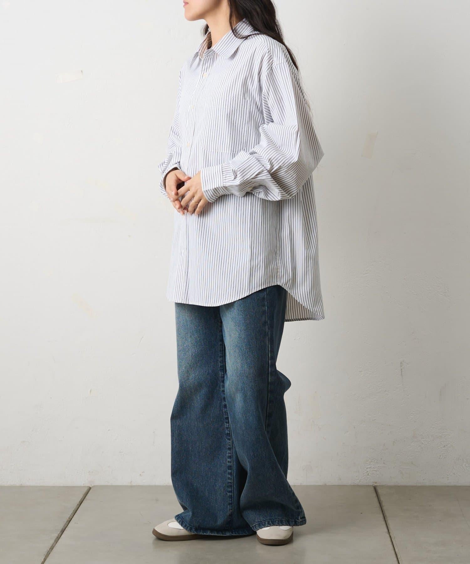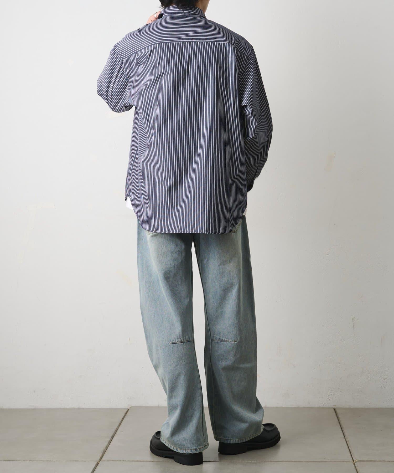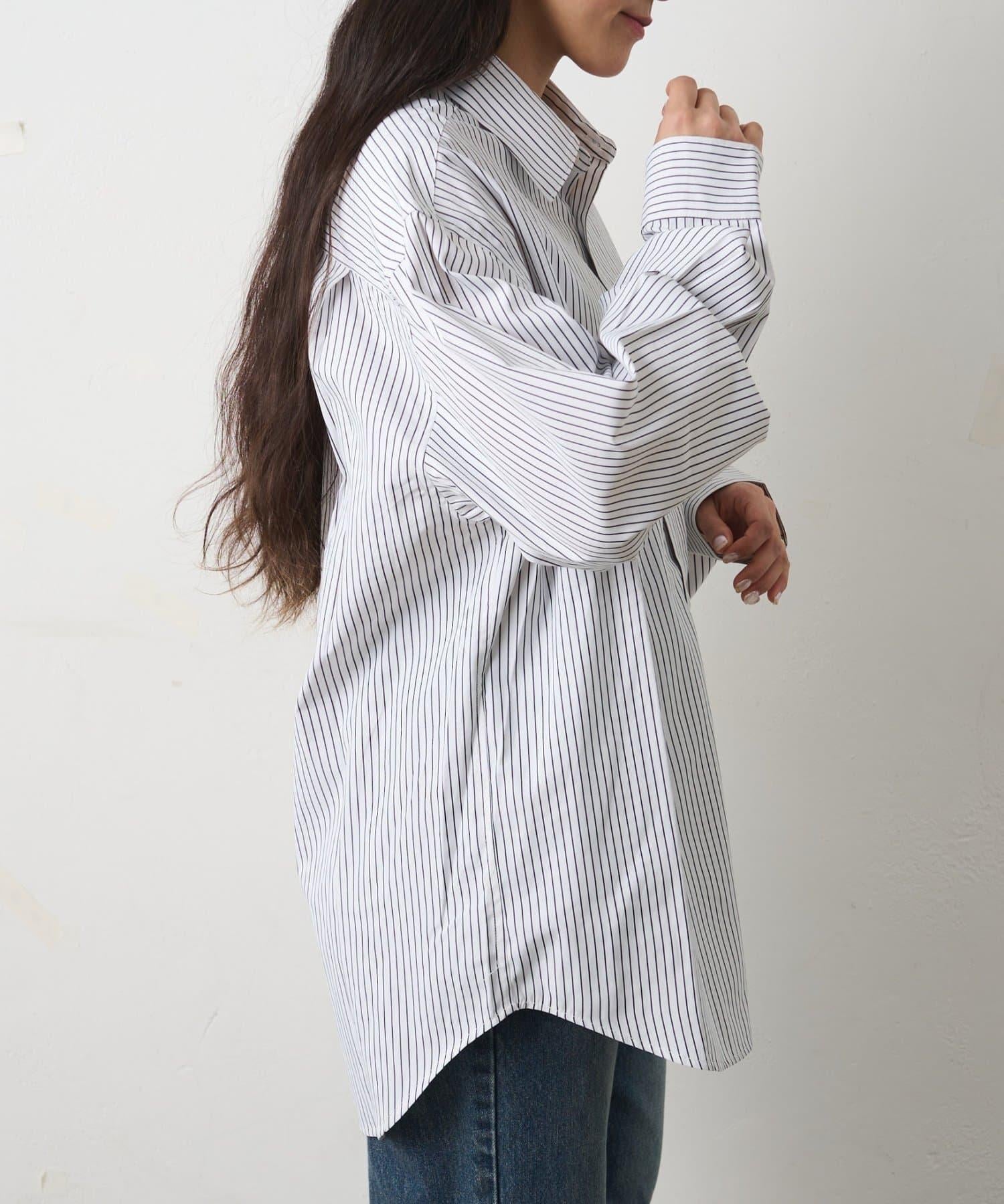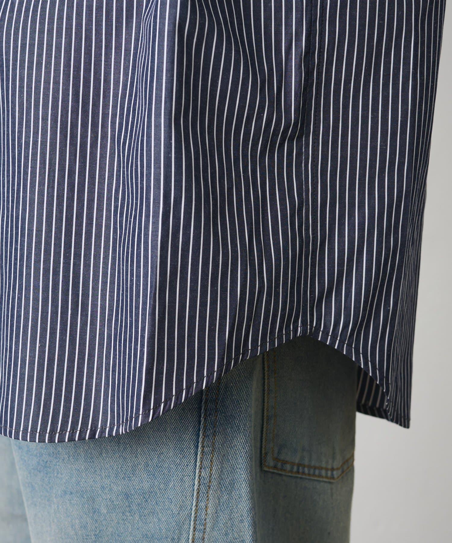 這款優雅條紋襯衫的基本設計使其具有多種用途。