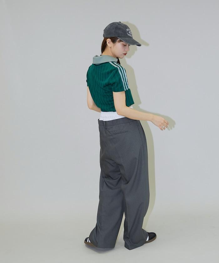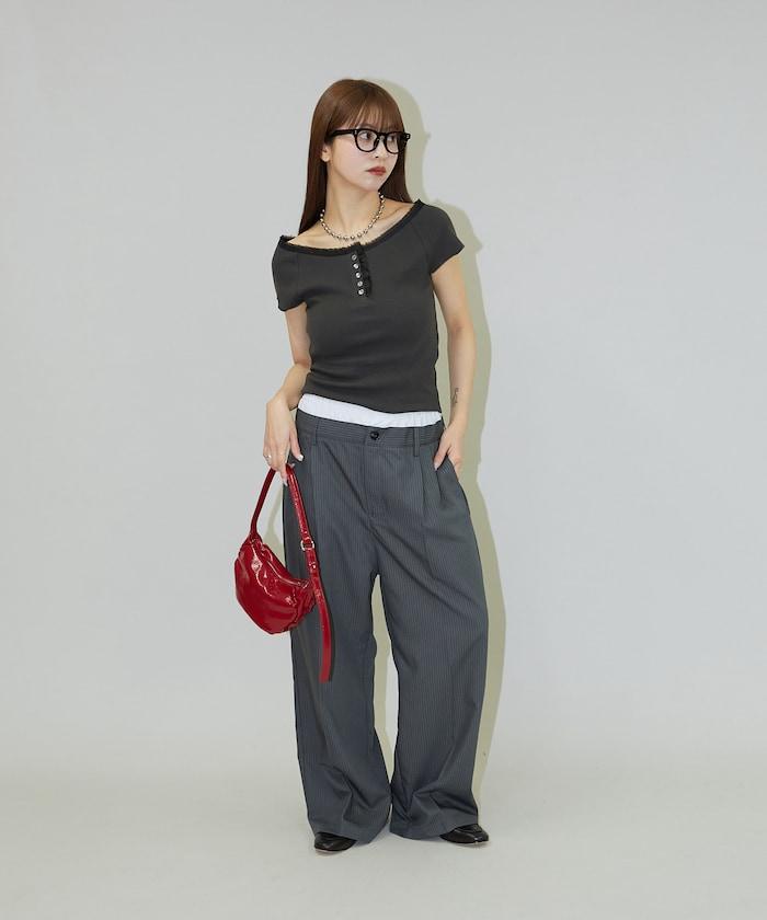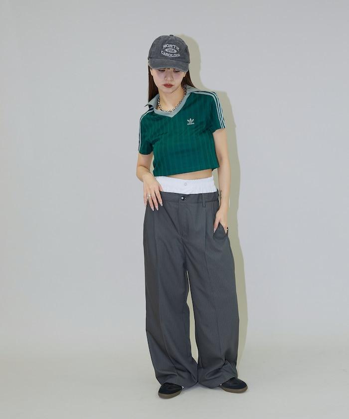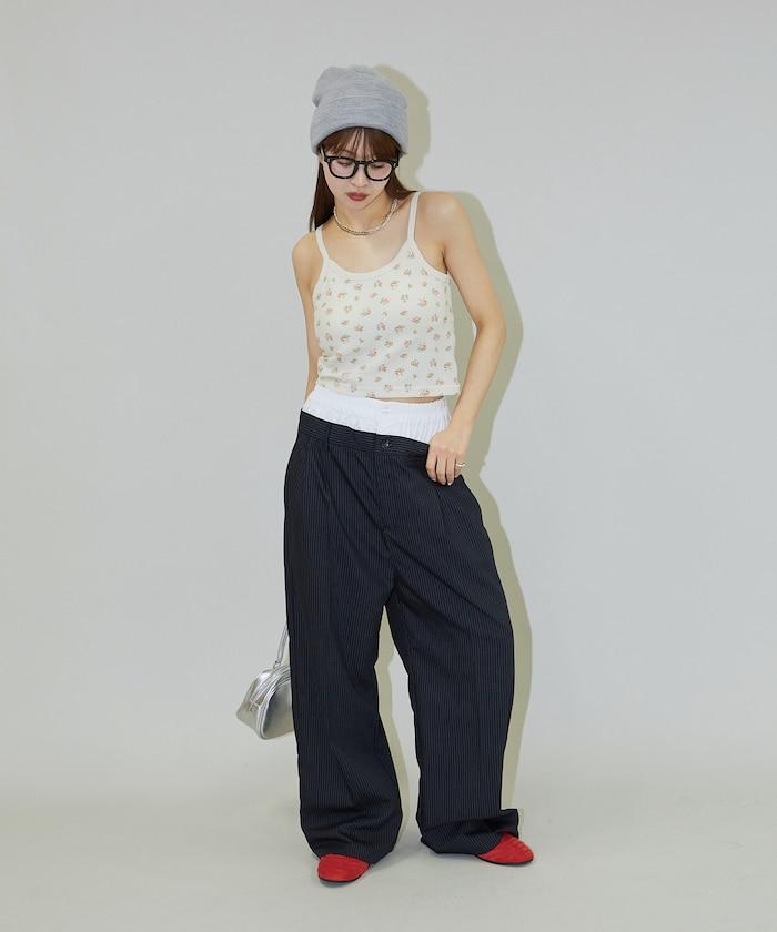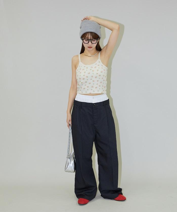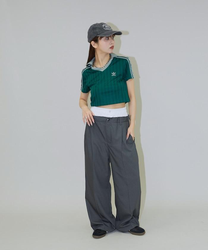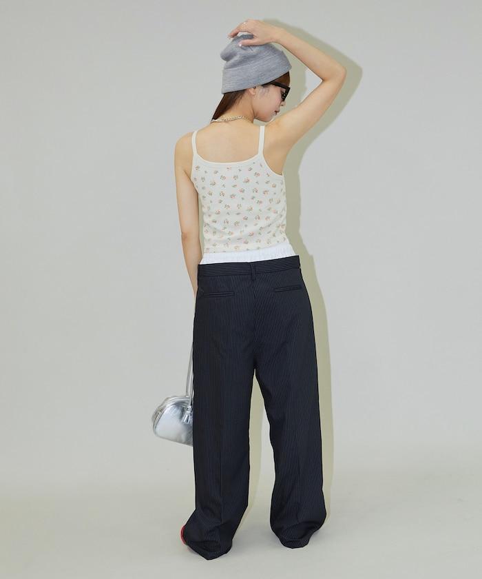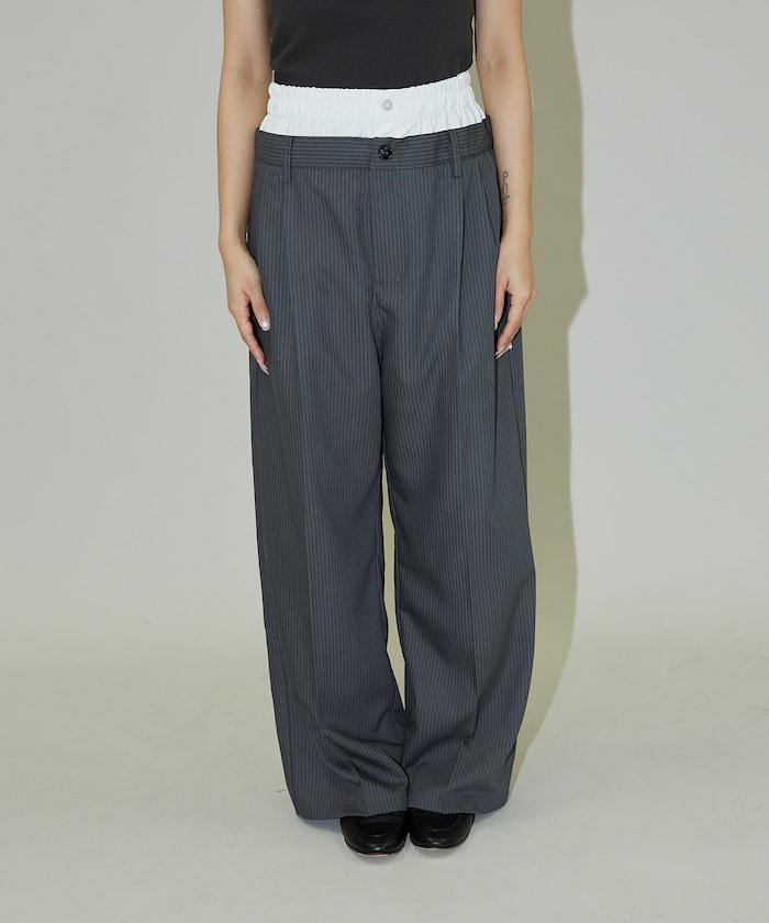 雙腰設計可作為基本款休閒褲穿著,上衣可外穿,也可將上衣內搭,展現雙腰效果。