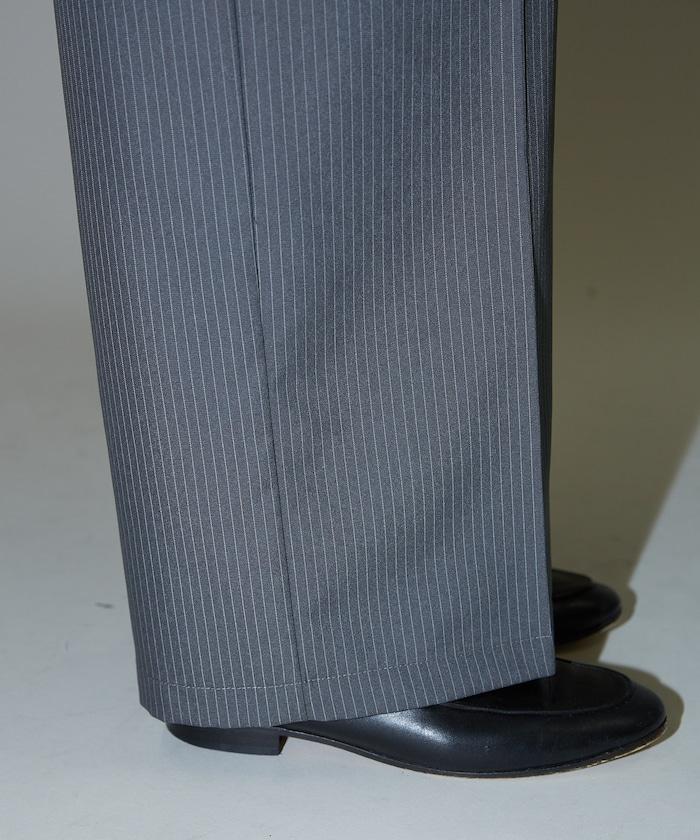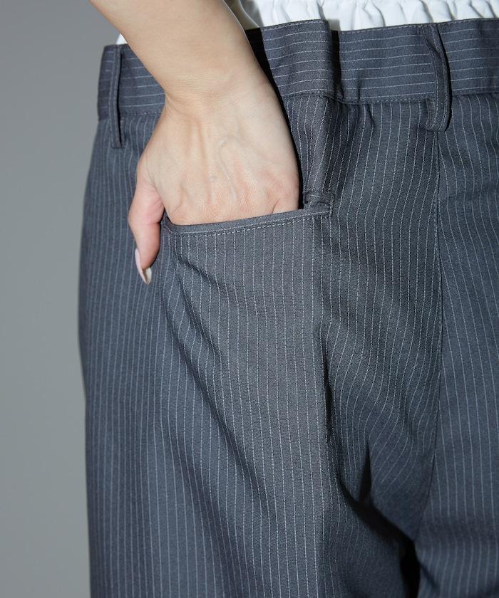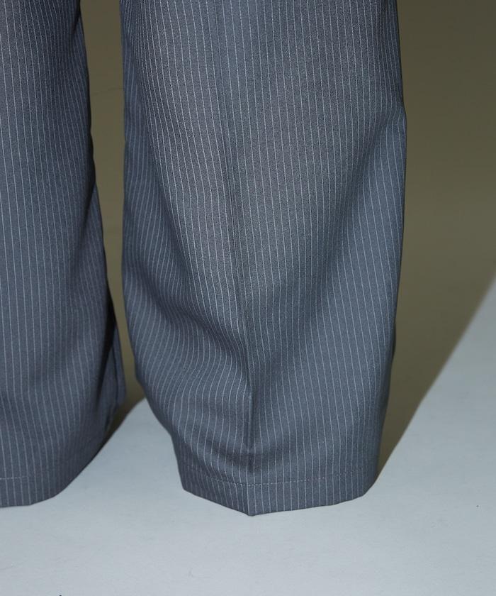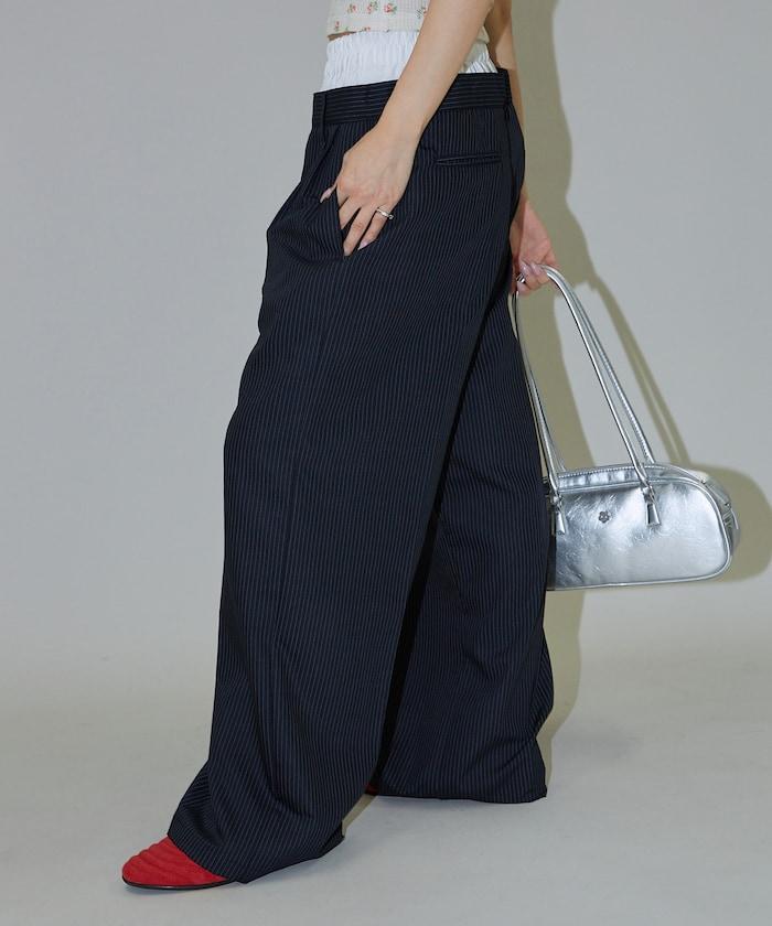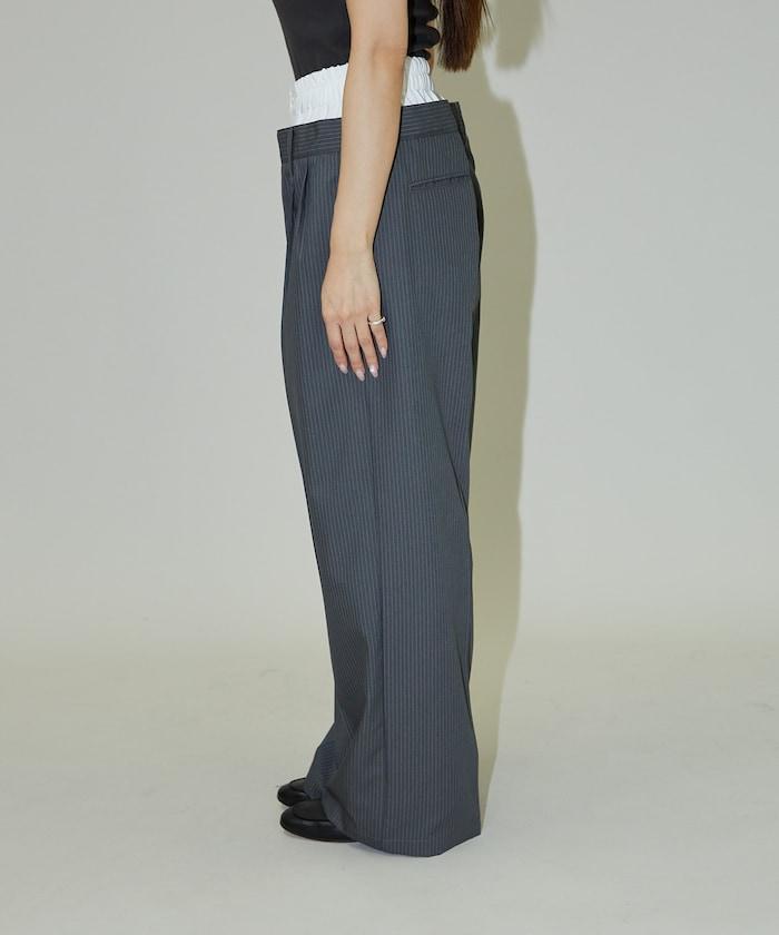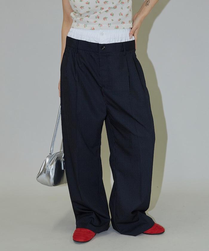 細條紋 雙高腰 雙褶 寬鬆褲