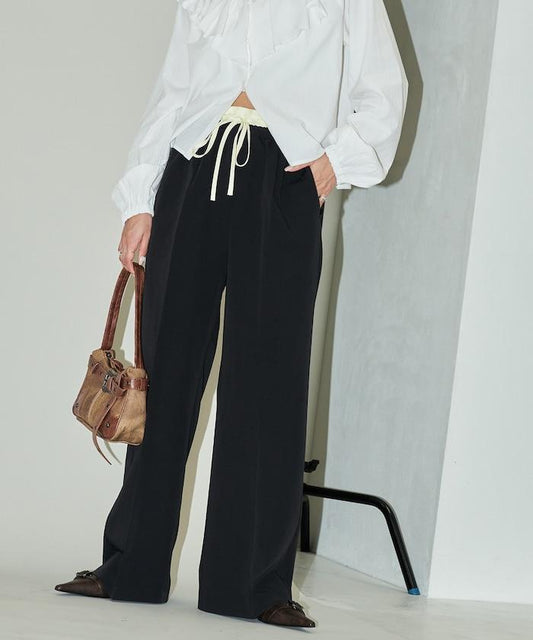 雙腰簡易褲,時髦協調。